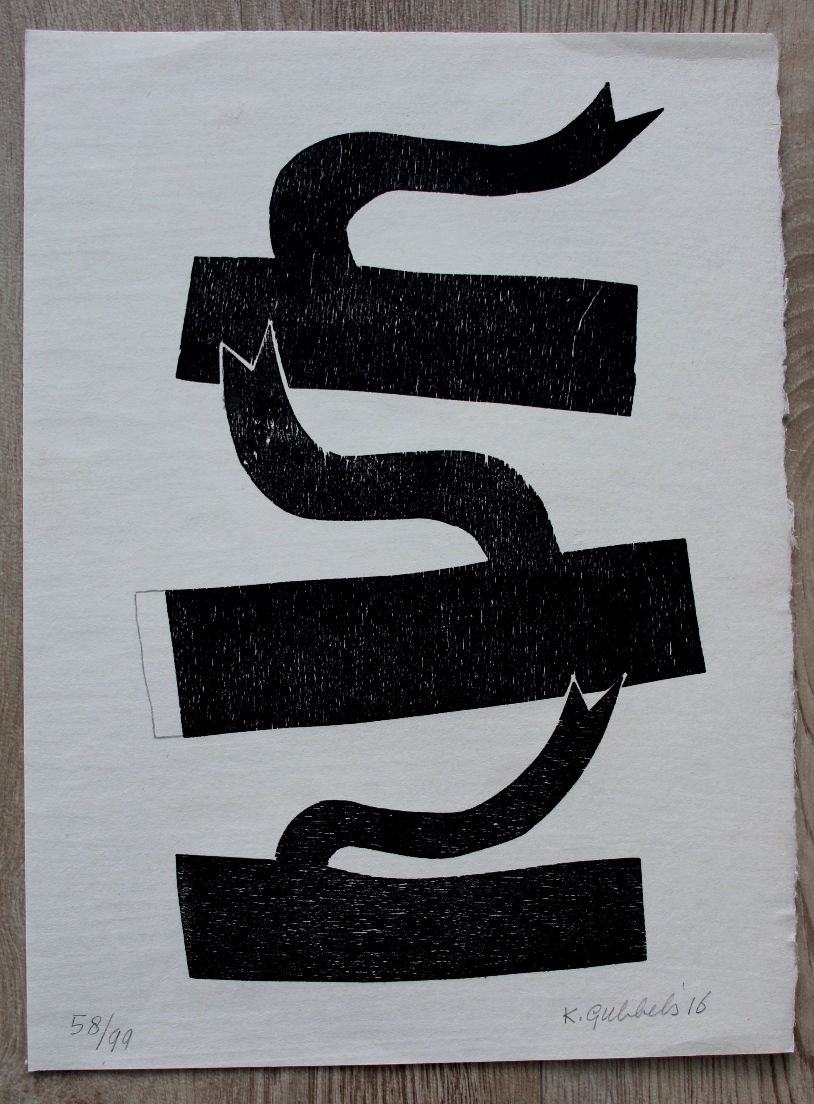 Houtdruk van Klaas Gubbels. Nummer: 58/99. Afmetingen blad: H38 x b28cm. Afmetingen voorstelling: H32 x b21cm. Het werk is rechtsonder gesigneerd en gedateerd (2016). De authenticiteit van het, aangeboden, werk wordt volledig gegarandeerd. Een certificaat van echtheid kan, op aanvraag, worden gemaild.