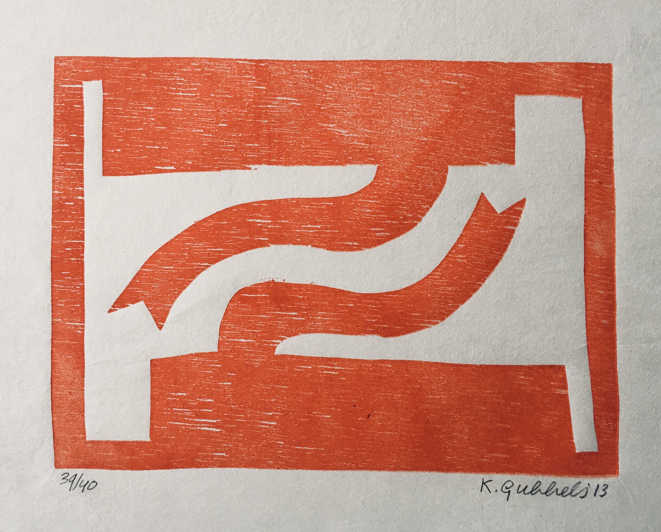 Een zeer fraaie, verfijnde houtdruk van Klaas Gubbels uit 2013.