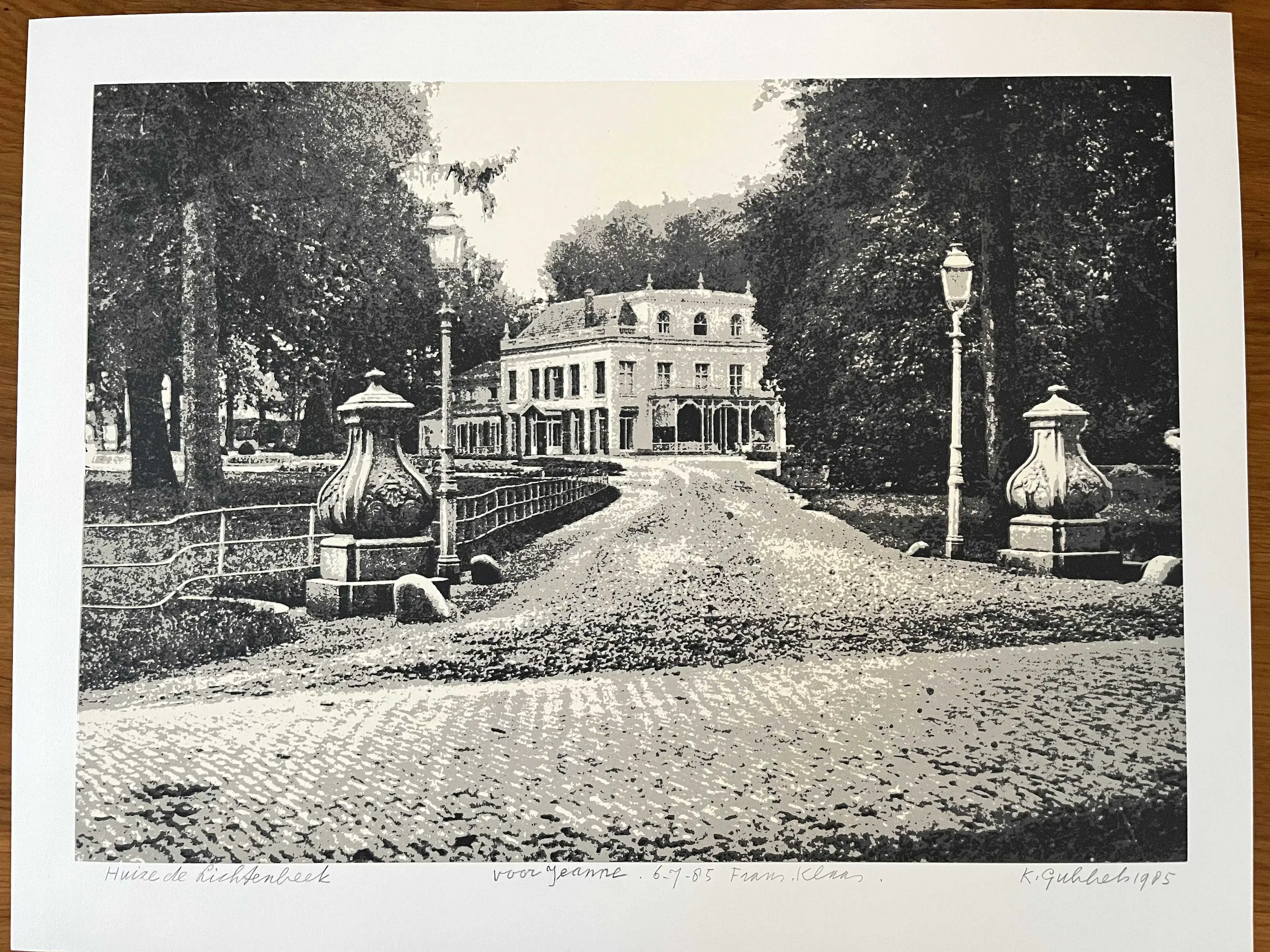 Litho uit 1985 met opdracht. Oplage onbekend. Afmeting blad. 50 x 65 cm. Afbeelding. 41 x 58 cm.