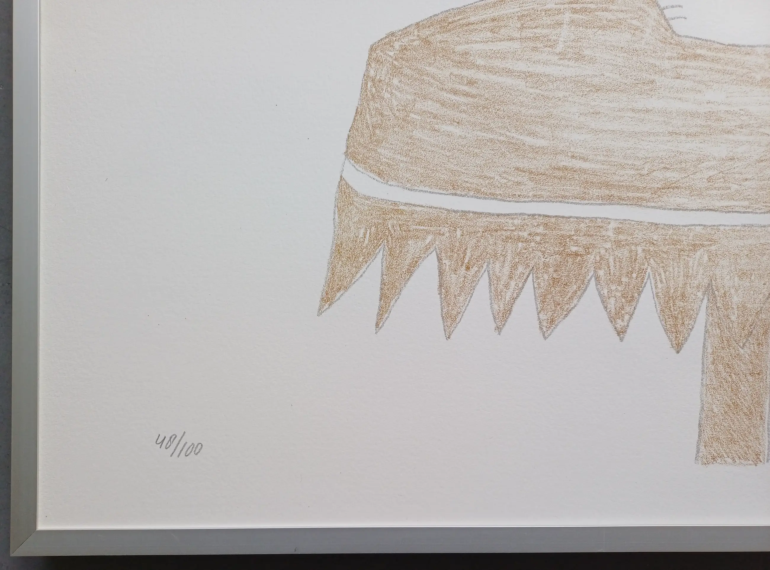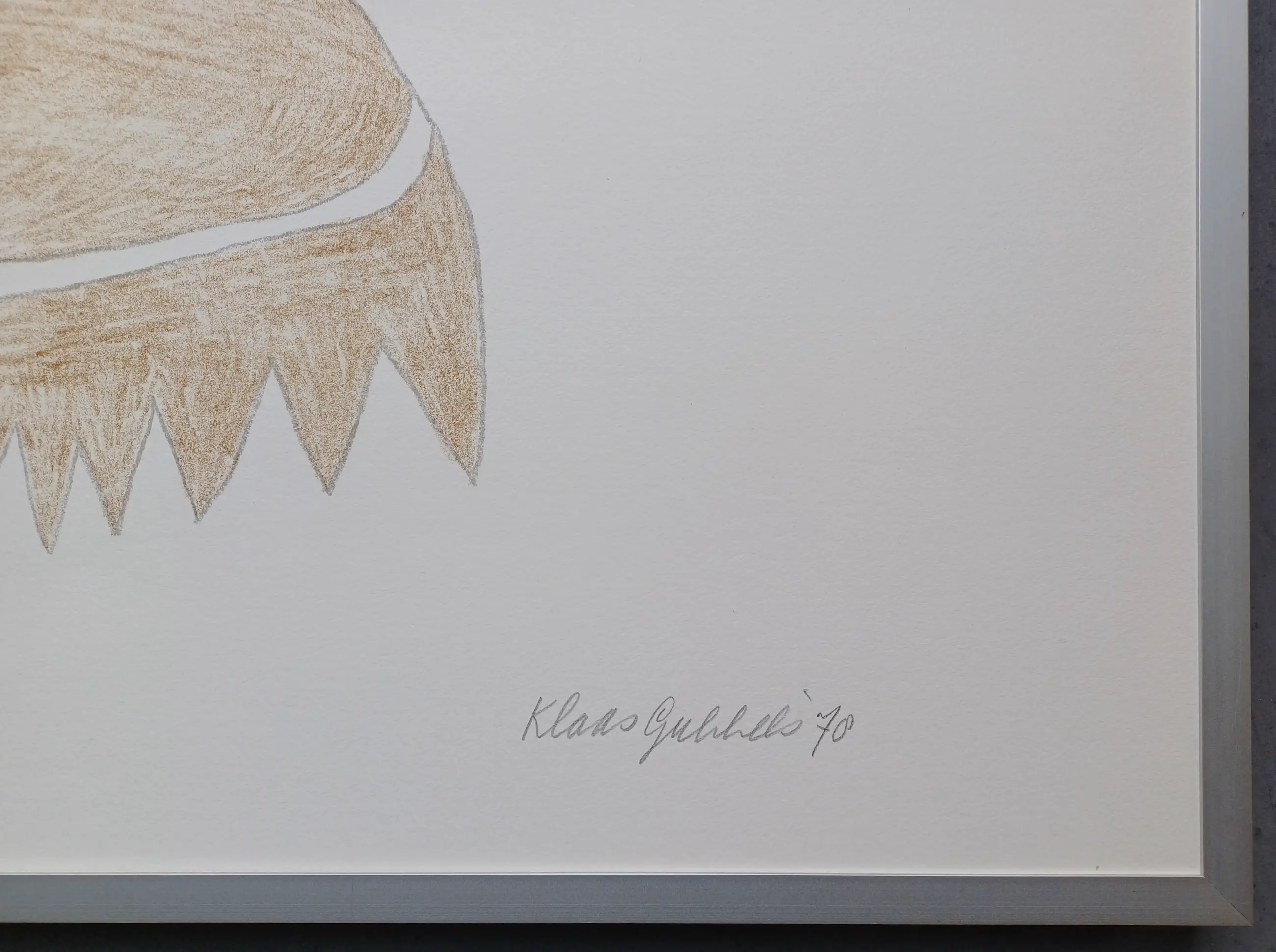 Gesigneerde litho van de kunstenaar Klaas Gubbels uit 1978. Rechtsonder is het werk gesigneerd in potlood met Klaas Gubbels 78 en linksonder 48/100. Afmeting beeld 49 x 64 cm (hxb). Afmeting aluminium lijst 51.5 x 66 cm (hxb). De lijst heeft een paar krasjes. De litho is goede staat.