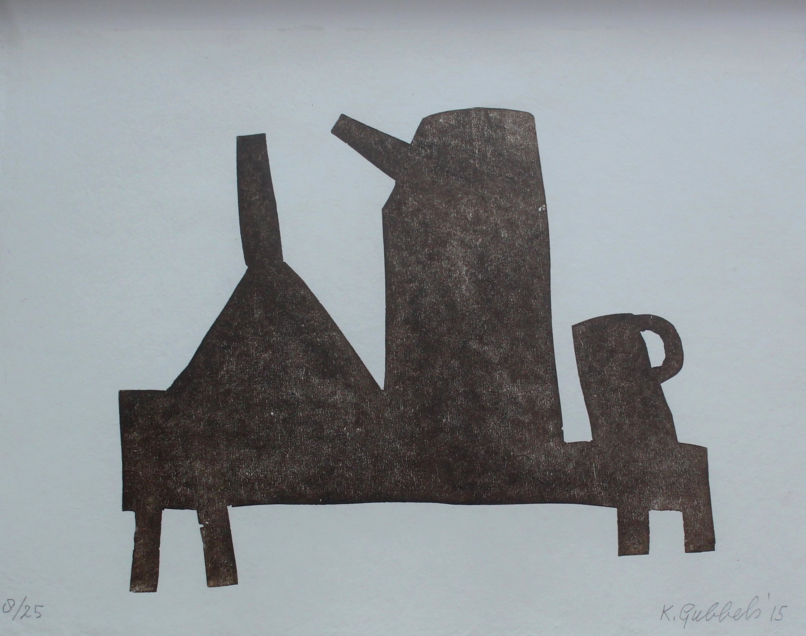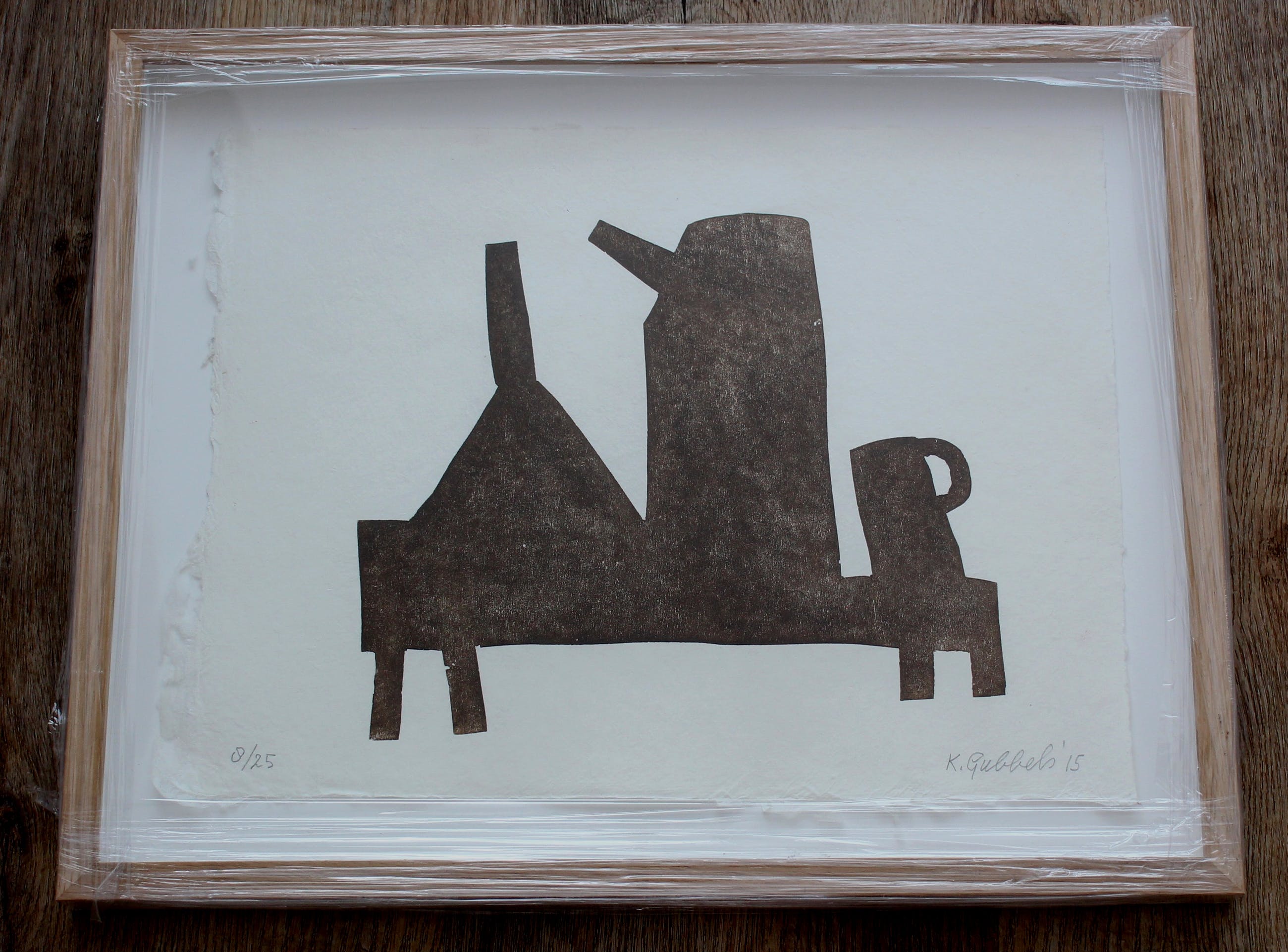 Mooi ingelijste houtdruk van Klaas Gubbels. Het werk is ingelijst in een nieuwe houten lijst en is nog nooit opgehangen geweest. Het beschermplastic zit nog om de lijst heen. Nummer: 8/25. Jaar: 2015. Het werk is rechtsonder gesigneerd door de kunstenaar. De authenticiteit van het aangeboden werk wordt volledig gegarandeerd. Een certificaat van echtheid kan, op aanvraag, worden gemaild.
