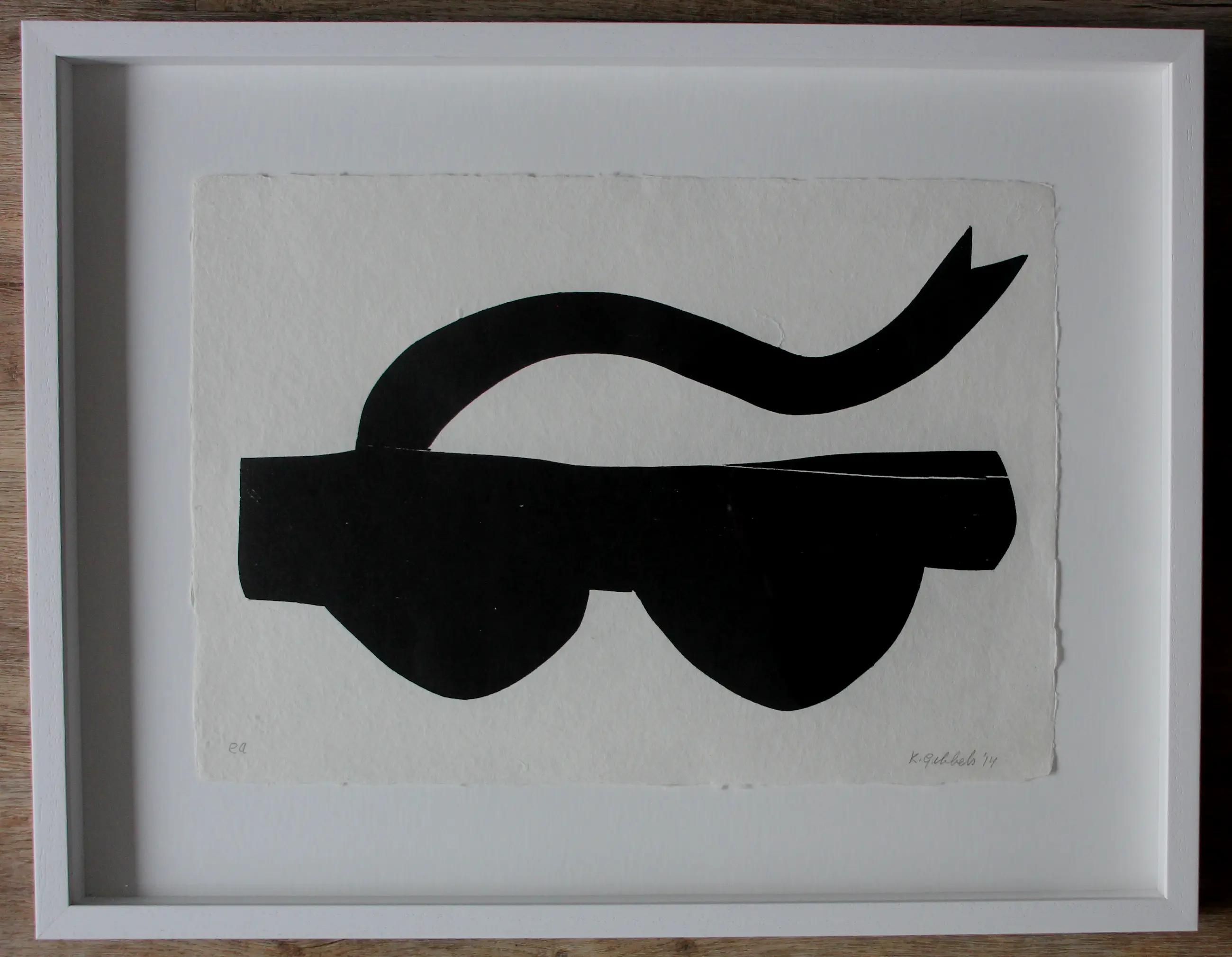 Ingelijste houtdruk van Klaas Gubbels uit 2014. Titel: Zwarte kan. Oplage: E.A. Afmetingen incl lijst: H70cm x b85cm. Afmetingen voorstelling: H49 x b63cm.