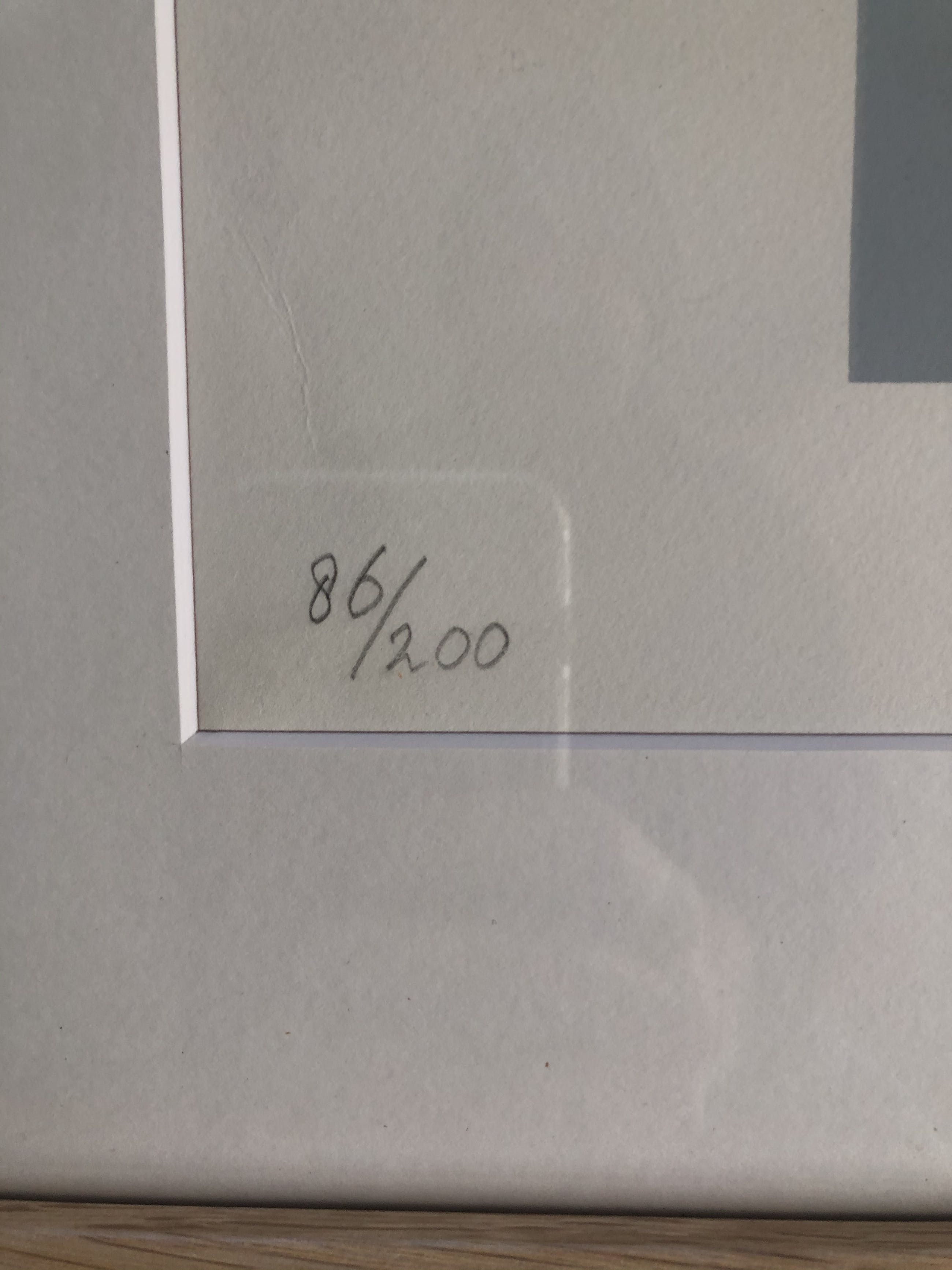 Werk van Gubbels die je niet zo vaak tegen komt. Matte kleuren , oplage van 200 Dit is nummer 86. Werk kan zo aan de muur. Links boven de nummering zoals op de laatste foto te zien is,lijkt een klein soort vouwtje te zien van 2 a 3 cm. Niet storen of opvallend , derhalve wil ik dit wel benoemen.