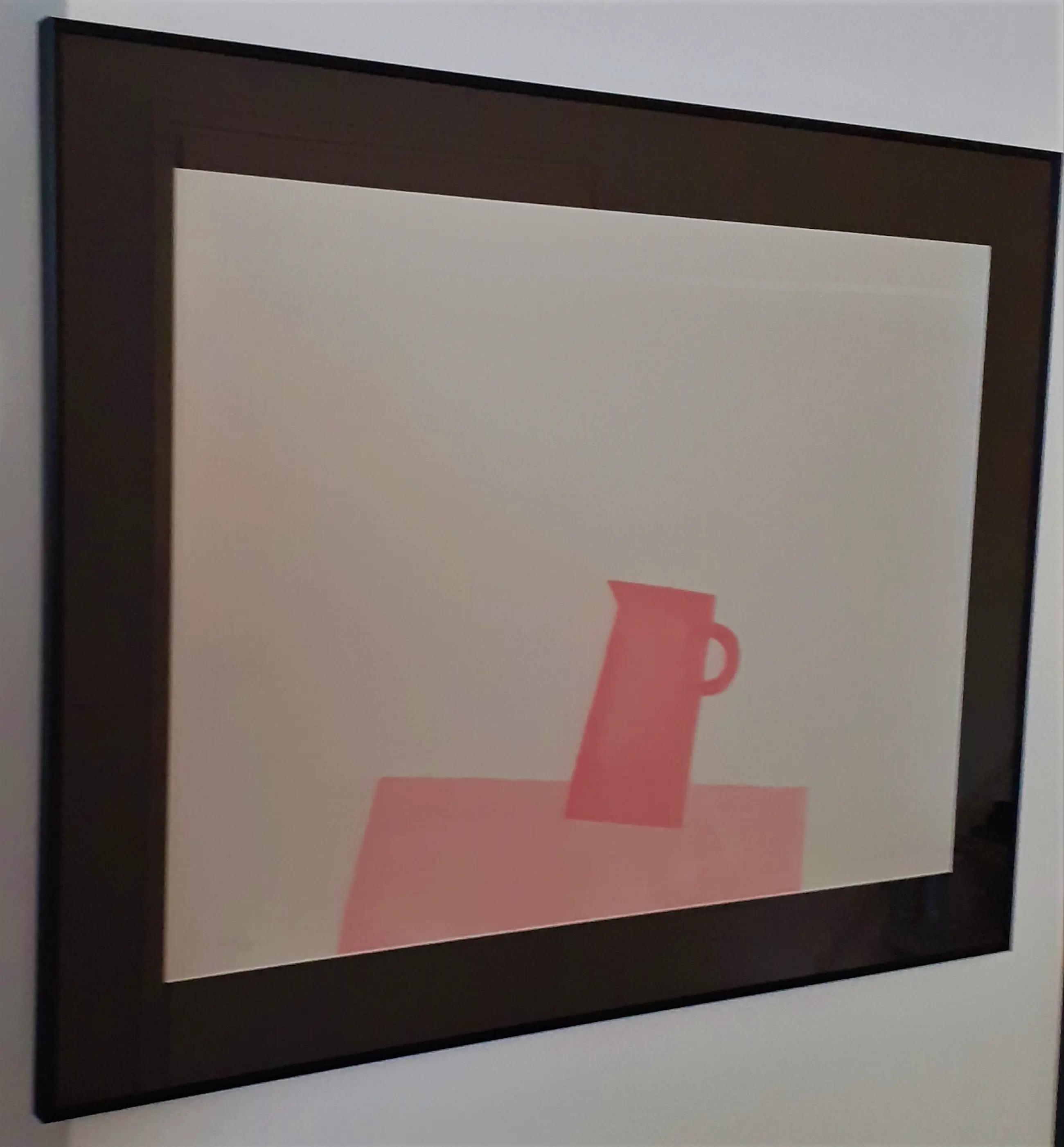 Lijst:Het werk is professioneel ingelijst door inlijsterij in matzwarte metalen lijst en zwarte passepartout. Kan zo aan de wand!