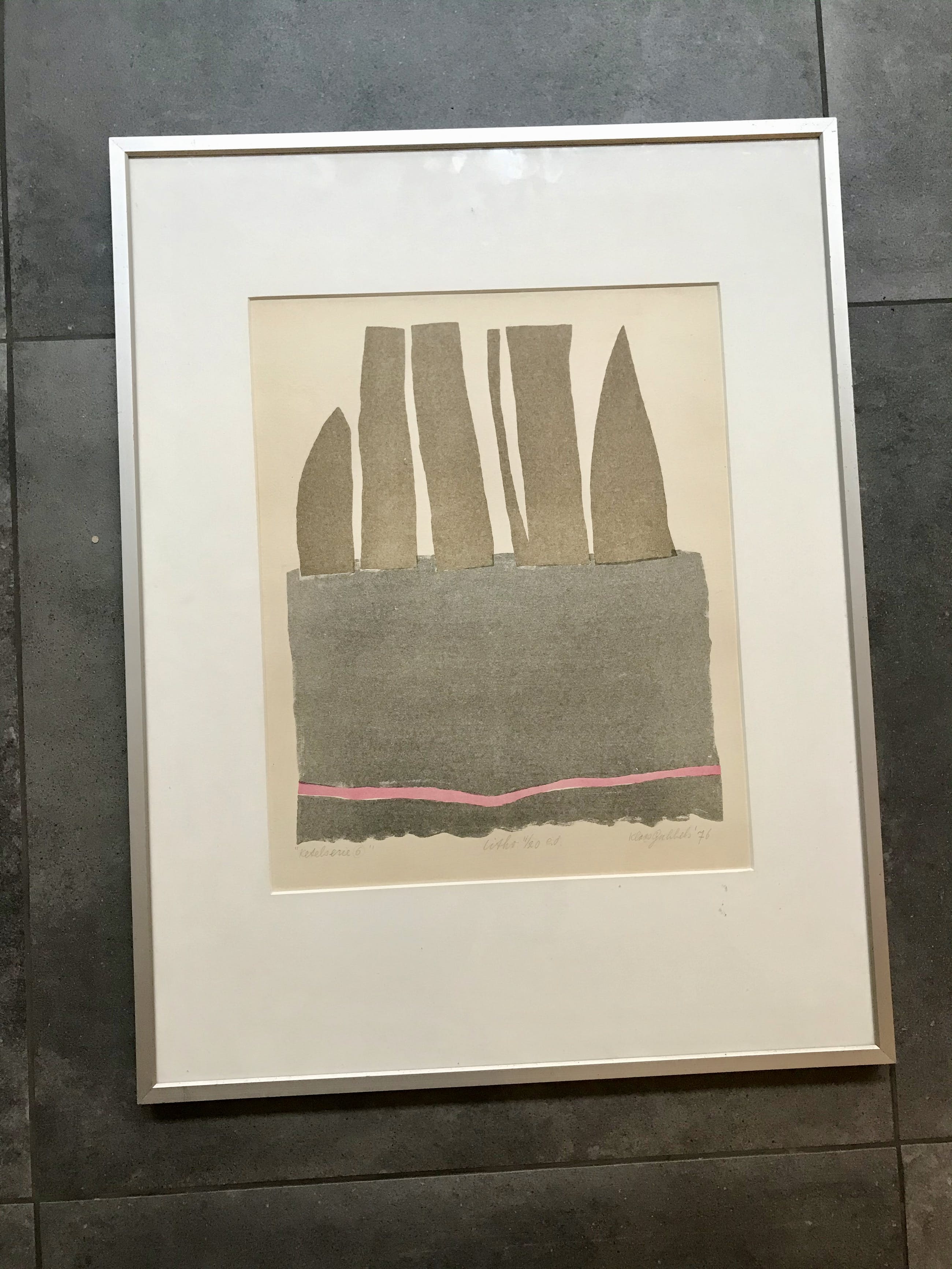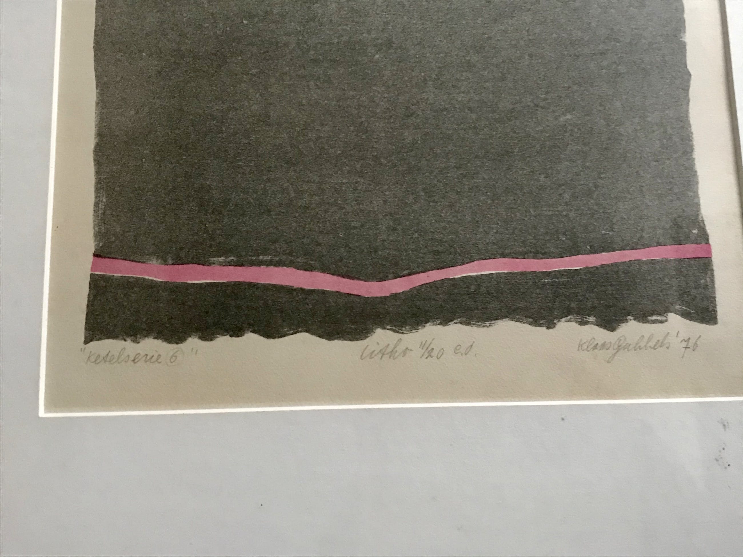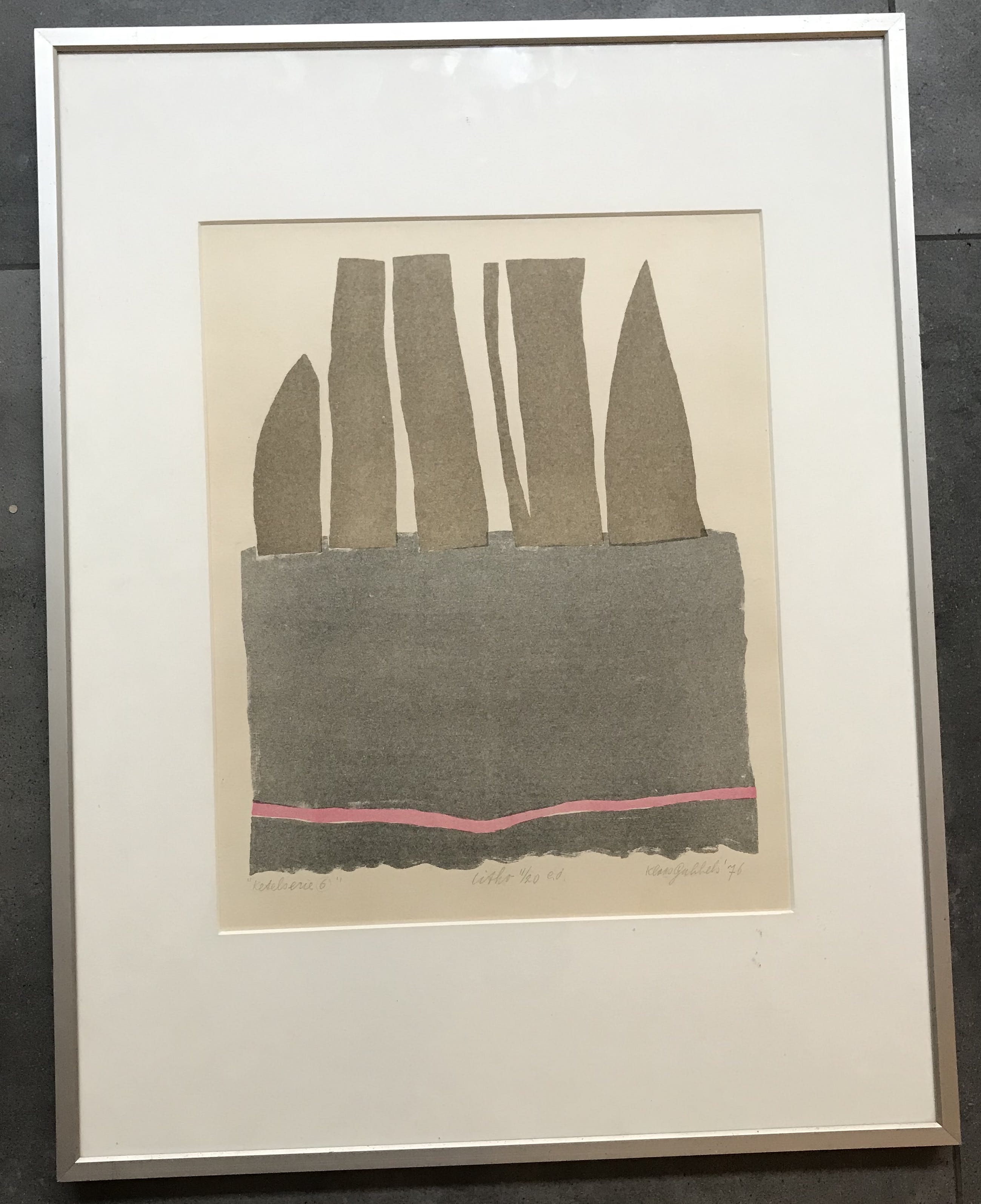 Zeldzaam werk van Klaas Gubbels. Kleine oplage slechts 20 stuks dit is nr 11/20 e.d. Werk uit vroege jaren 1976. Metalen lijst. Bijzonder fraaie Litho van Klaas Gubbels.