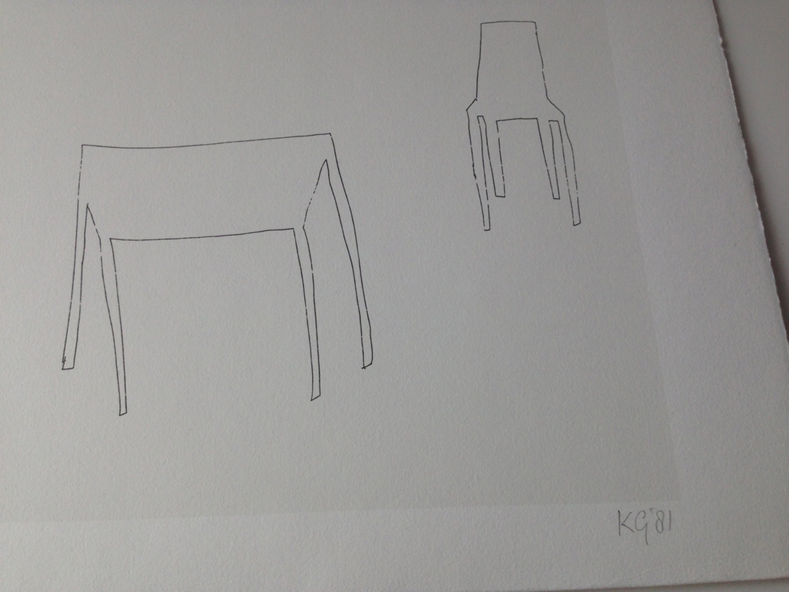 Mooie zeefdruk op dik papier met een typerende voorstelling.