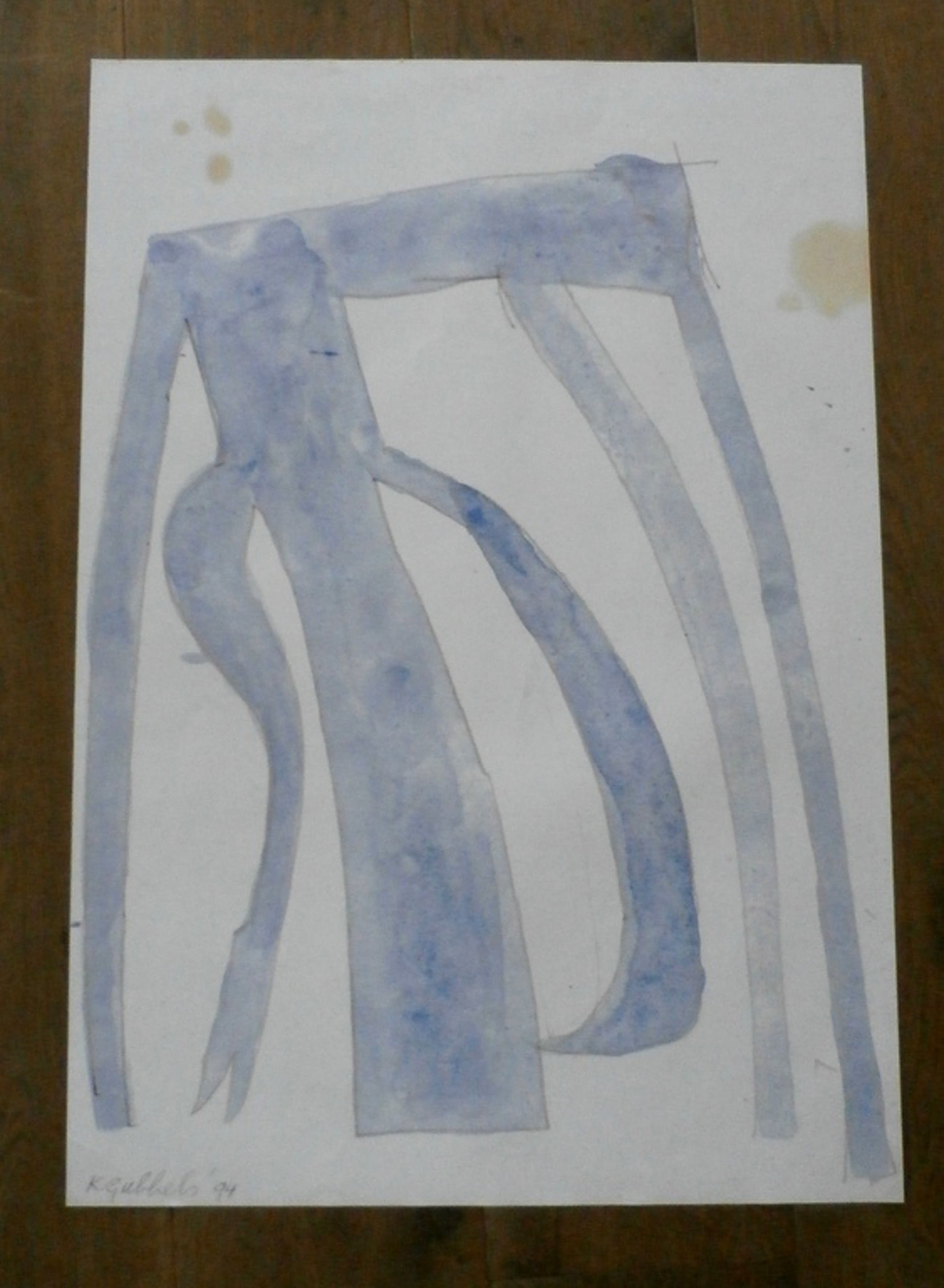 Aquarel van Klaas Gubbels op de achterkant van een tentoonstellingsposter. Jaar: 1994. Afmetingen blad: H84 x b59,5 cm. Het werk is linksonder gesigneerd.