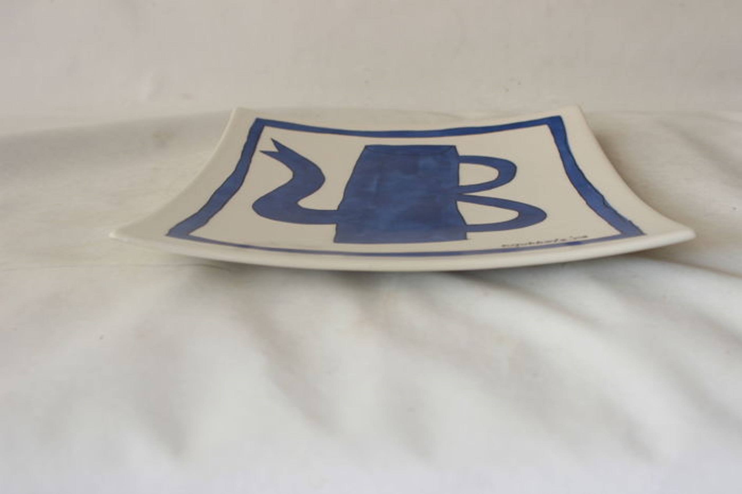 Een prachtig keramieken wandbord met daarop de kenmerkende blauwe koffiepot van Klaas Gubbels. Het wandbord is aan de voorzijde voorzien van zijn signatuur en datering. Het wandbord is uitgegeven door de gemeente Arnhem in oplage van 100 stuks en vervaardigd bij plateelbakkerij Schoonhoven. De afmetingen van het wandbord zijn 27 bij 27 cm en heeft gaatjes aan de achterzijde zodat het aan de wand gehangen kan worden. Het is in het midden aan de achterkant gemerkt met het stadswapen van Arnhem en voorzien van de tekst "gerealiseerd i.s.m. Art Poetry & Design en Schoonhoven Keramiek.