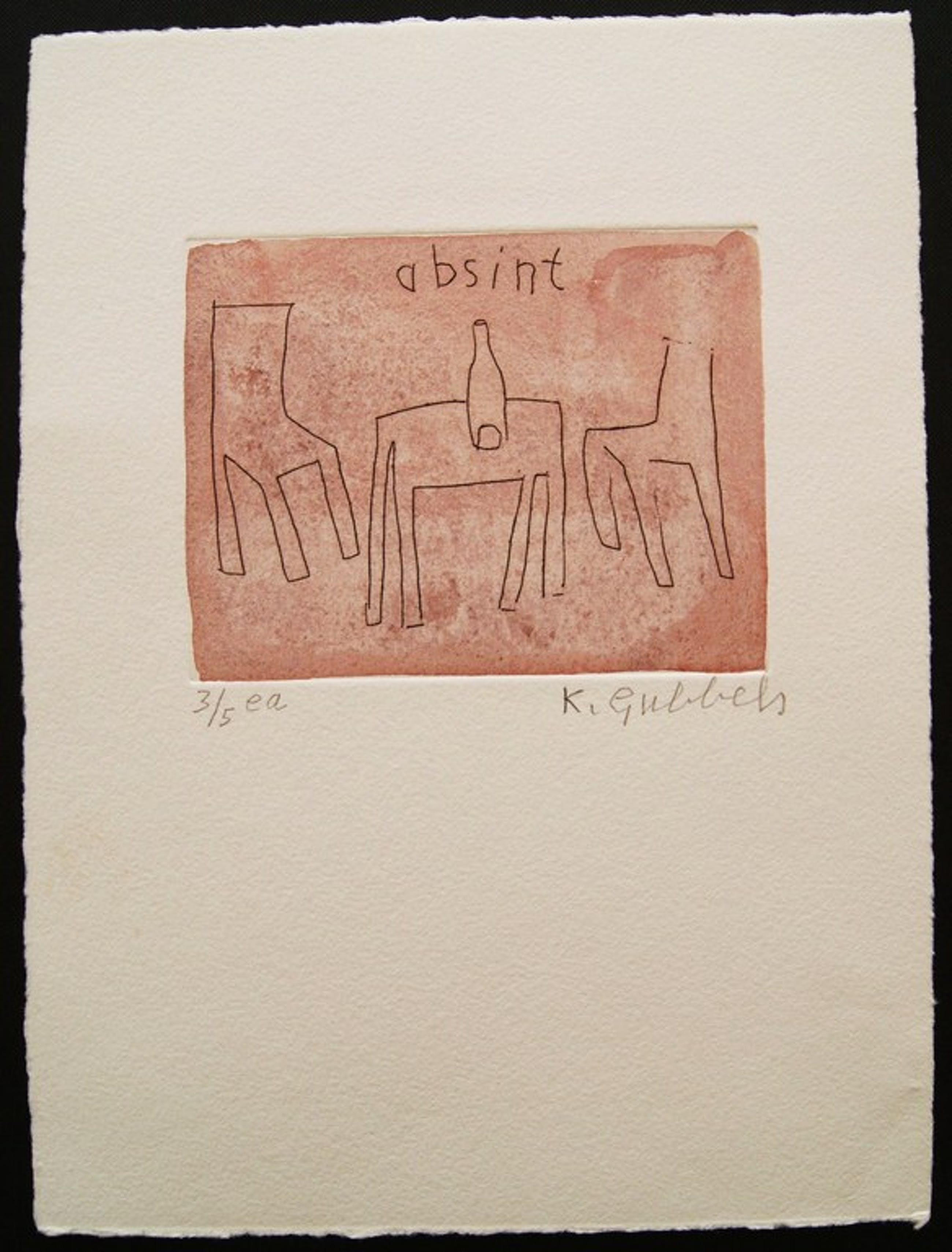 Een hand ingekleurde ets met aquarel van Klaas Gubbels uit 2004.