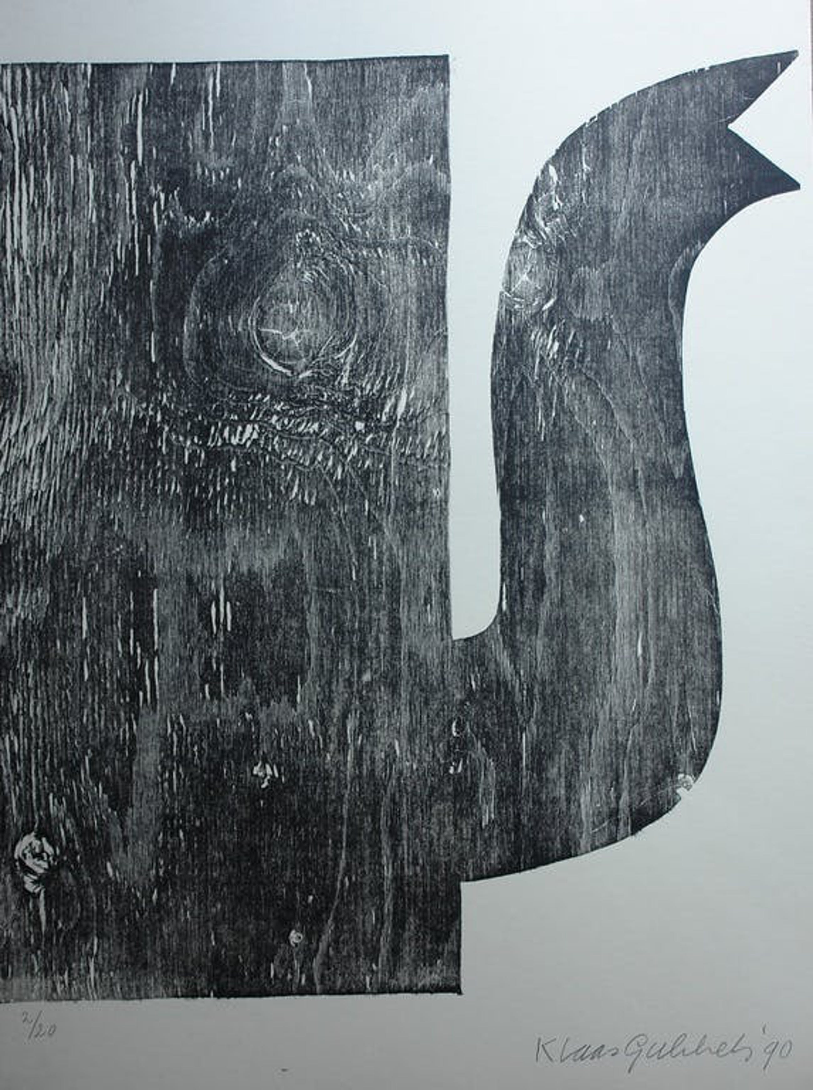 Een zeldzaam grote houtsnede ( 67 cm x 40 cm) van deze bekende kunstenaar. Nr. 2 uit een portfolio waarin 3 verschillende houtsneden in een oplage van slechts 20 exemplaren. Een zeer kleine oplage dus! Gedrukt op zwaar papier, het blad is in nieuwstaat. Niet ingelijst.