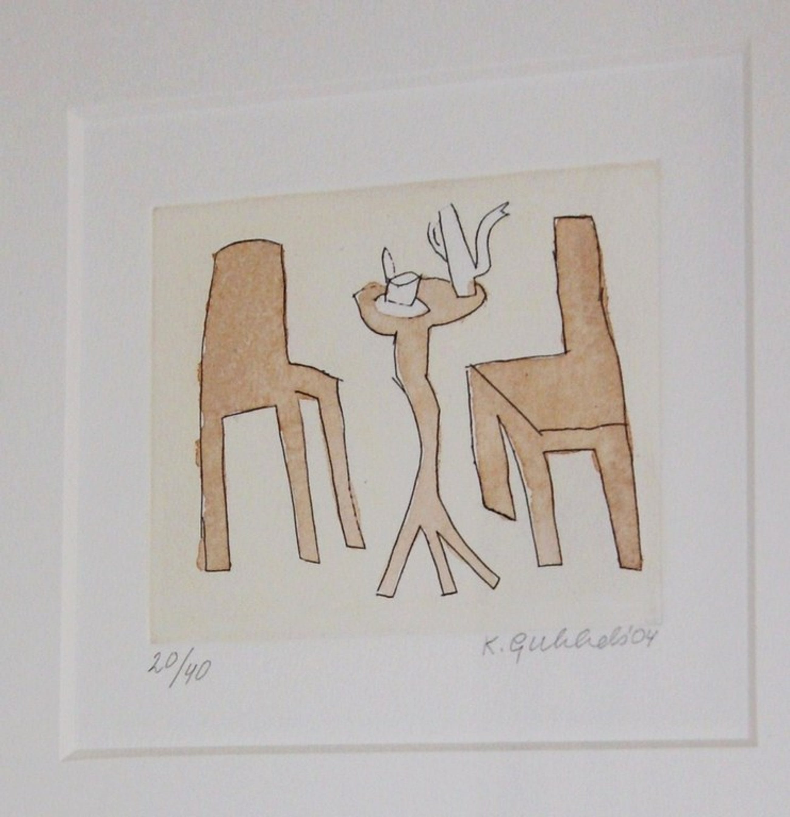 Een ingekleurde ets met aquarel van Klaas Gubbels uit 2004.