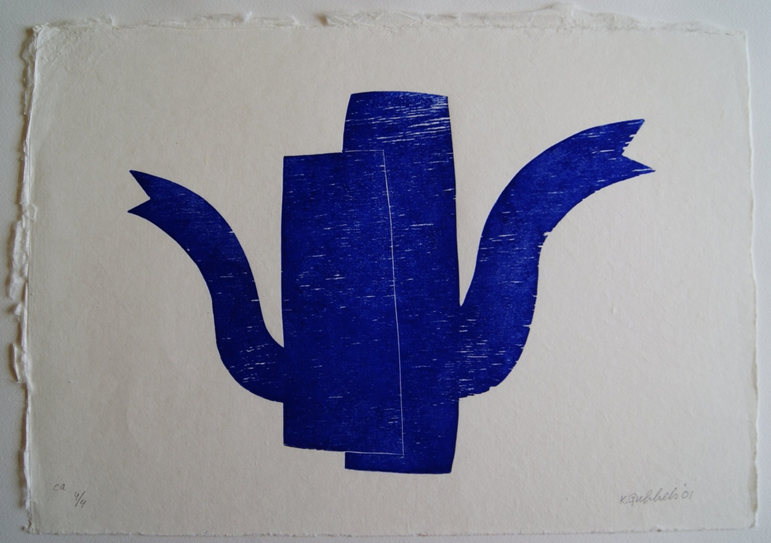 Een zeer fraaie houtdruk van Klaas Gubbels, getiteld A+M uit 2001.