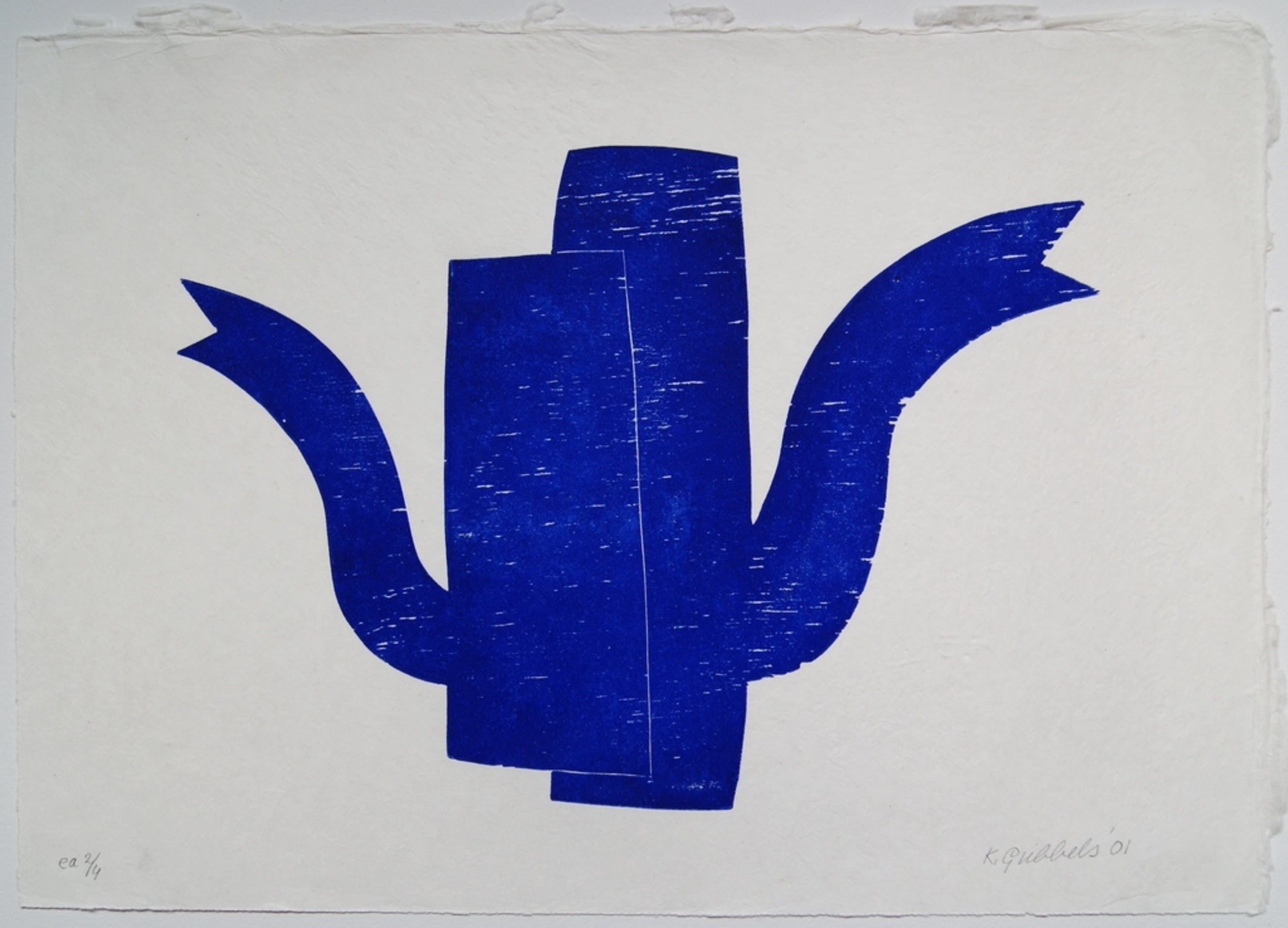 Een zeer fraaie houtdruk van Klaas Gubbels, getiteld A+M uit 2001.