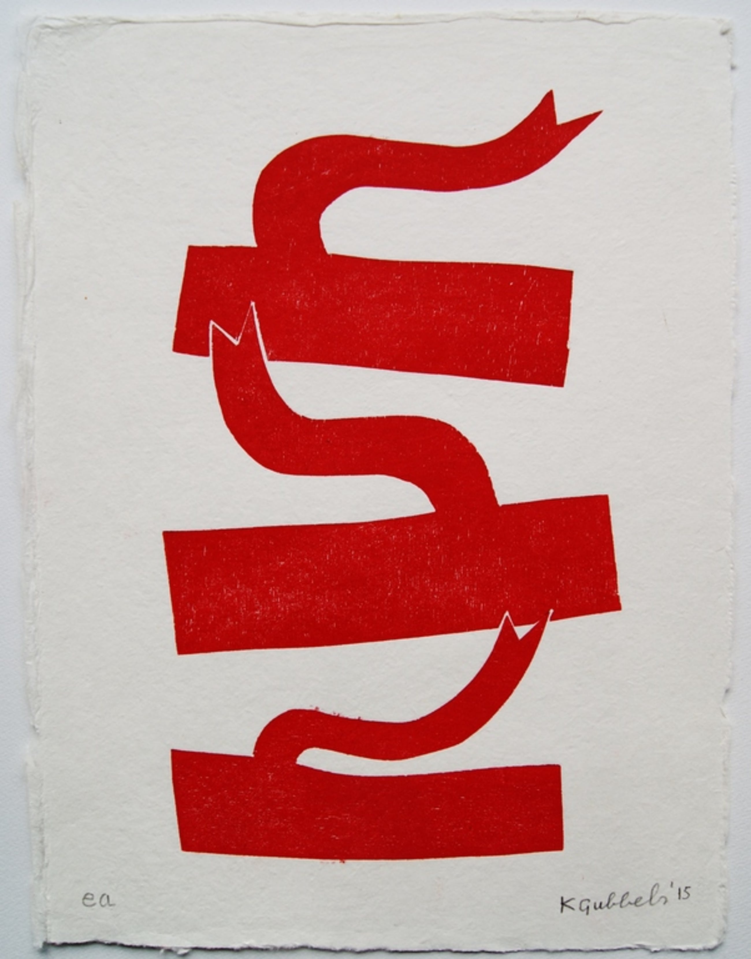 Een zeer fraaie Klaas Gubbels houtdruk 'Stapel Kan' op handgeschept papier uit 2015.