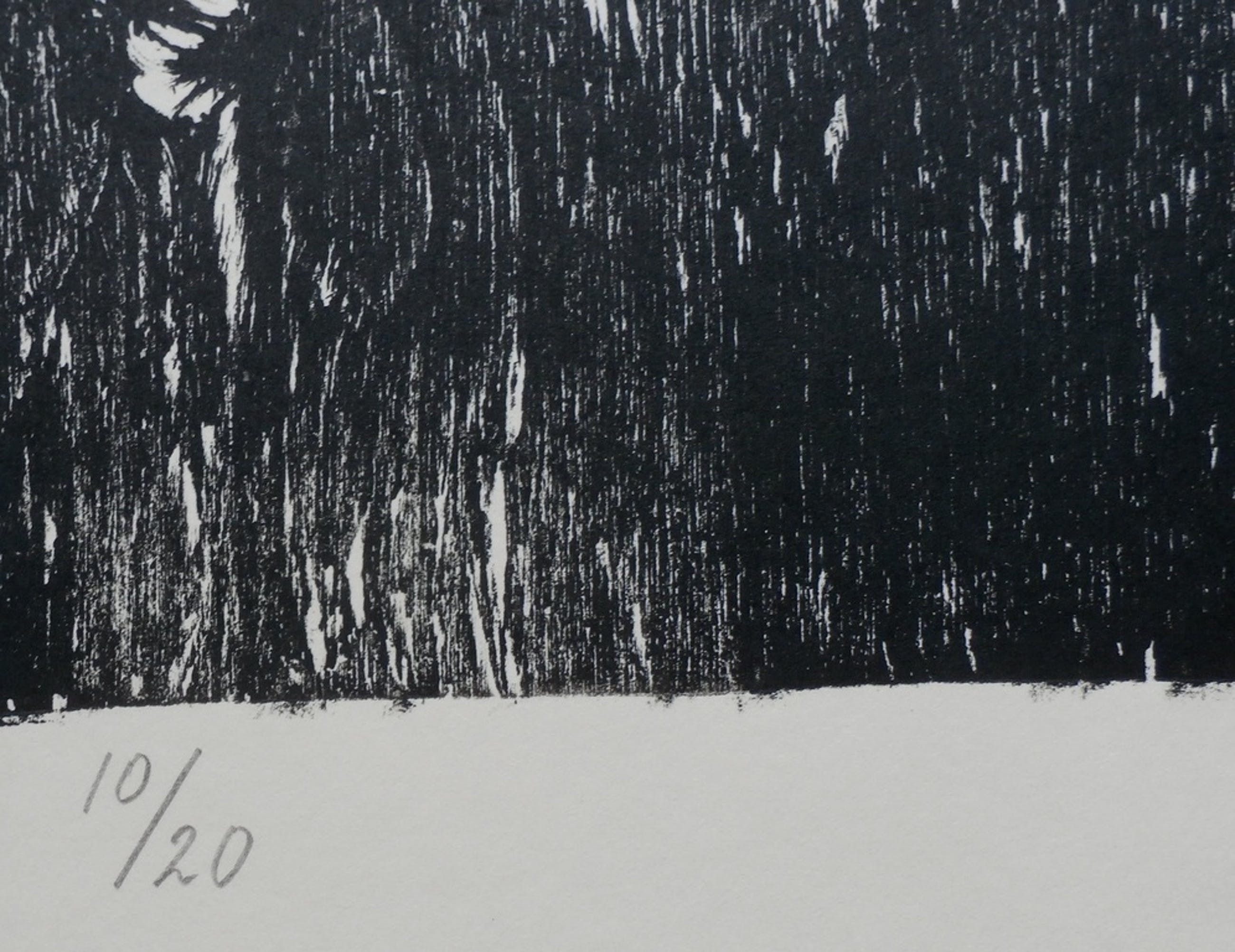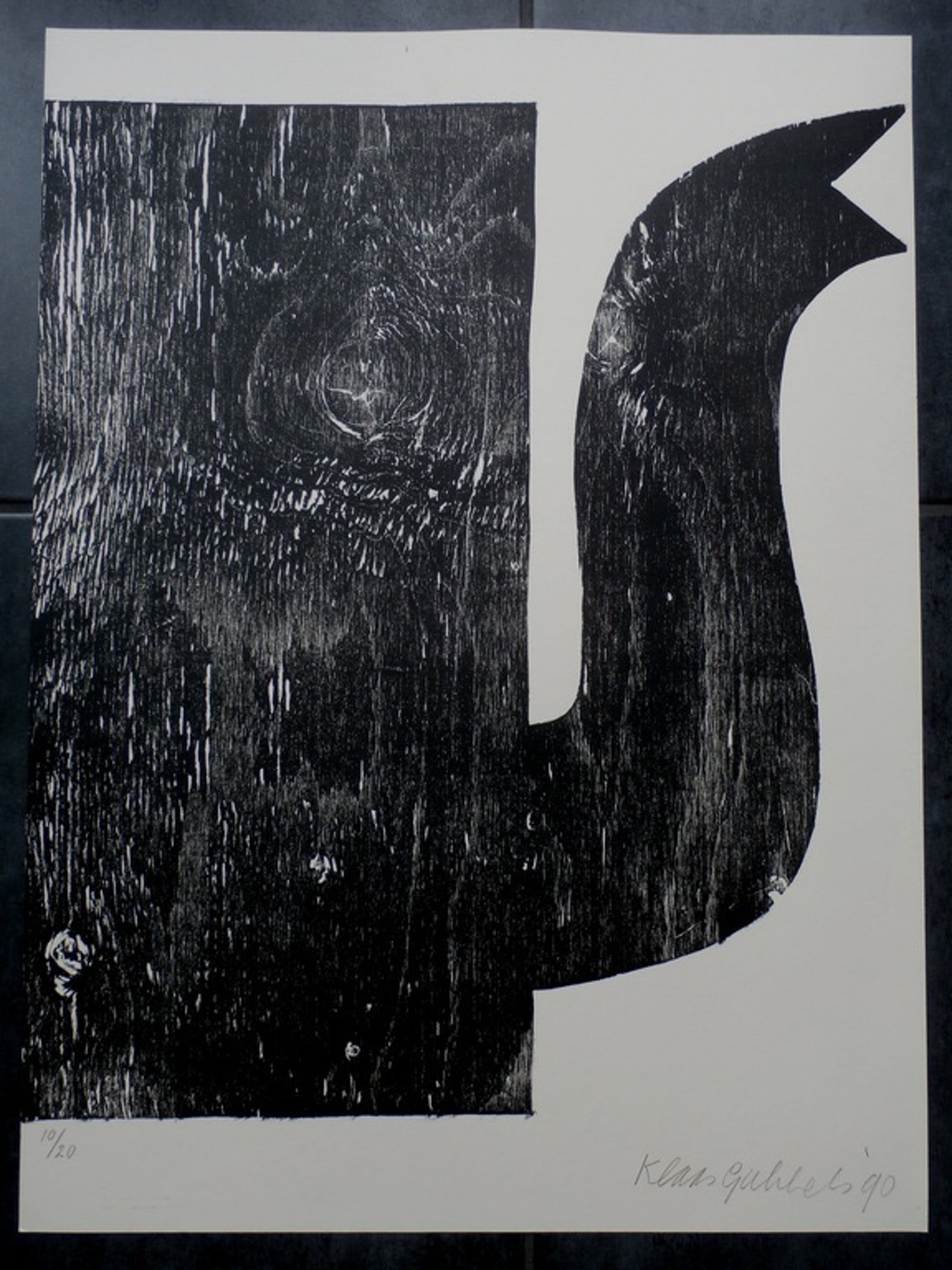 Houtsnede van Klaas Gubbels uit 1990. Nummer: 10/20. Afmetingen blad: H67 x b50 cm. Afmetingen beeld: H56 x b49 cm. Het werk is rechtsonder, met potlood, gesigneerd door de kunstenaar. De authenticiteit van het aangeboden werk wordt voor 100% gegarandeerd. Een certificaat van echtheid kan, op aanvraag worden meegestuurd. Conditie: in goede staat.
