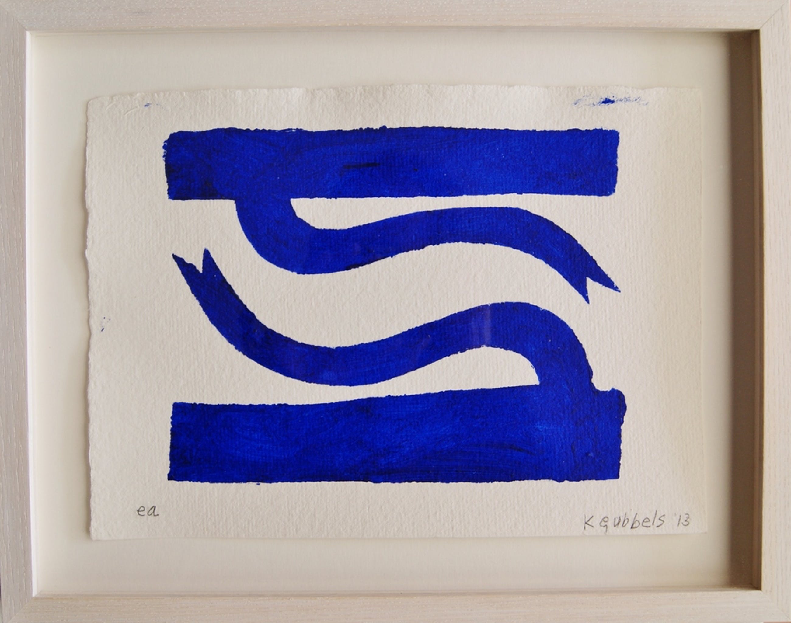 Een zeer fraaie sjabloondruk op handgeschept papier van Klaas Gubbels uit 2013.