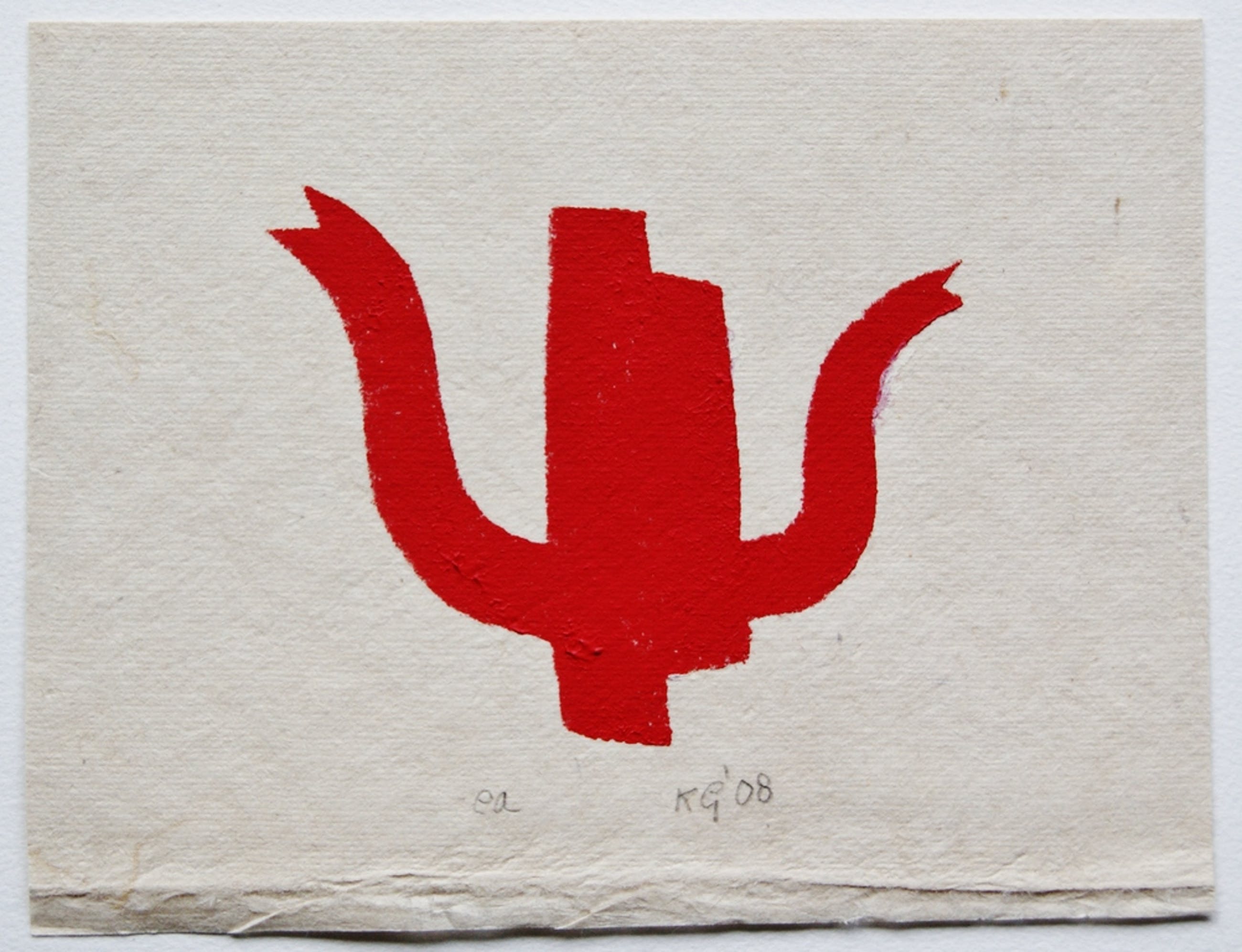 Een zeer fraaie sjabloondruk op handgeschept papier van Klaas Gubbels uit 2008.