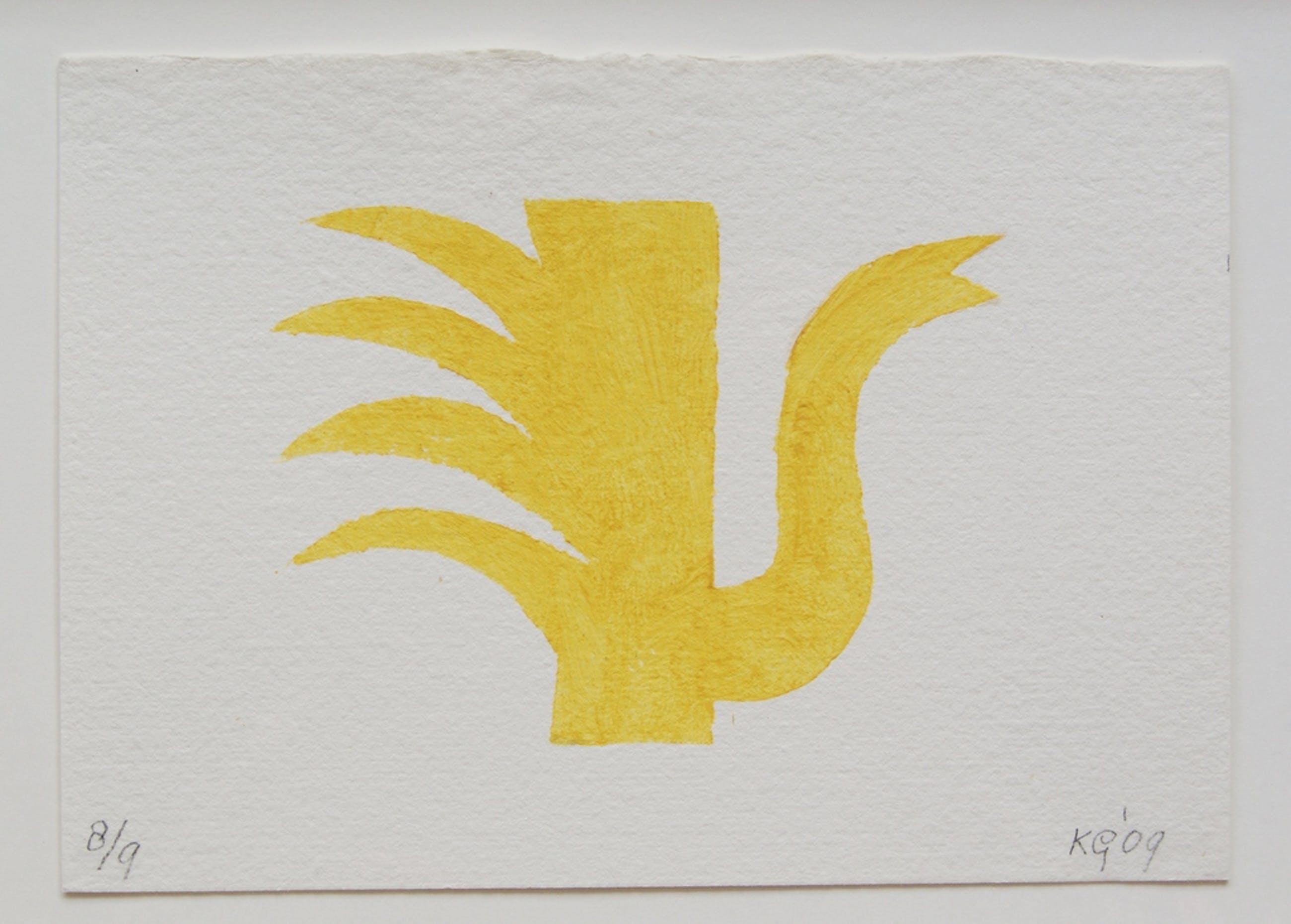 Een zeer fraaie sjabloondruk op handgeschept papier van Klaas Gubbels uit 2009.