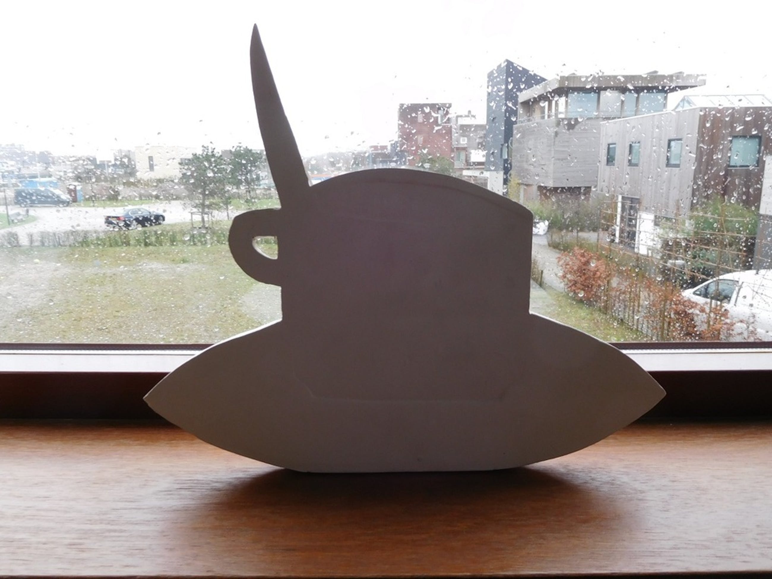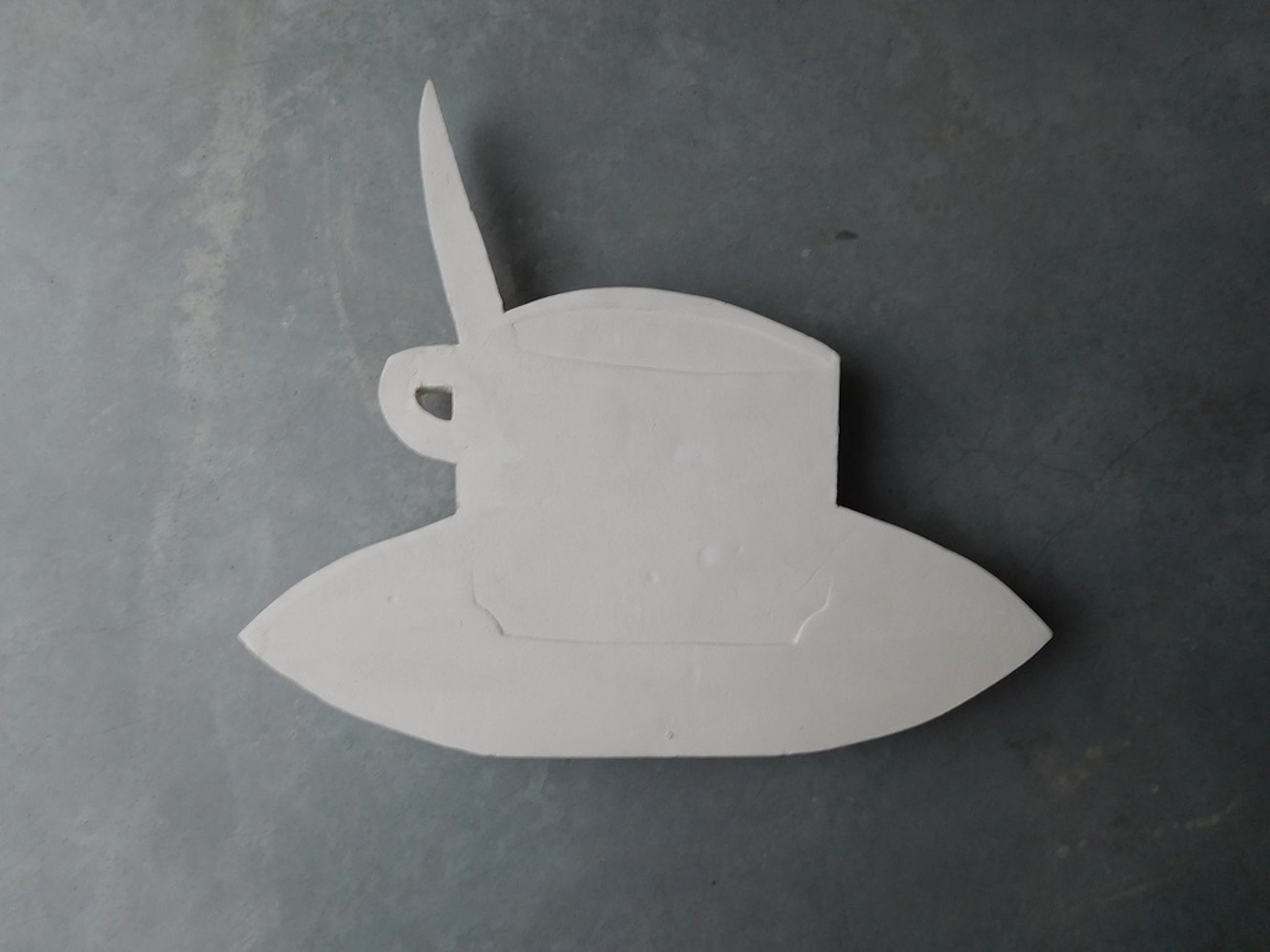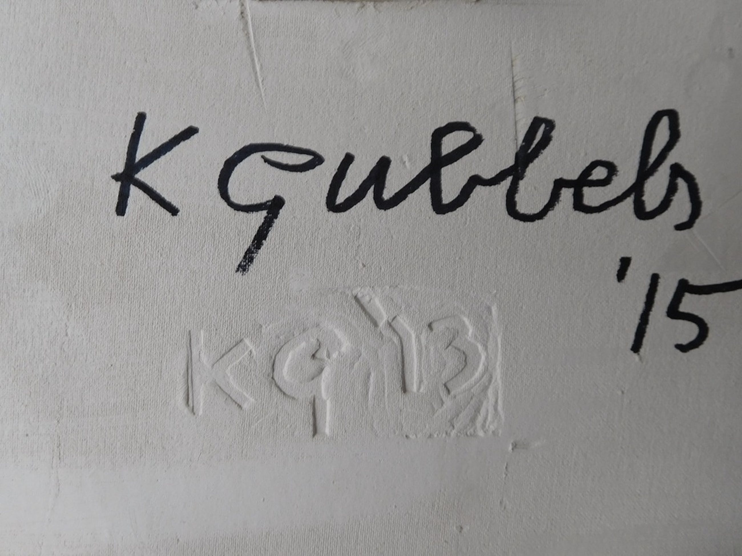 Van de inmiddels 82- jarige sympathieke kunstenaar Klaas Gubbels, een keramisch object. Het kop en schotel met lepeltje, genaamd "Volksbondskopje", kan opgehangen of neergezet worden. Het is gemaakt in 2013 en met een stempel gesigneerd. Enige tijd geleden heb ik er enkelen laten signeren met een zwarte stift en '15.