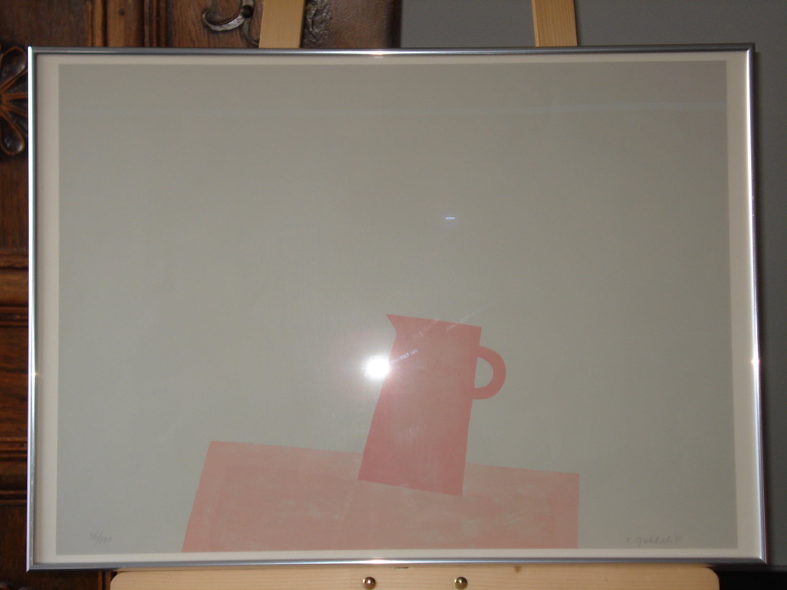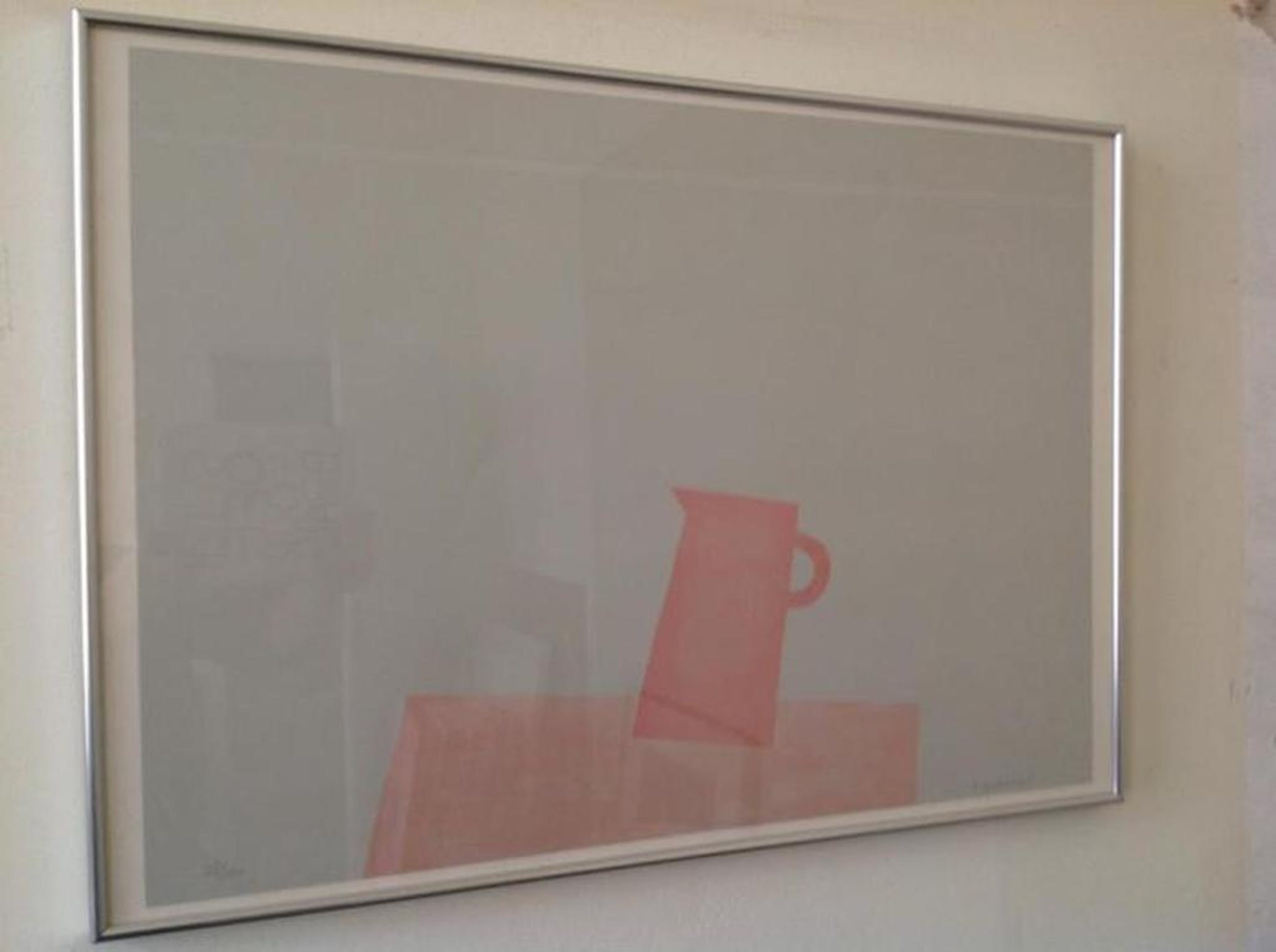 Prachtige zeefdruk met tere kleuren met de welbekende thema's van Gubbels: de kan, de tafel.