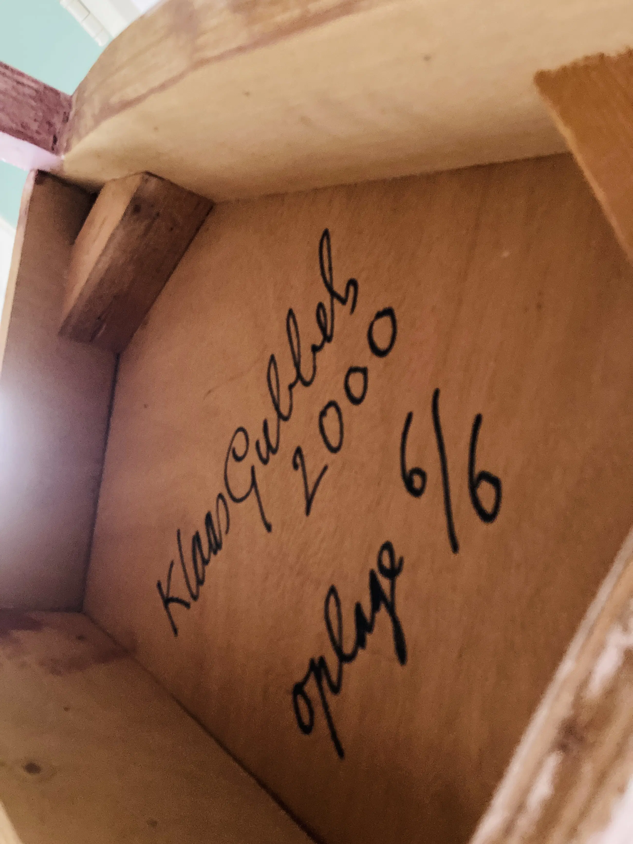 Fraaie koningszetel van hout en geschilderd door Klaas Gubbels in oplage 6/6 voor op de grond of aan de muur. gesigneerd en genummerd in viltstift aan de onderkant van de zetel. Het werk is in goede conditie, de verf is op zijn Klaas met de Franse slag enhier en daar nog wat wit te zien van de ondergrond. U kunt het werk ophalen of op via een koerier laten bezorgen.