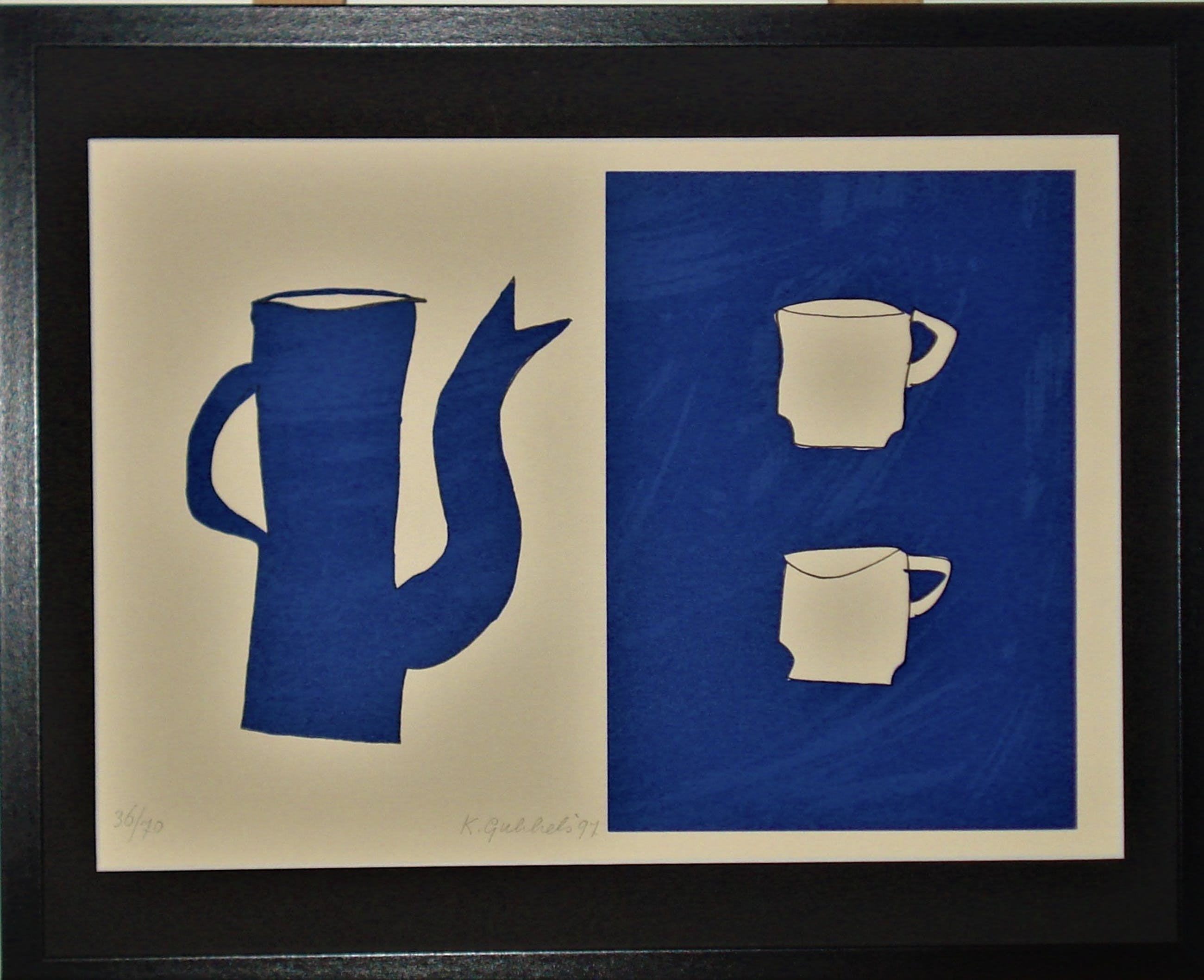 Prachtige, zeer gewilde zeefdruk van Klaas Gubbels Kleine oplage, genummerd 36/70 Mooi gelijst in zwarte lijst en zwarte passepartout