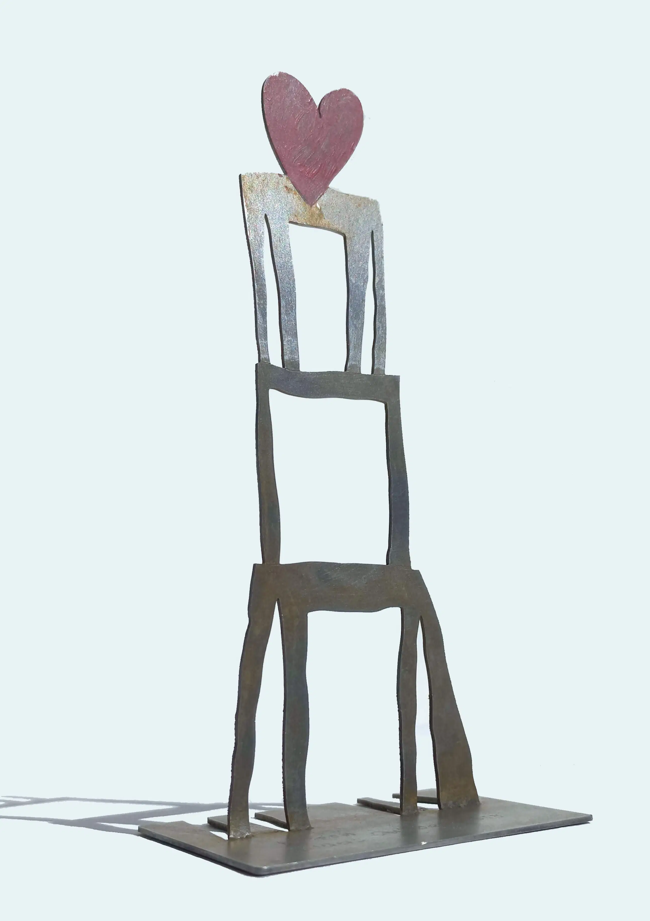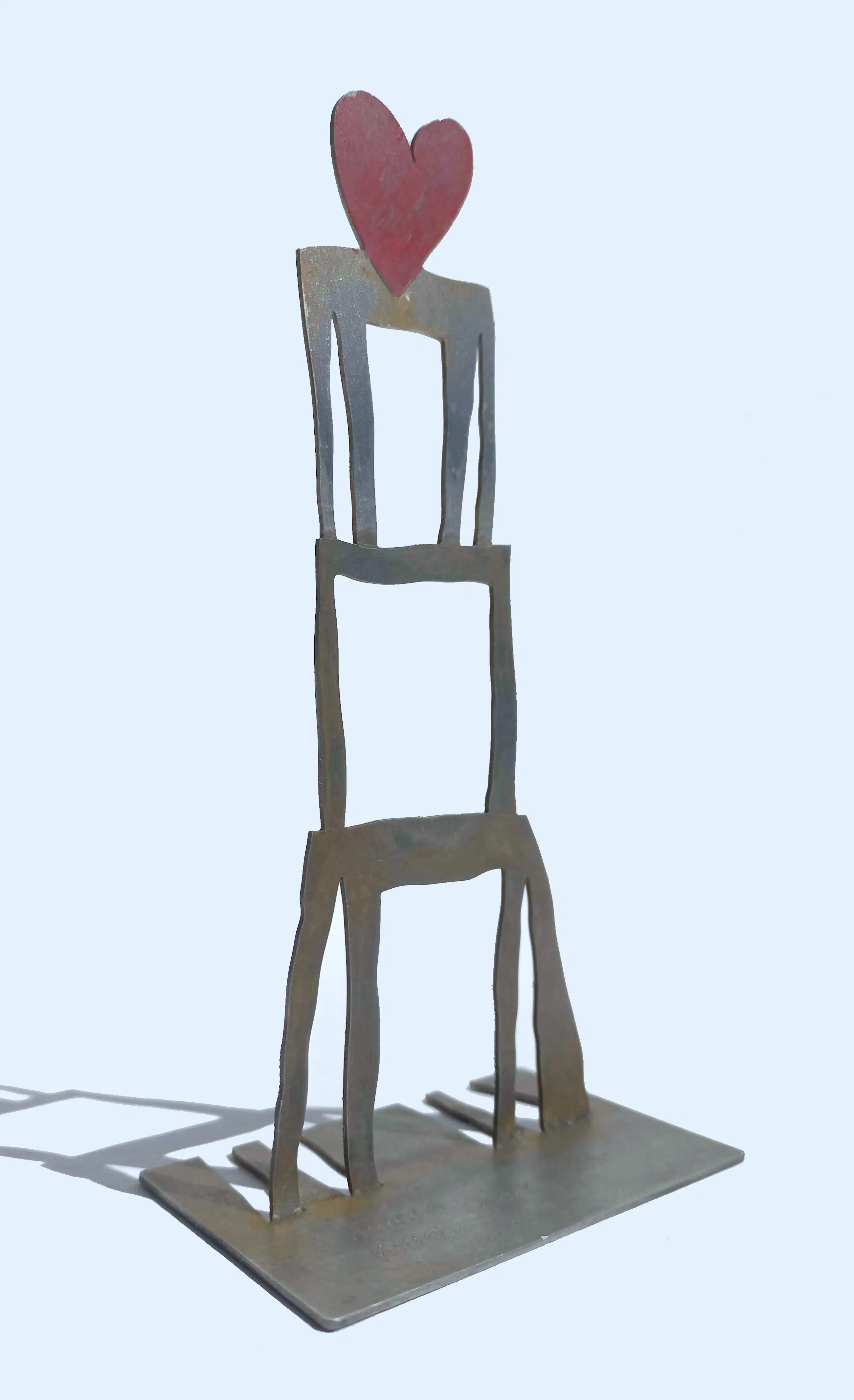 Mooi, karakteristiek beeldje van Klaas Gubbels, een handgekleurd hart op een tafel op een tafel op een tafel. Handgekleurd metalen beeld, op de voet gesigneerd en gedateerd (“Heleen en Klaas Gubbels 2018”). In goede conditie.