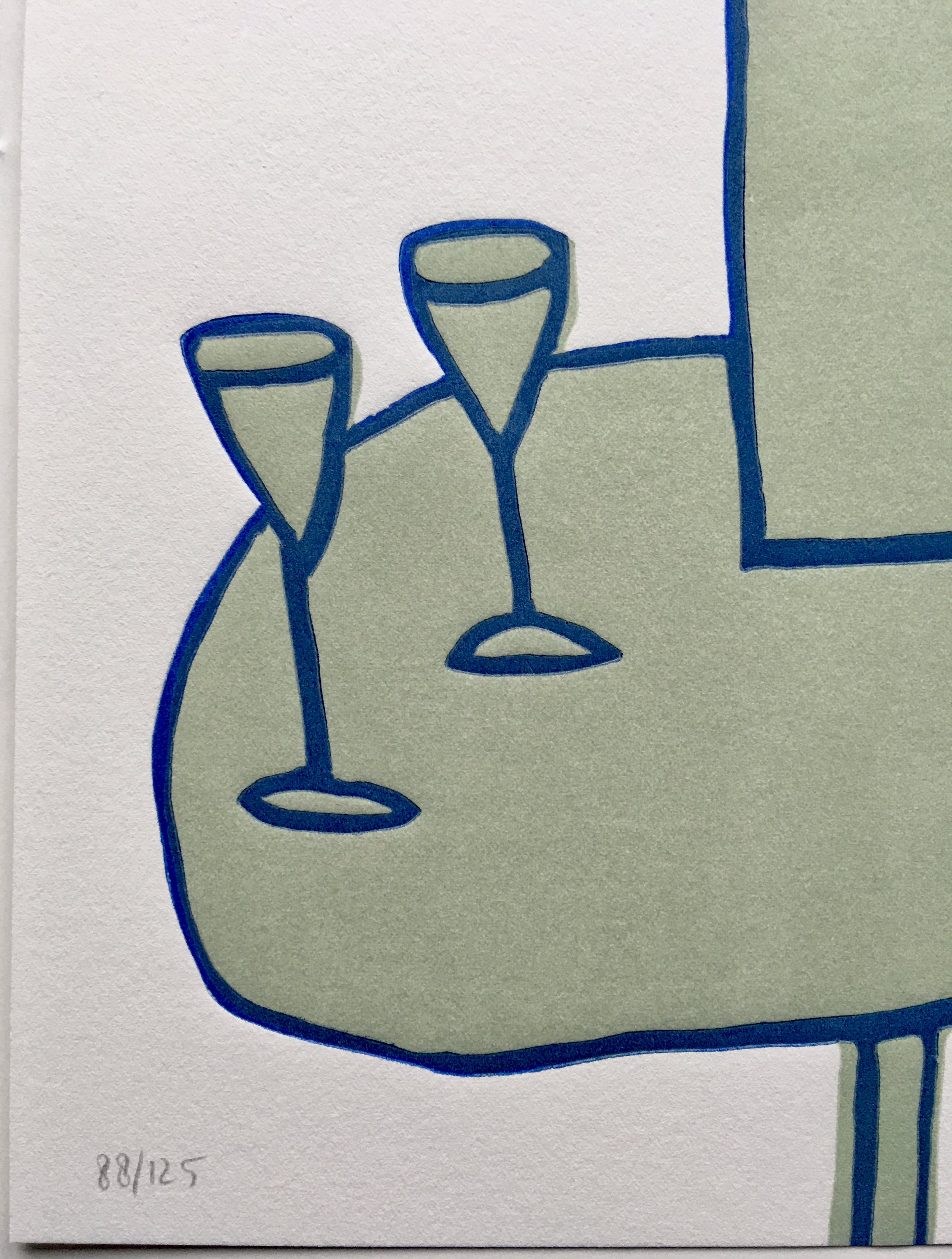 De linosnede is aan de bovenzijde op twee puntjes bevestigd op een onderblad. Dit is eenvoudig te verwijderen door een lijstenmaker. De lino is in zeer goede conditie.