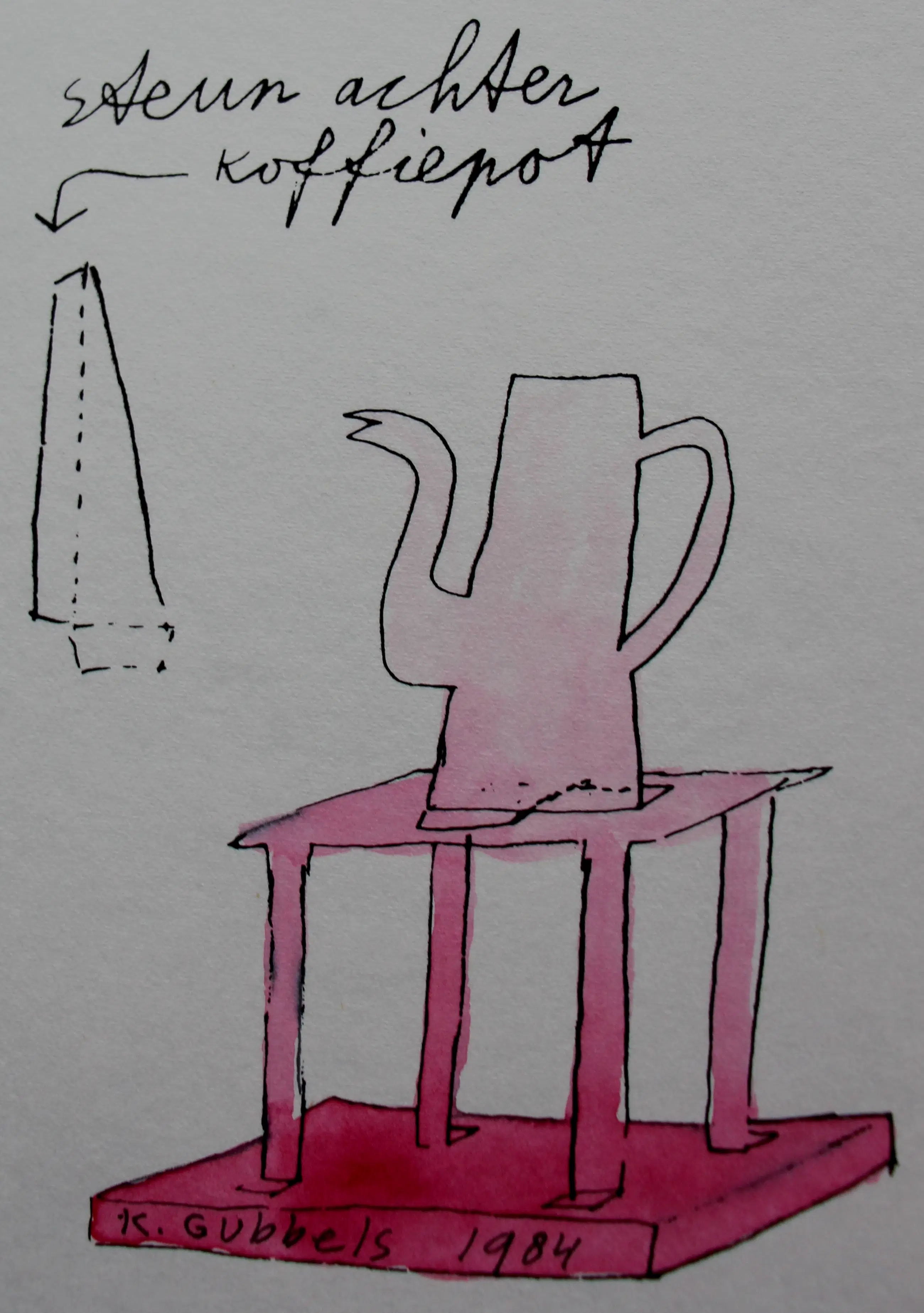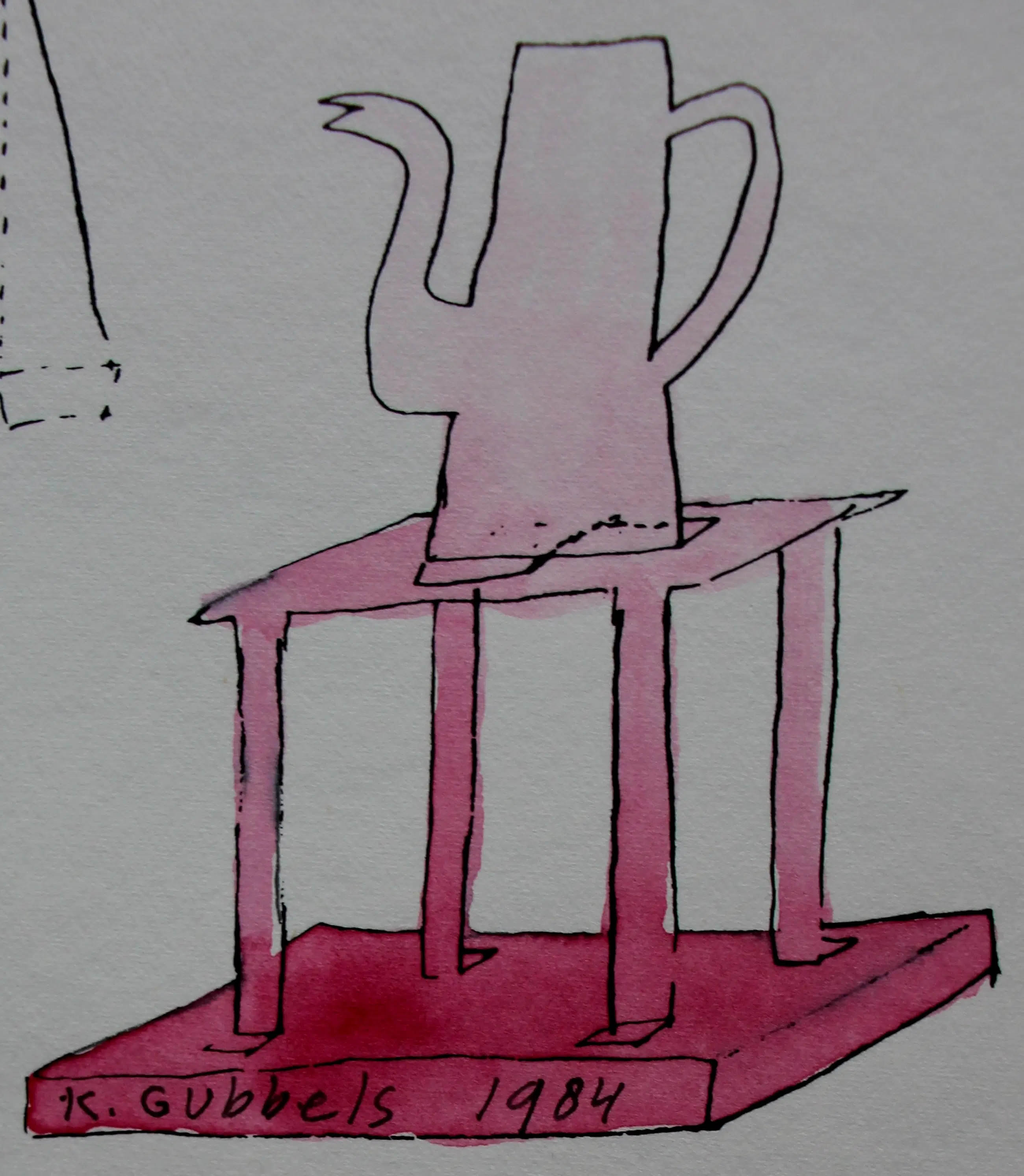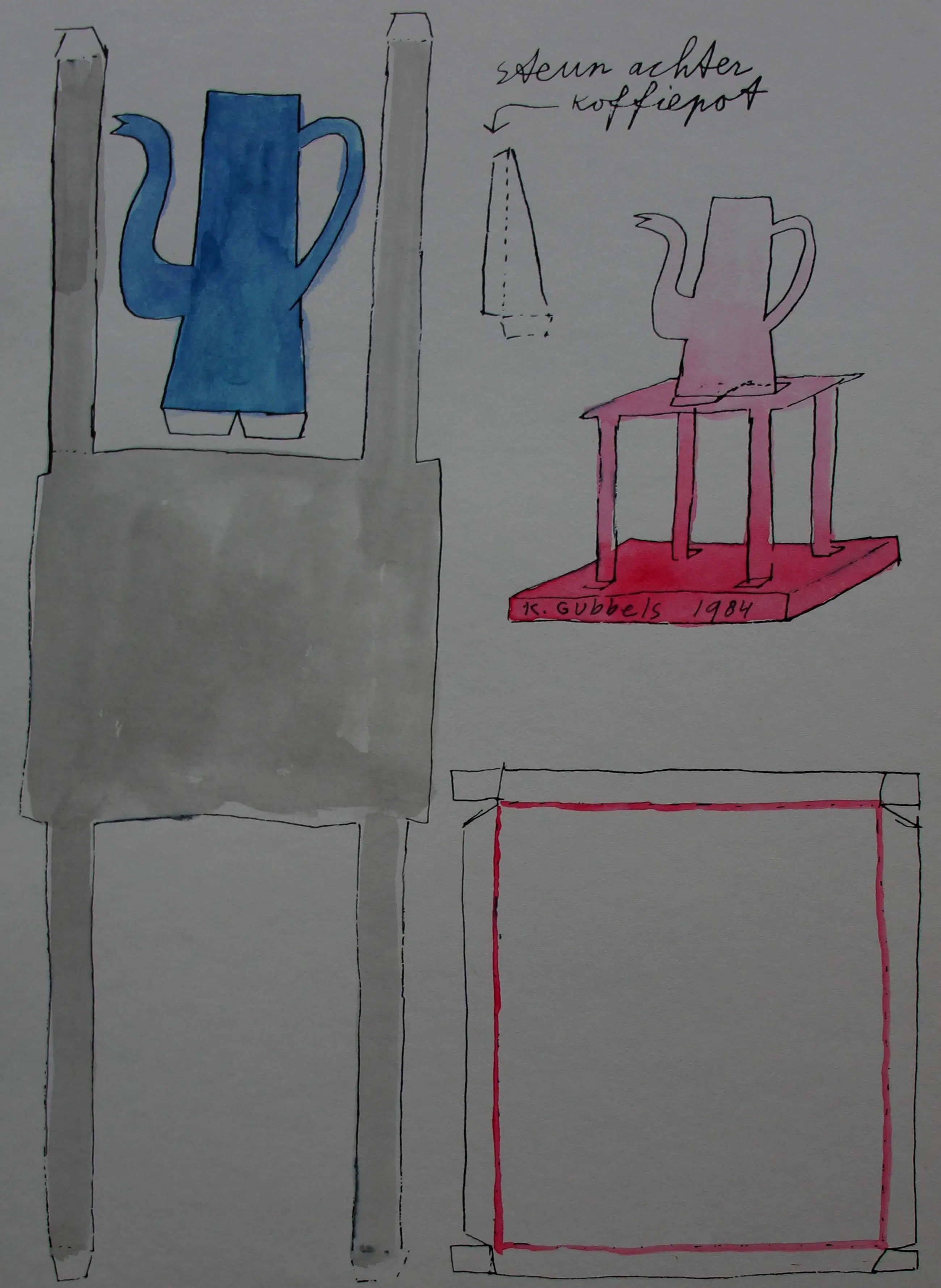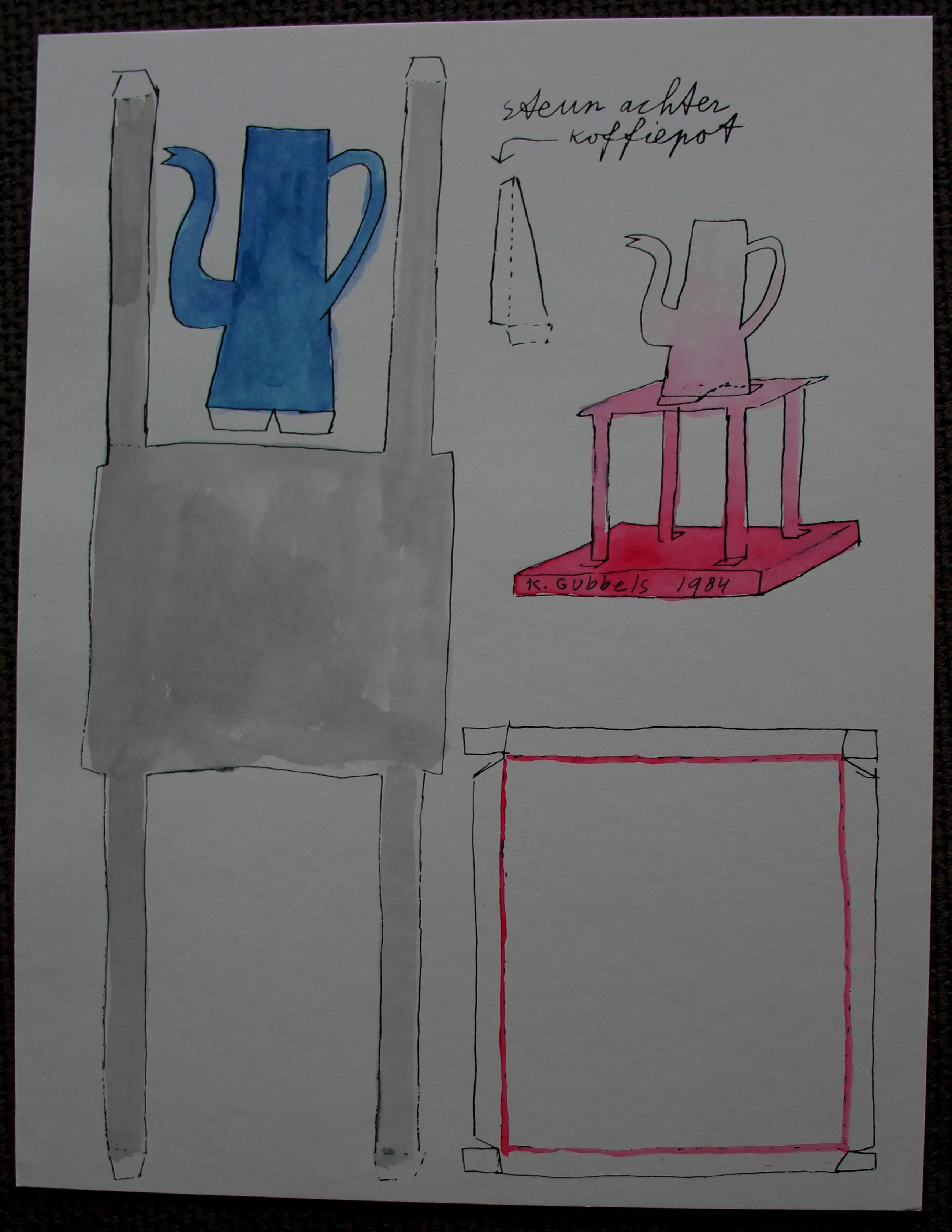 Gemengde techniek van Klaas Gubbels uit 1984. Voorstelling van een "bouwplaat". Afmetingen blad: H32.5 x b25cm. Afmetingen voorstelling: H31 x b21.5cm. Het werk is onder de roze kan, gesigneerd door de kunstenaar. De authenticiteit van het, aangeboden, werk wordt volledig gegarandeerd. Een certificaat van echtheid kan, op aanvraag, na aankoop en betaling van het werk worden gemaild.