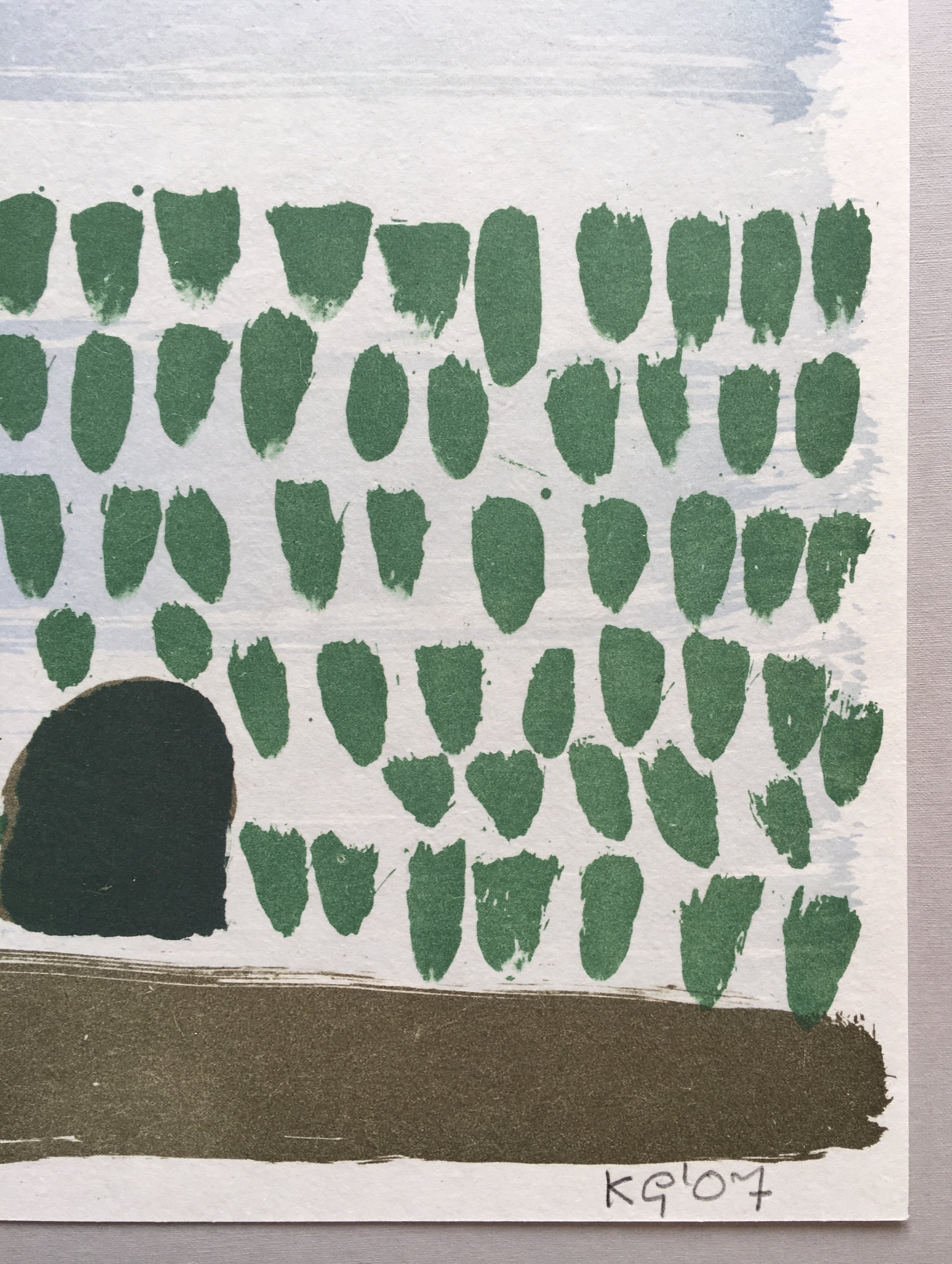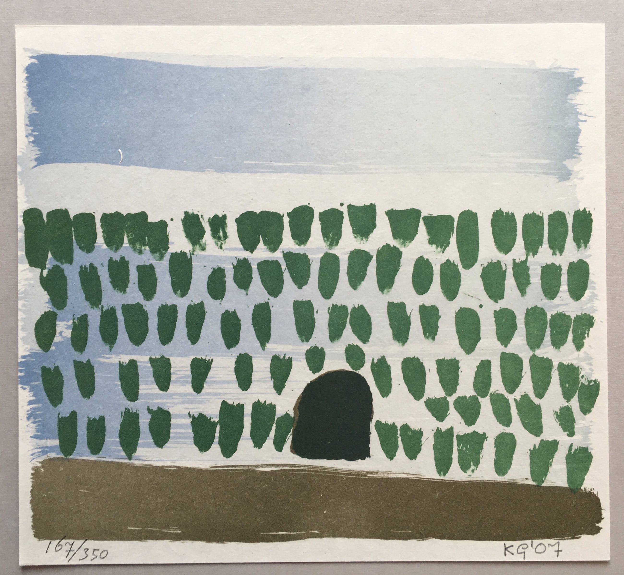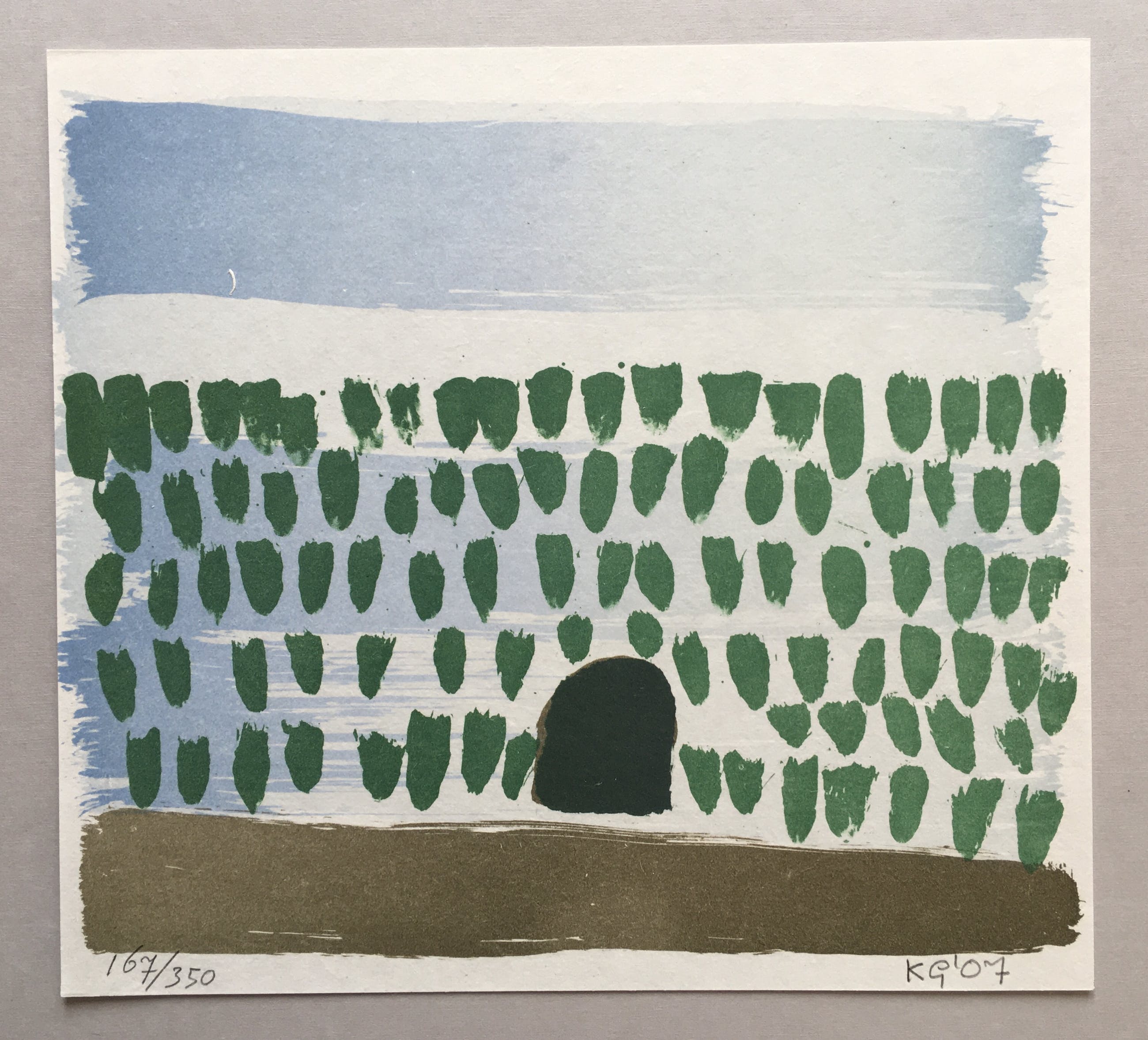 Een fraaie litho van Klaas Gubbels uit 2007 ‘Gat in de heg’.