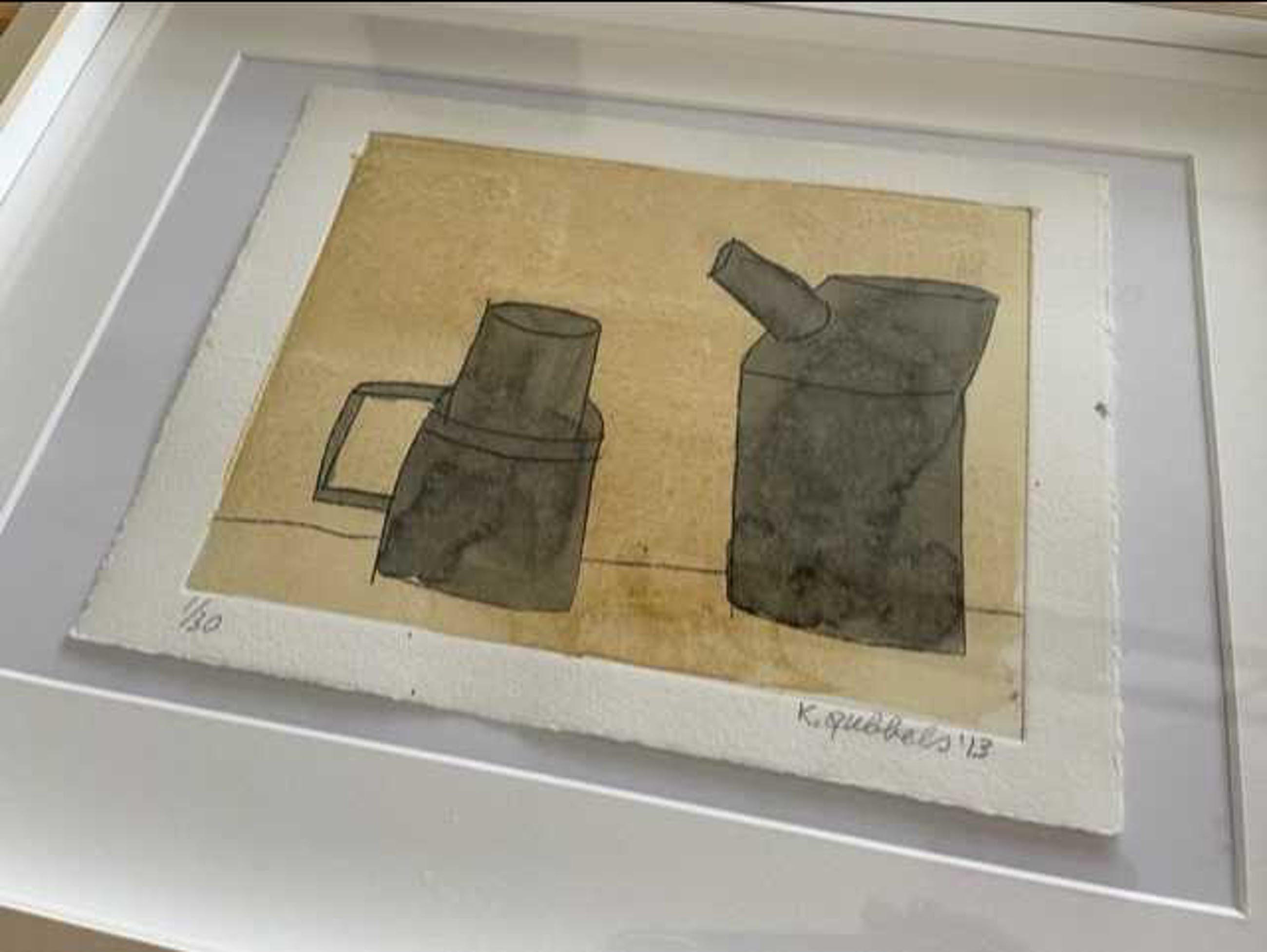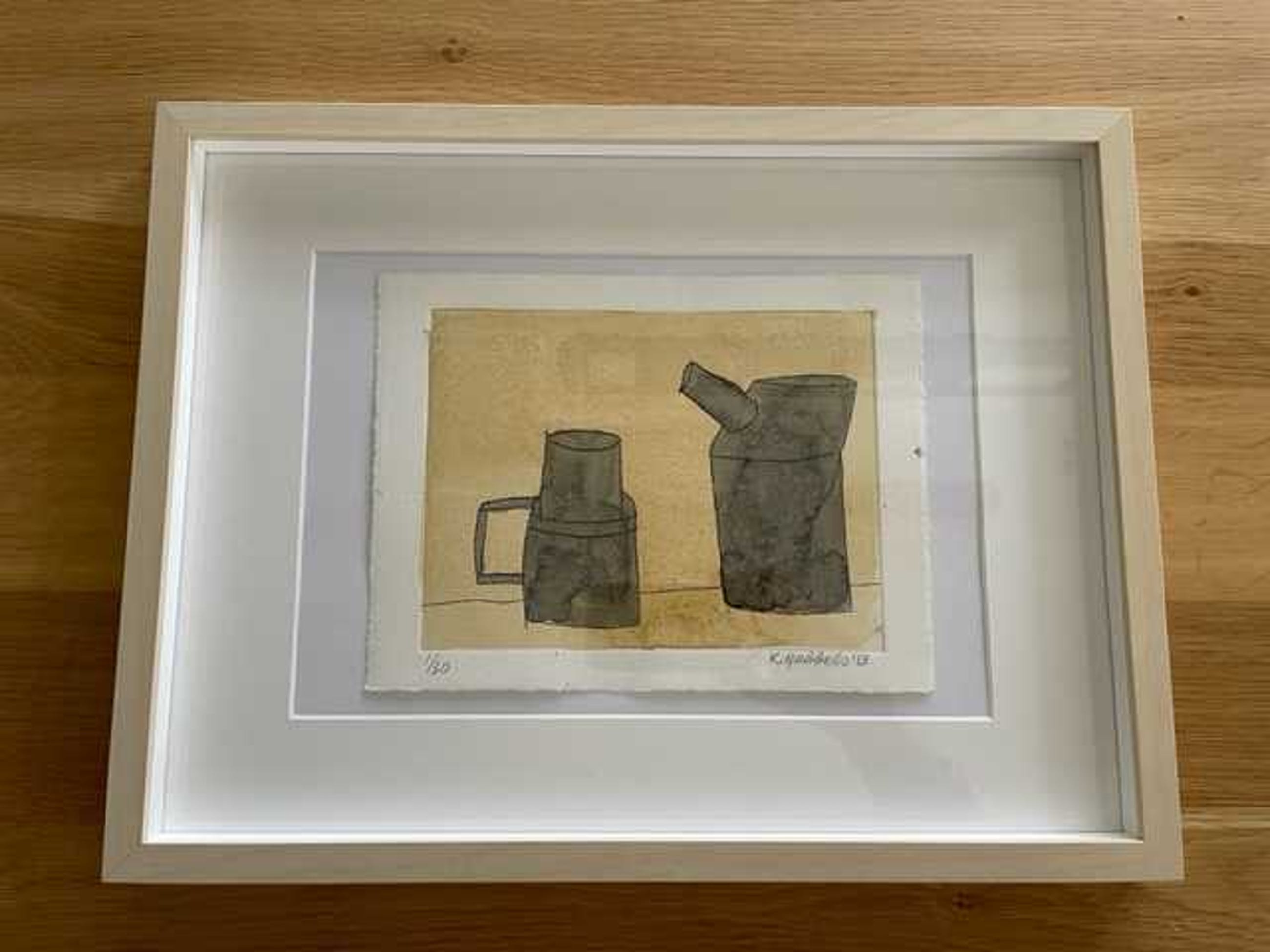 Het werk is gesigneerd en genummerd 1/30. Enkele kleine spatjes verf op de zijkanten maar niet storend. De kleuren zijn prachtig! Mooi diepgedrukt op 300 grams Hahnumule ets papier. Ingelijst in eenvoudige lijst van 30x40 cm. Het werk is 18x24 cm.
