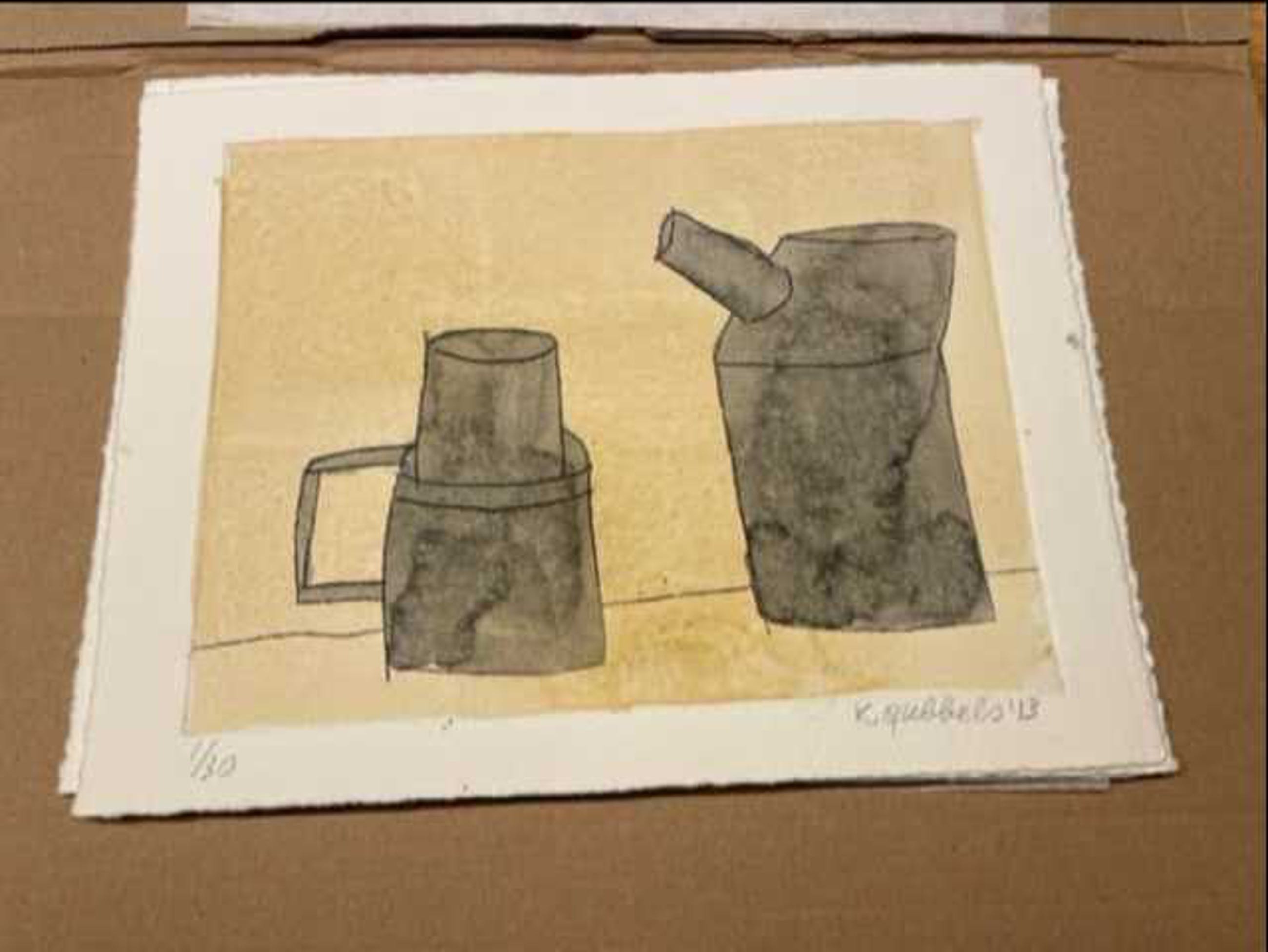 Met aquarel ingekleurde ets uit 2013 van Klaas Gubbels.