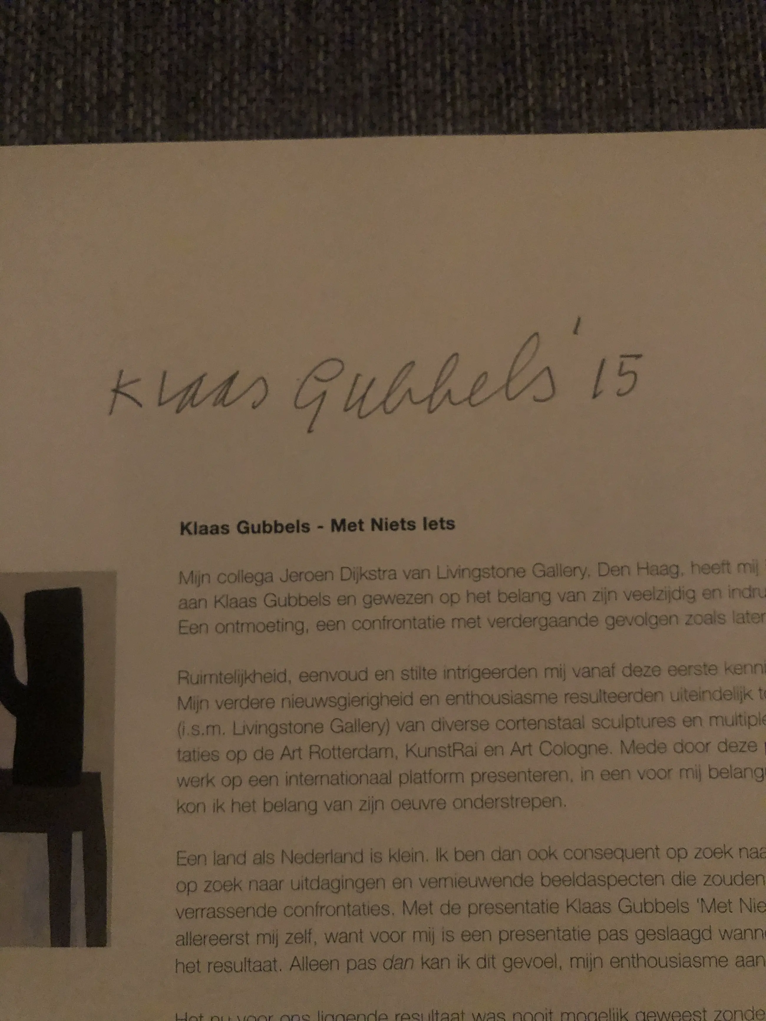Gesigneerd boekje Met niets iets van Klaas Gubbels. Gesigneerd in 2015