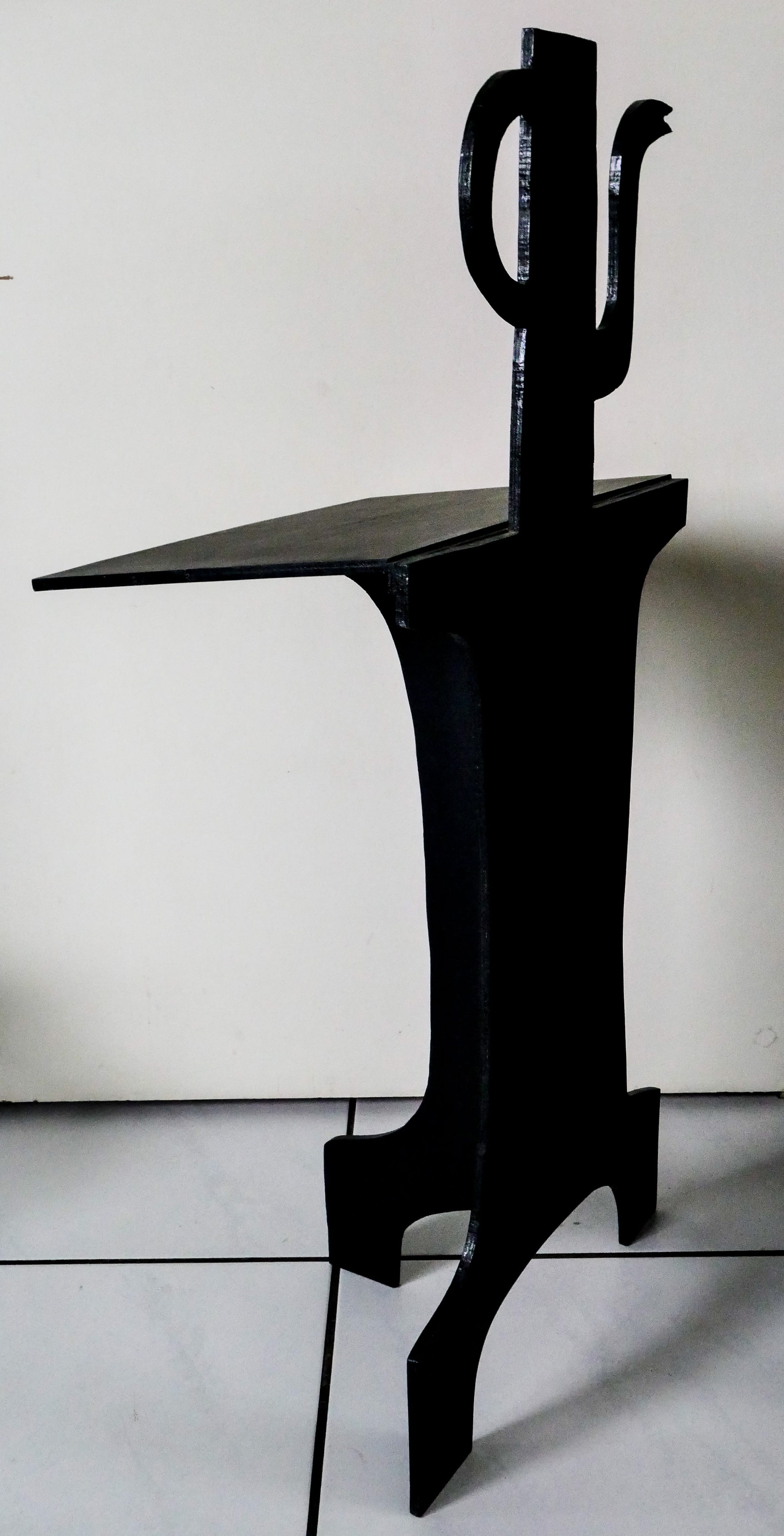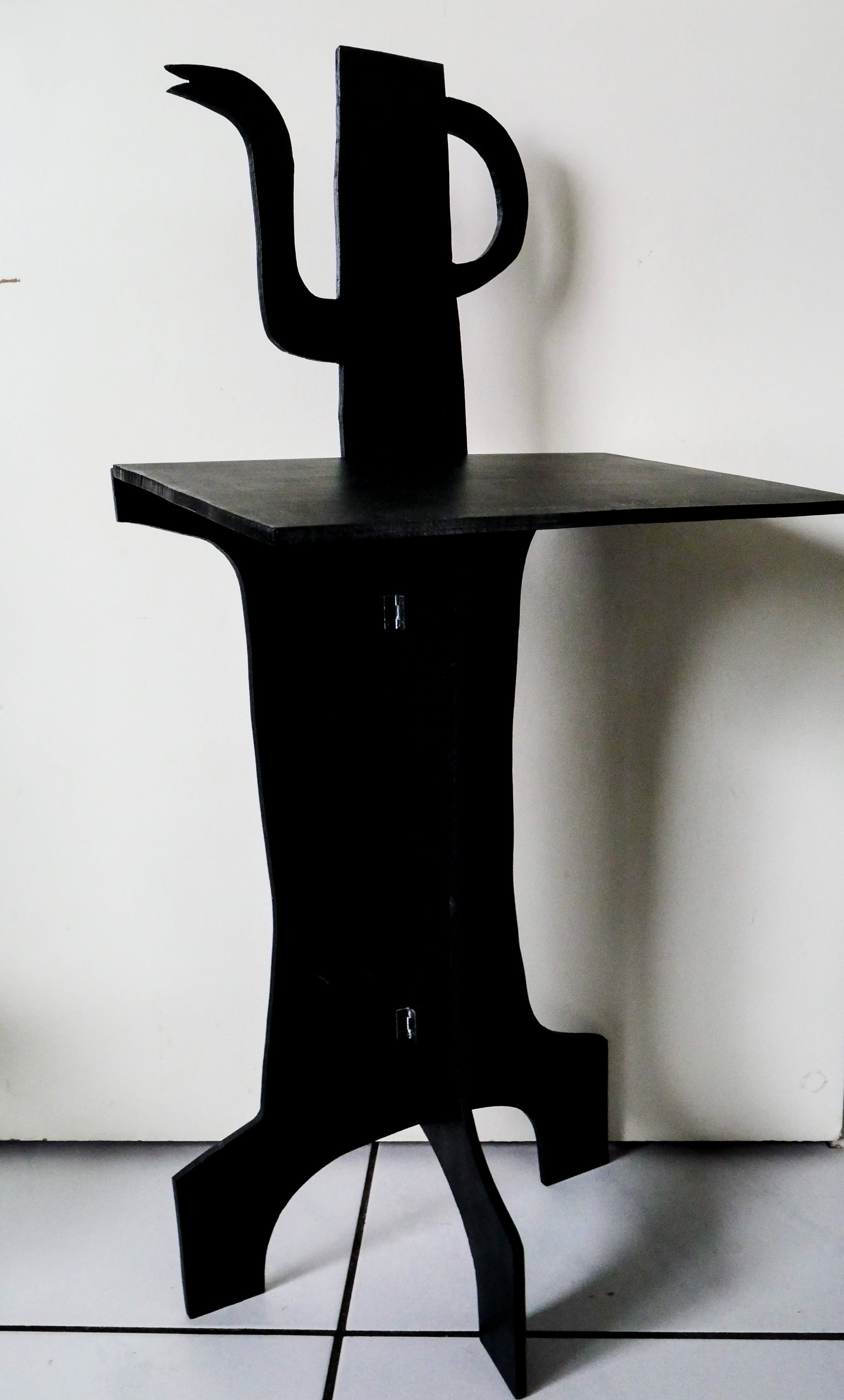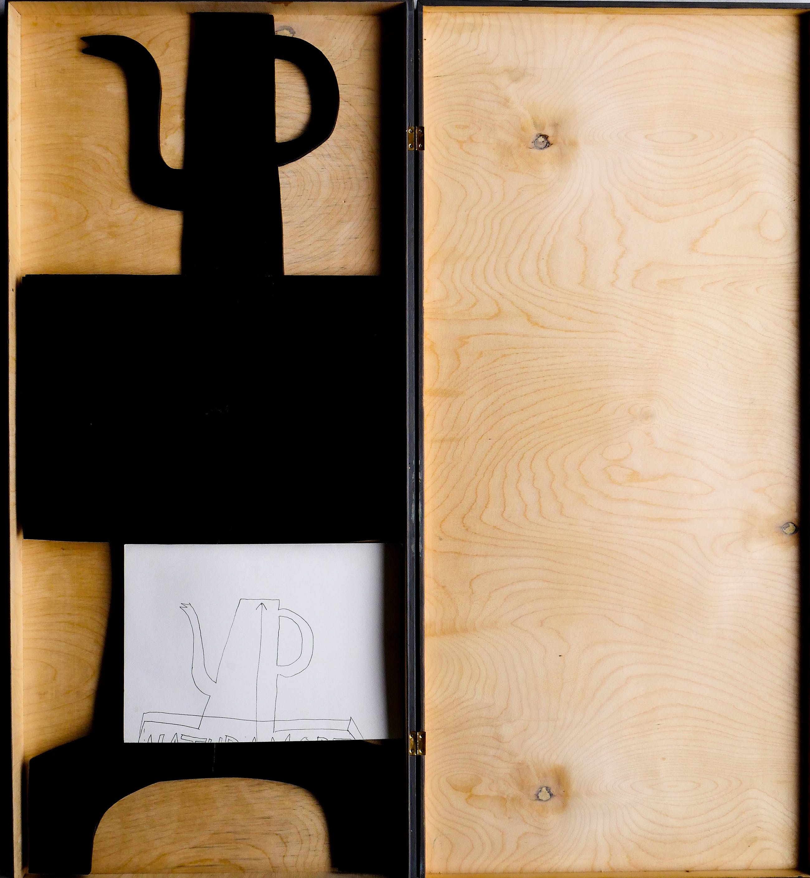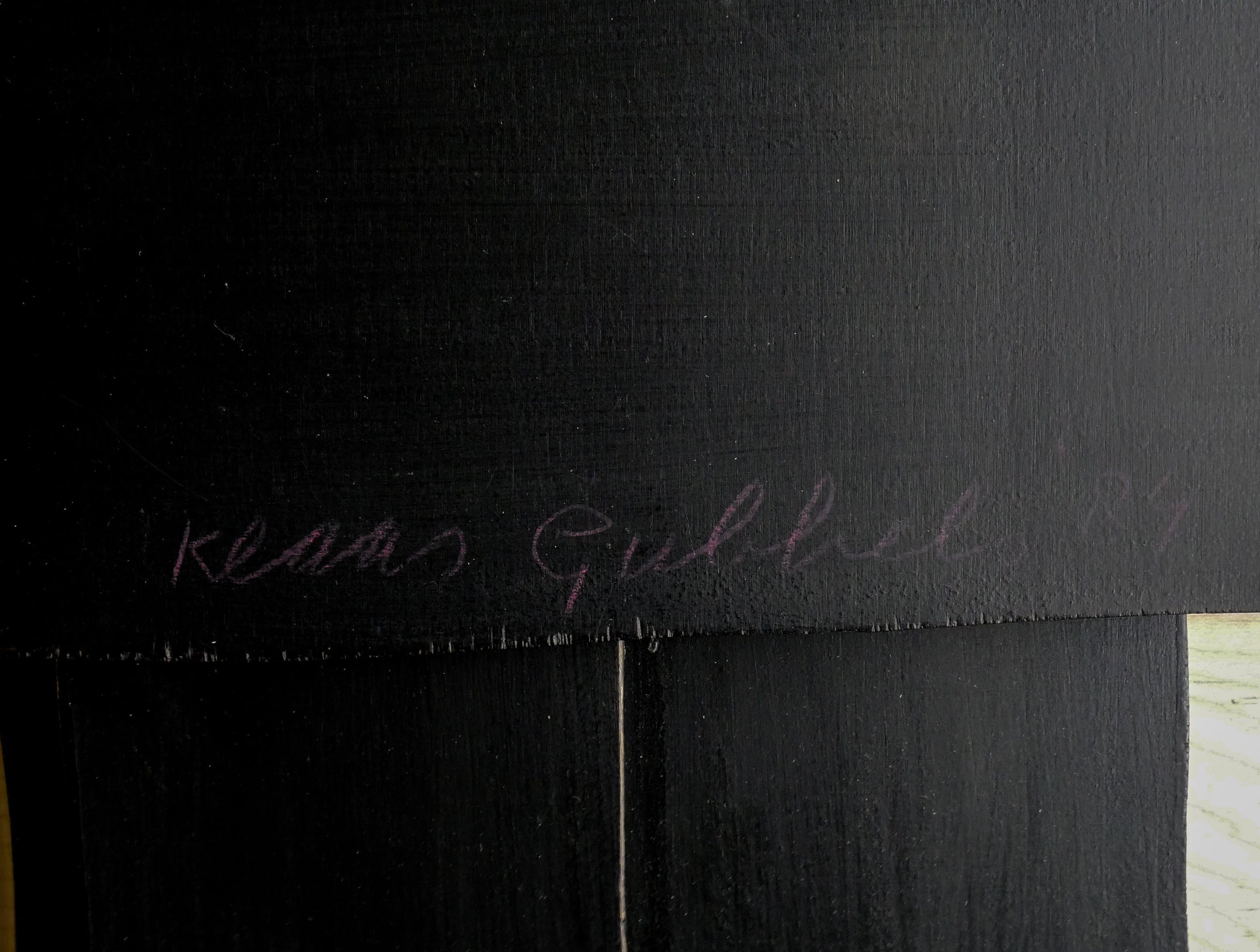 Klaas GubbelsSculptuur van Triplexgesigneerd met de hand.Uitklapbare, door Klaas Gubbels vervaardigde tafel van multiplex.Op de tafel staat een uitgezaagd stilleven.Het object wordt geleverd in een grijze houten doos.maten doos; 89 x 42 x 5 cmMinimale beschadiging op het blad van het tafeltje.Verder in goede staatdit is nummer 36/ 36 Het werk kan in overleg opgestuurd worden.