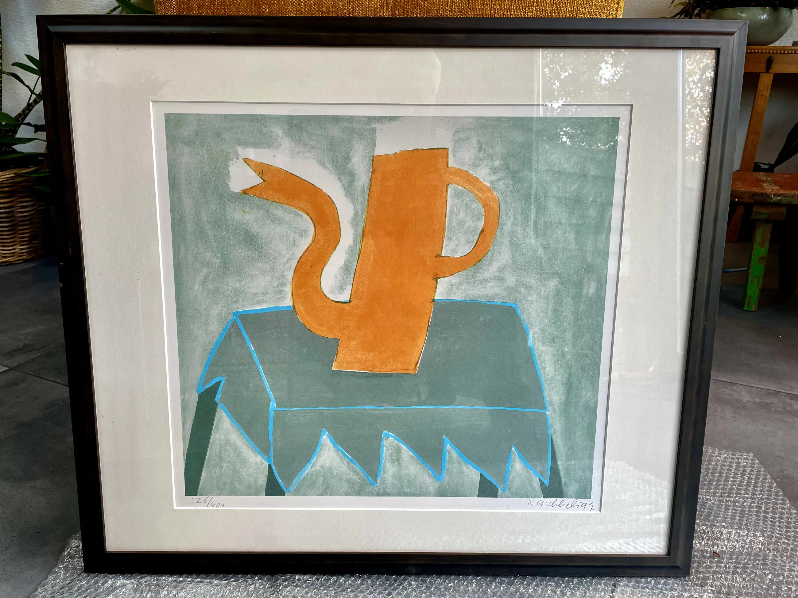 Klaas Gubbels - Zeefdruk in bruin/zwarte lijst: Oranje koffiekan Nr 126