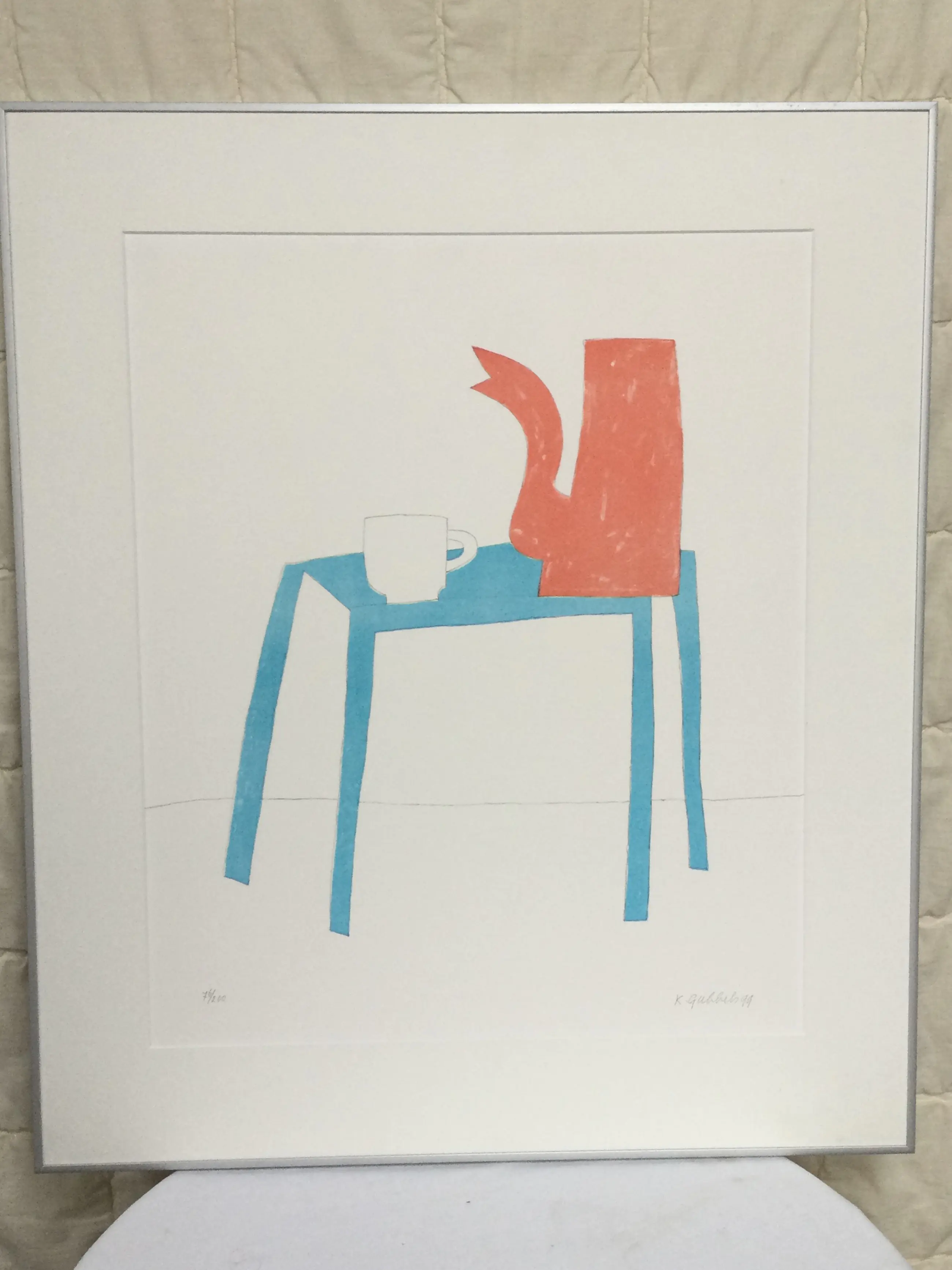 Klaas Gubbels - Rode koffiekan op blauwe tafel kopen? Bied vanaf 415!