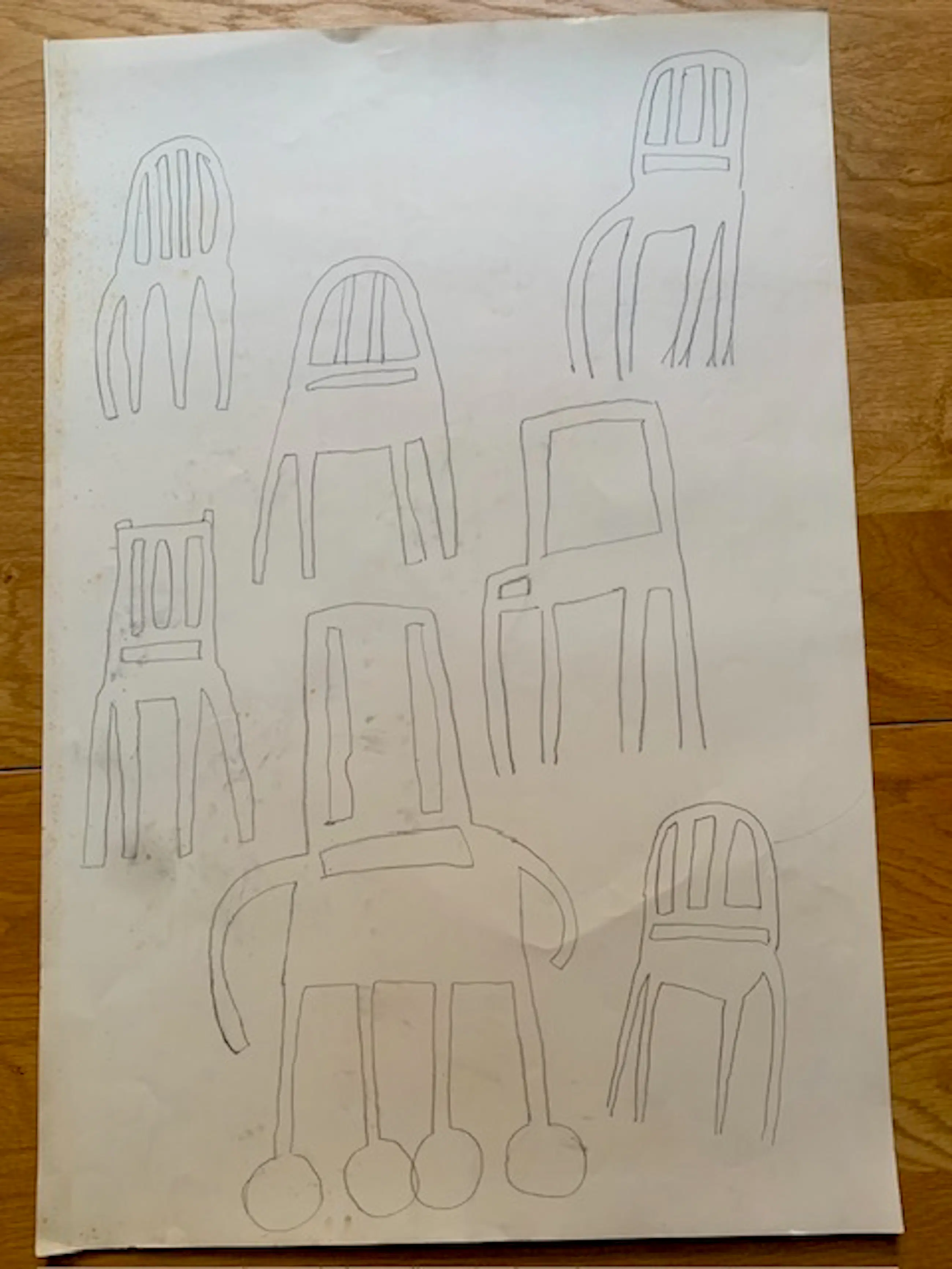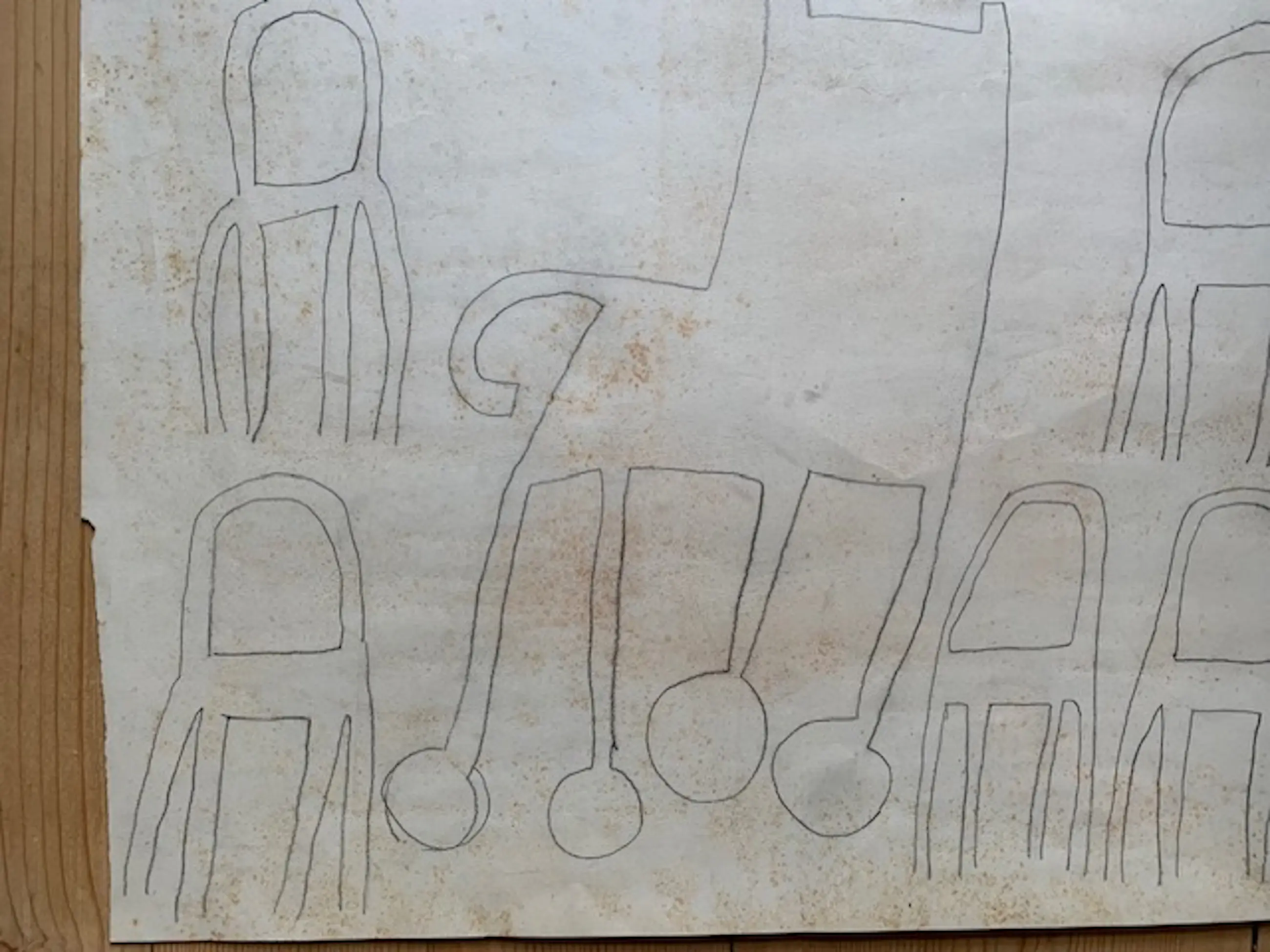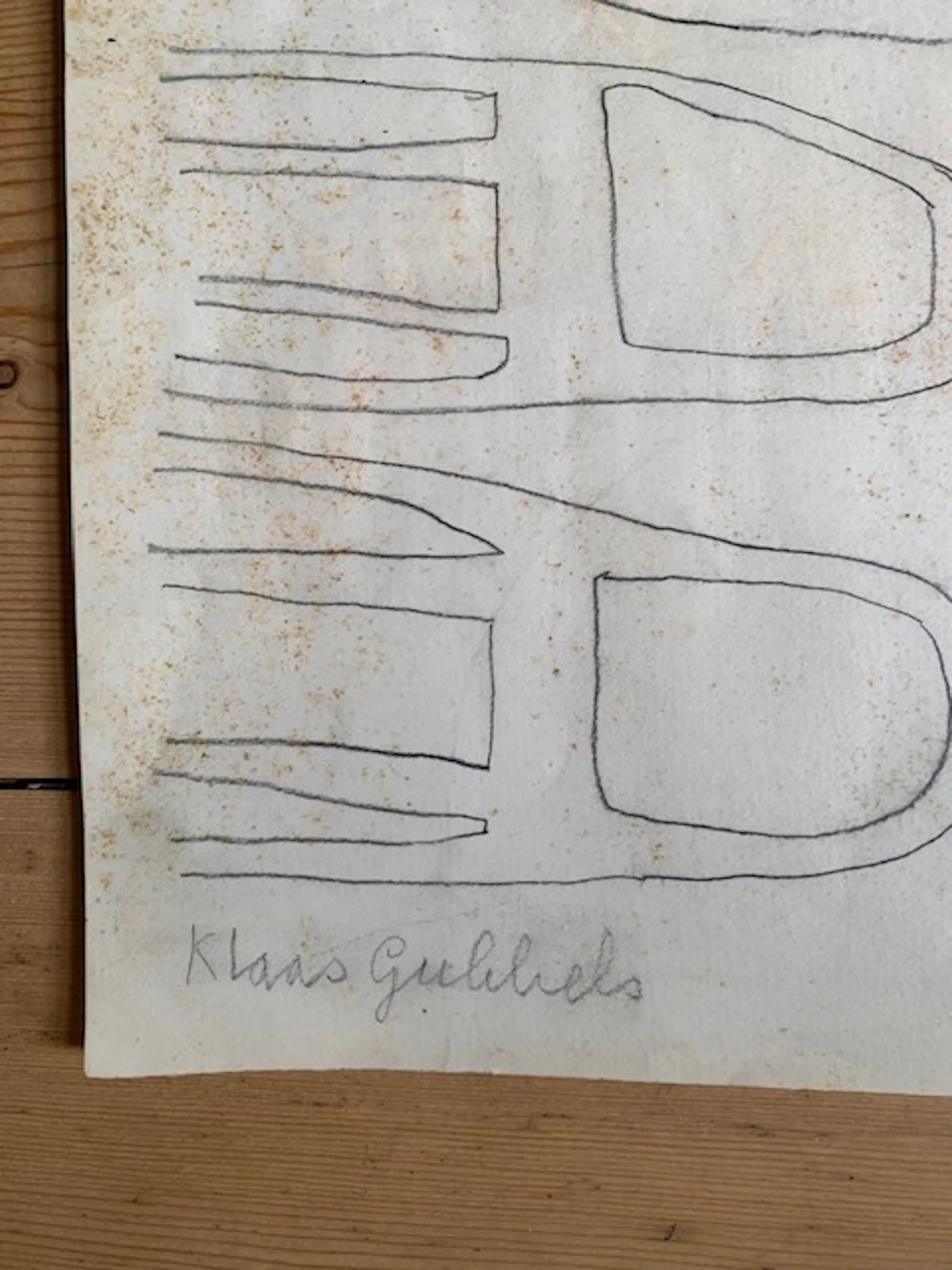 Twee schetsontwerpen van Gubbels voor (vermoedelijk) een theateraffiche, ontworpen door Paul Schulz in de jaren zestig, voor 'Eindspel' van Samuel Beckett in de Arnhemse Stadsschouwburg. Handgeschreven tekst over formaat en factuur voor het theater. Een exemplaar gaaf, tweede exemplaar met roestkleurige vlekjes door verzuring.