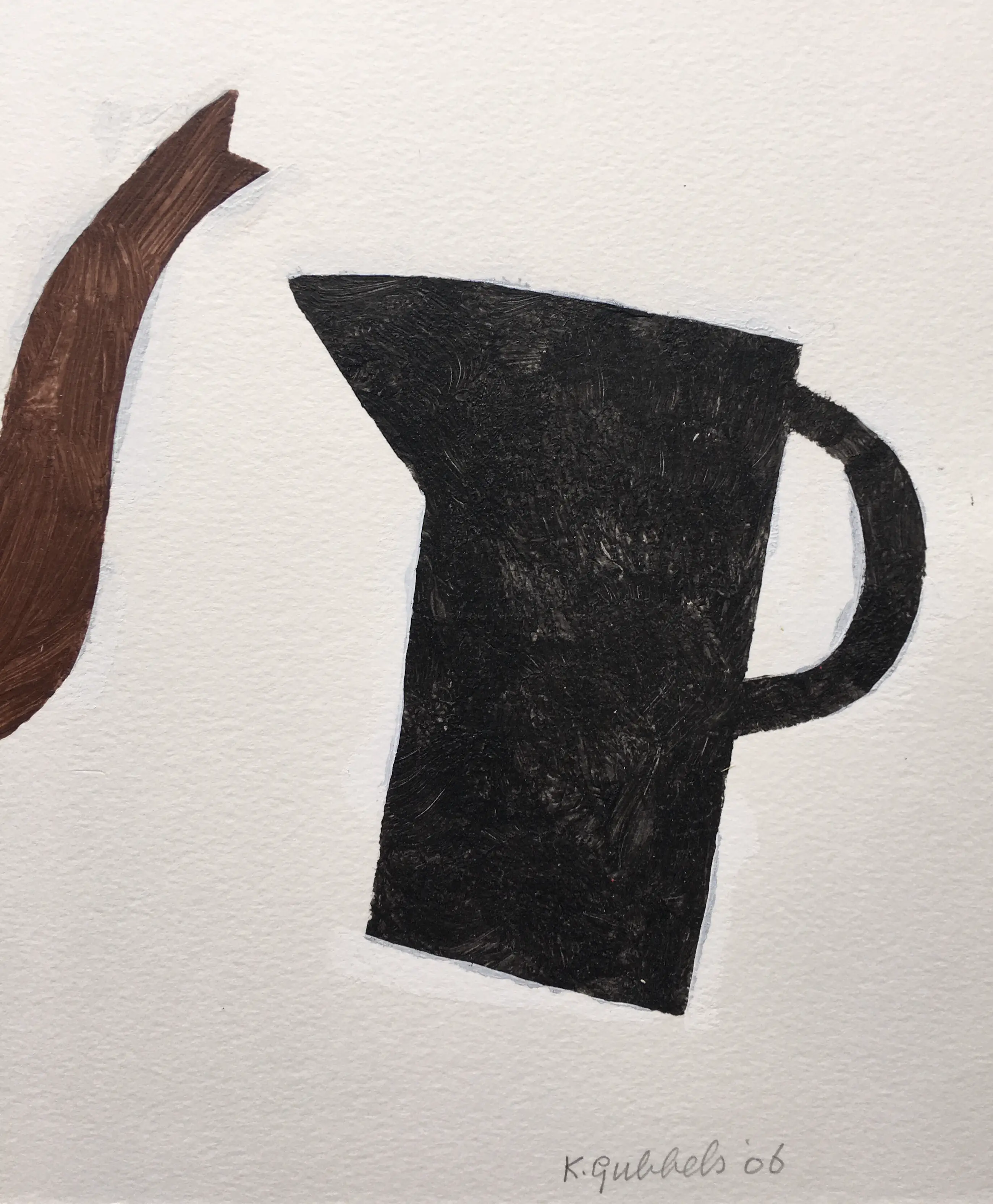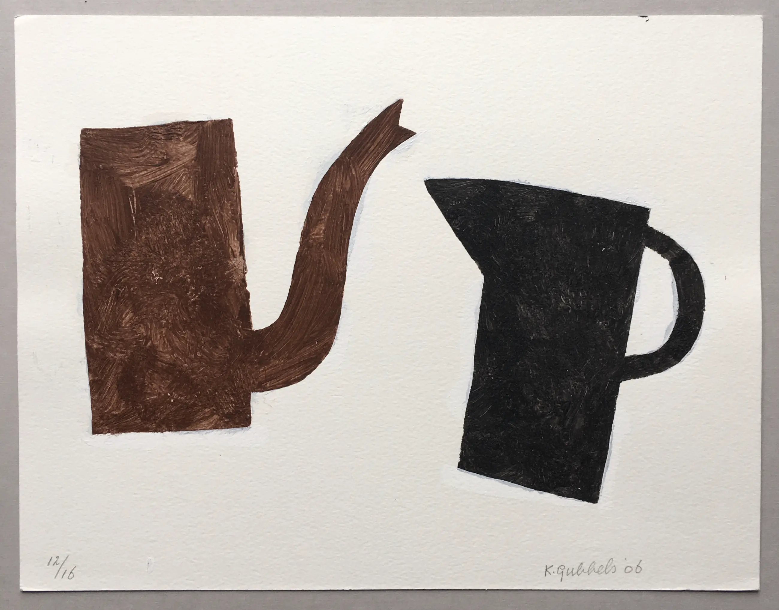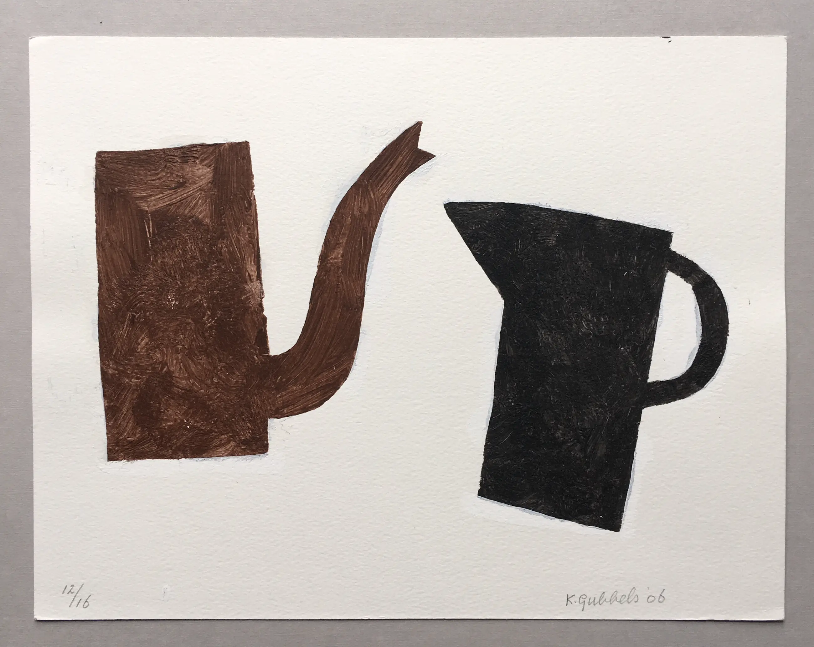 Een zeer fraaie sjabloondruk van Klaas Gubbels, ‘Stilleven in Bruin en Zwart’ uit 2006 oplage 16 ex.