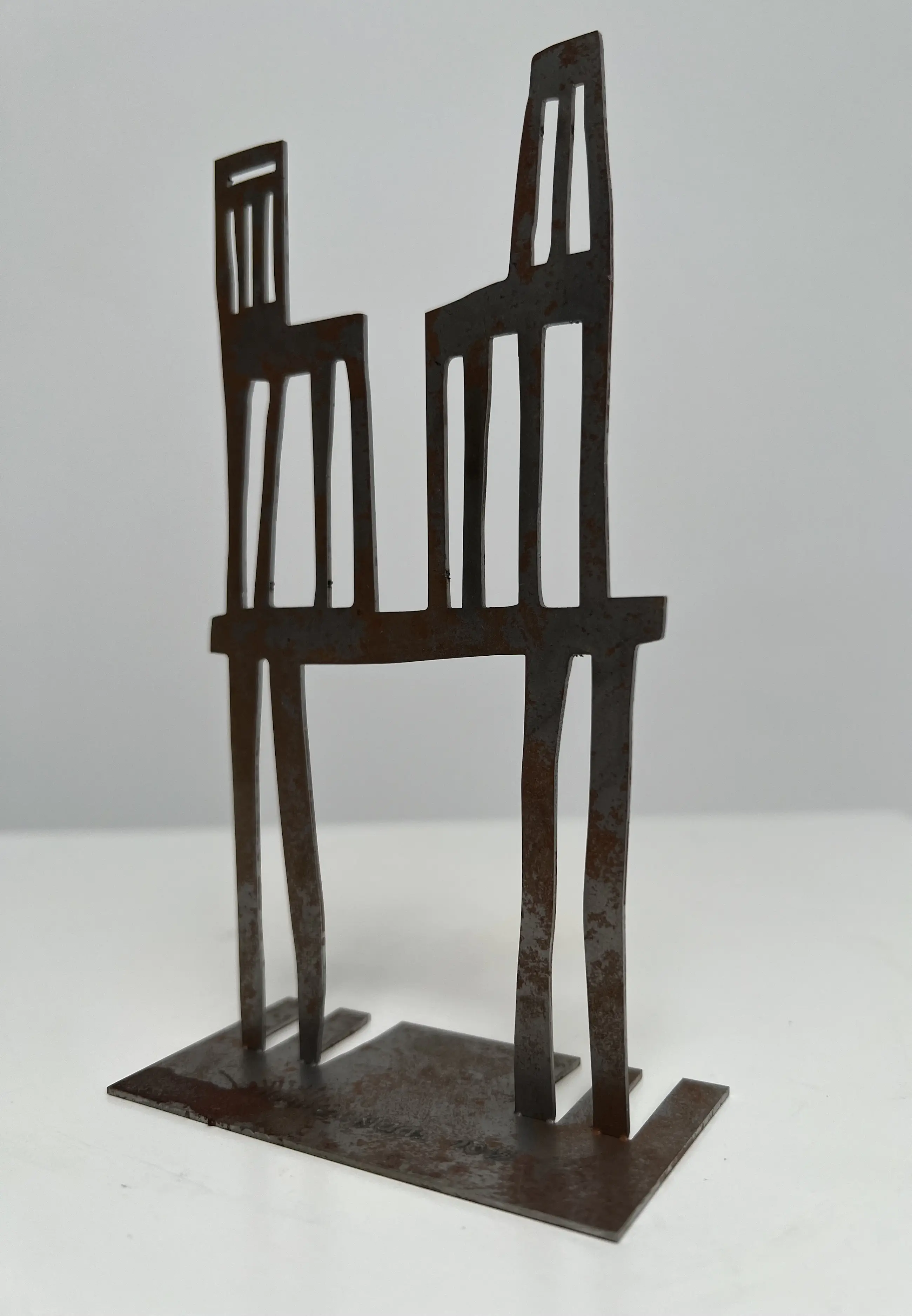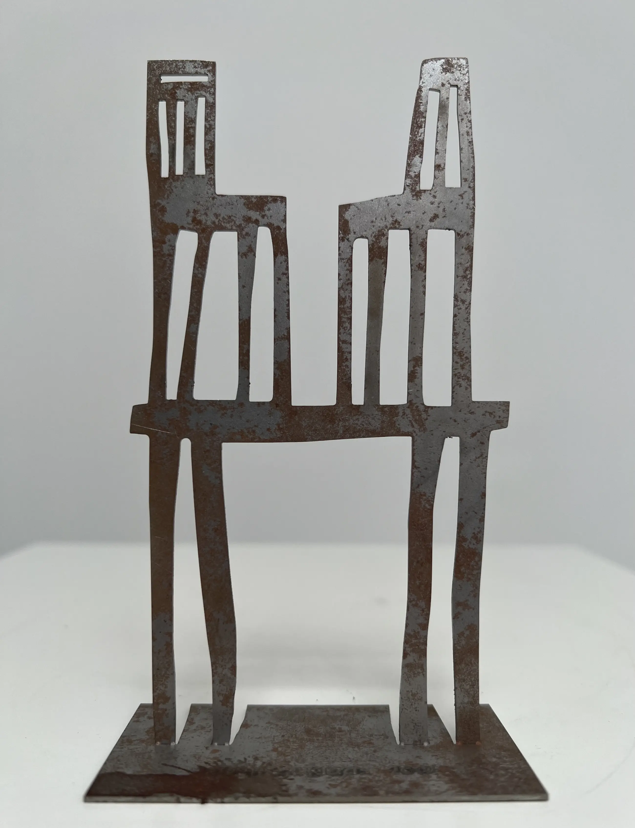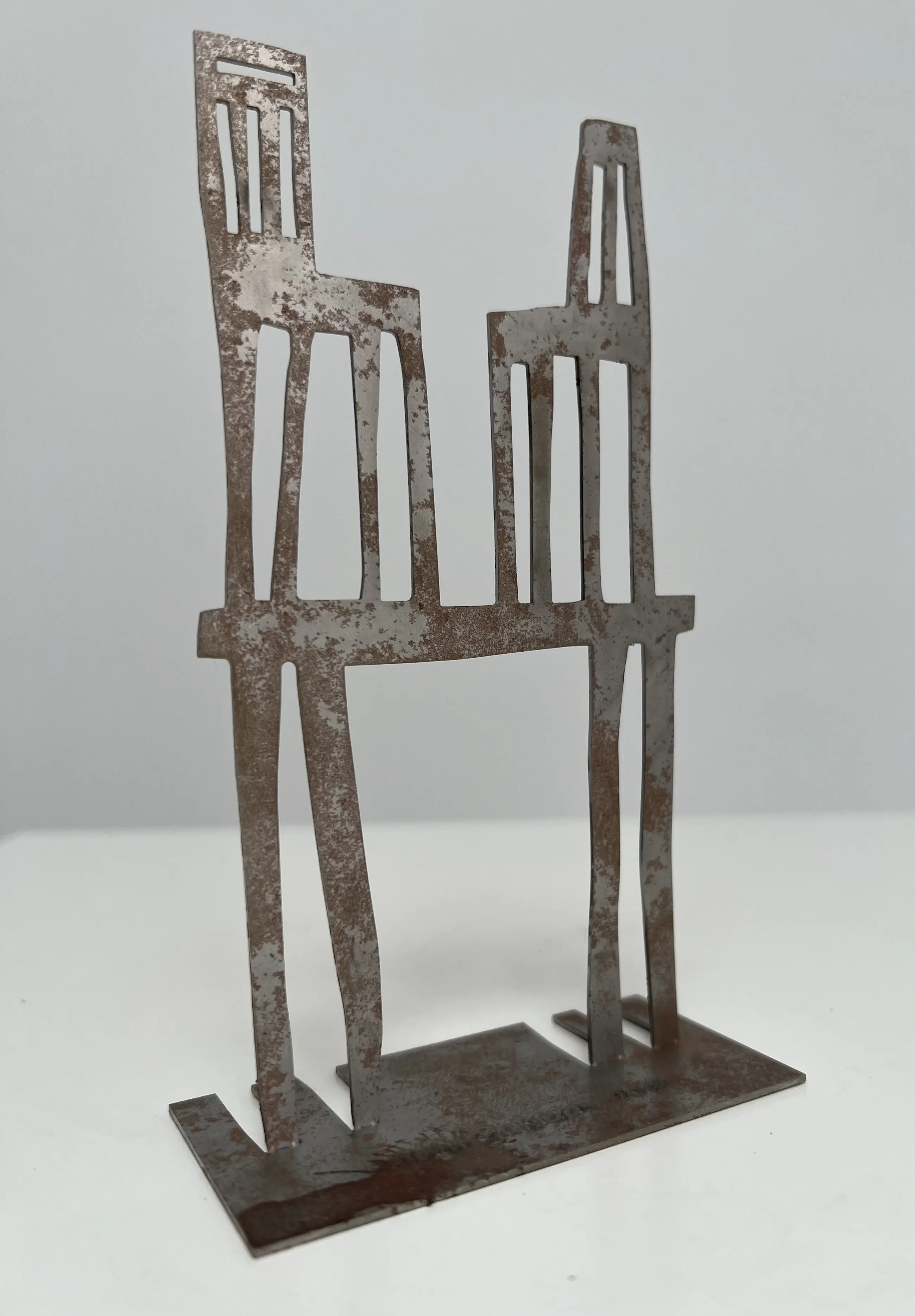 Op het sculptuur zit aanslag/roestvorming. Dit is er makkelijk af te halen, maar er is bewust voor gekozen om dit niet te doen, omdat dit juist de bedoeling is van Gubbels.