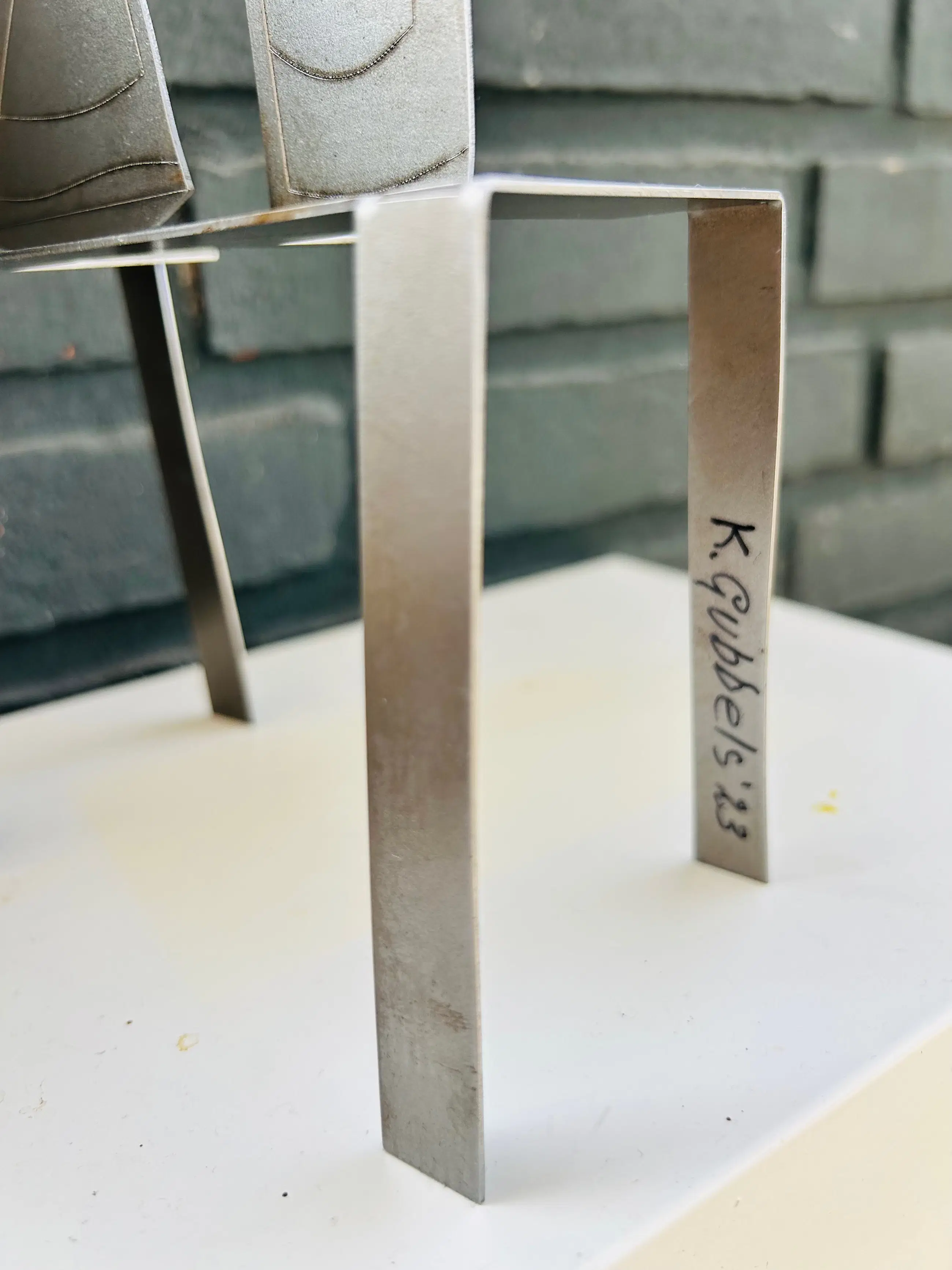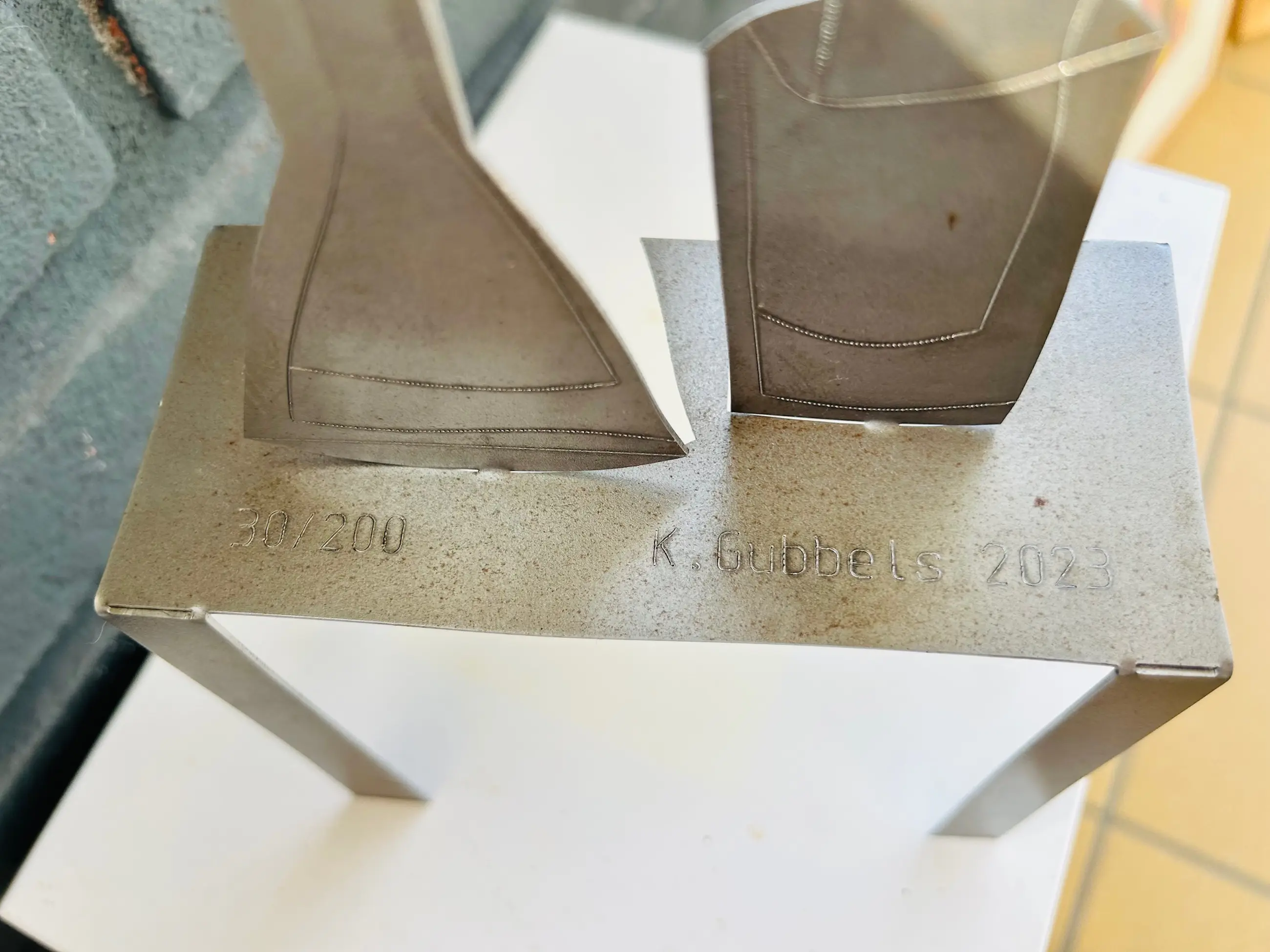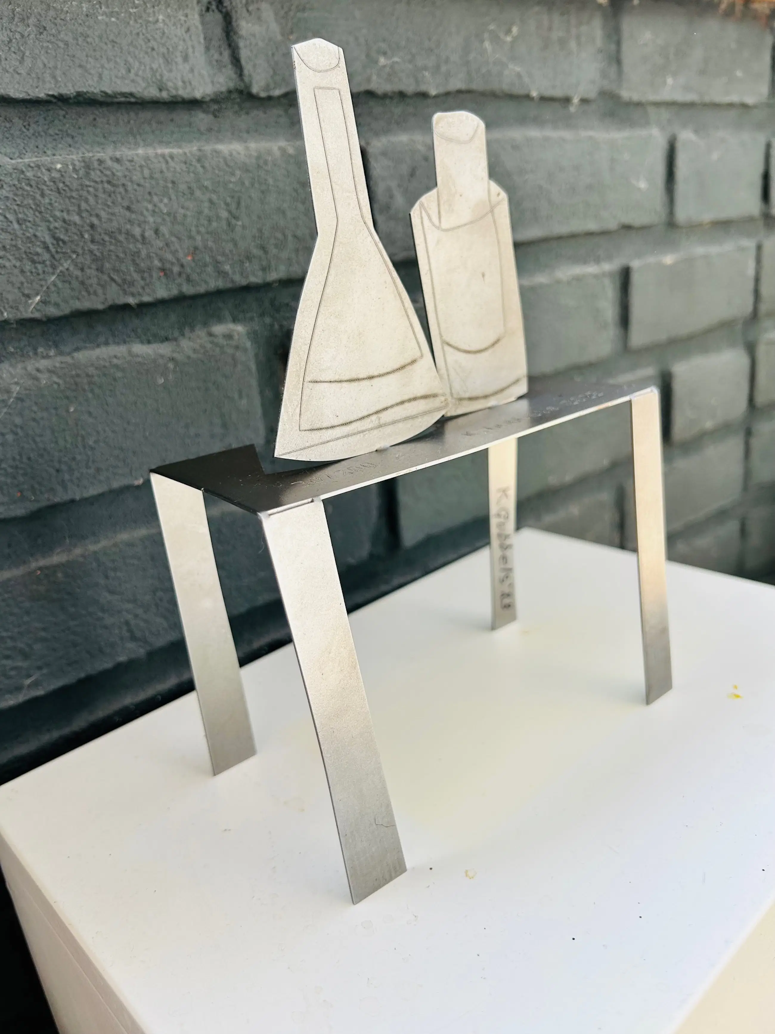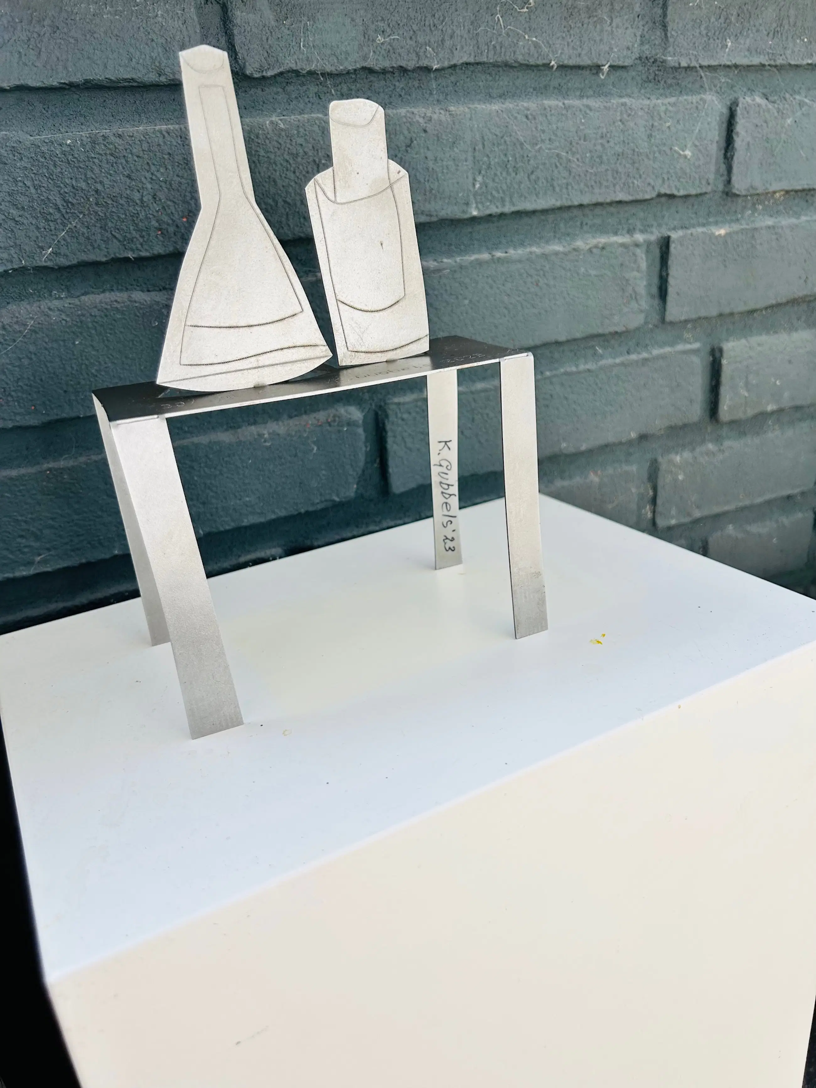 Stilleven is een fraai ijzeren object van Klaas Gubbels. Dit is de grote versie in oplage van 200 exemplaren en is niet te verwarren met de Nieuwjaarseditie. het werk is gesigneerd op de tafelpoot met stift en daarnaast is het jaartal, de oplage en zijn naam gestanst in het tafelblad. Het werk komt uit 2023 en speciaal gemaakt voor een scholengemeenschap. Zie ook de foto's in als bijlagen.