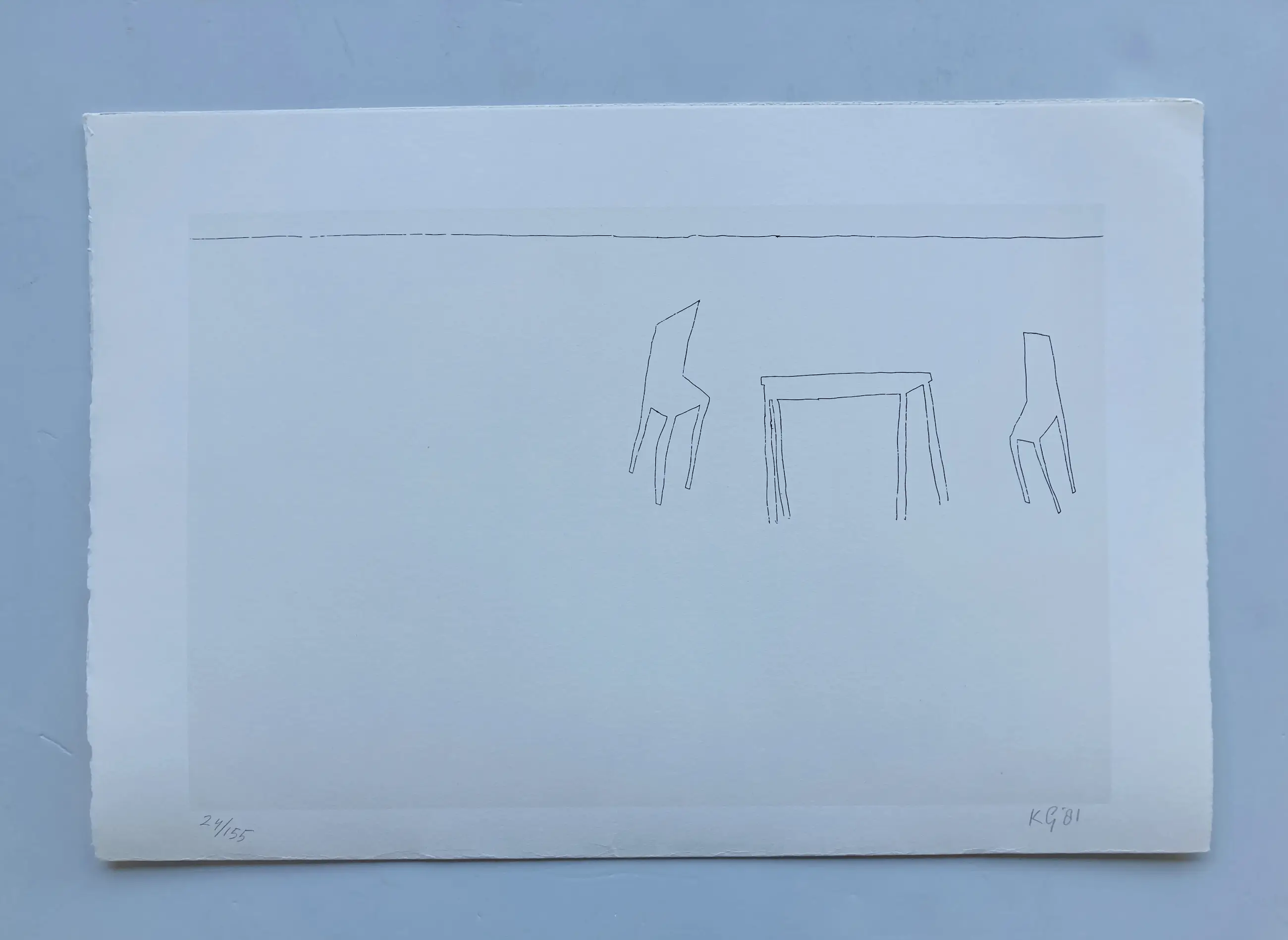 Fraaie zeefdruk van Klaas Gubbels die nog immer aan zijn oeuvre werkt. Gesigneerd in potlood.