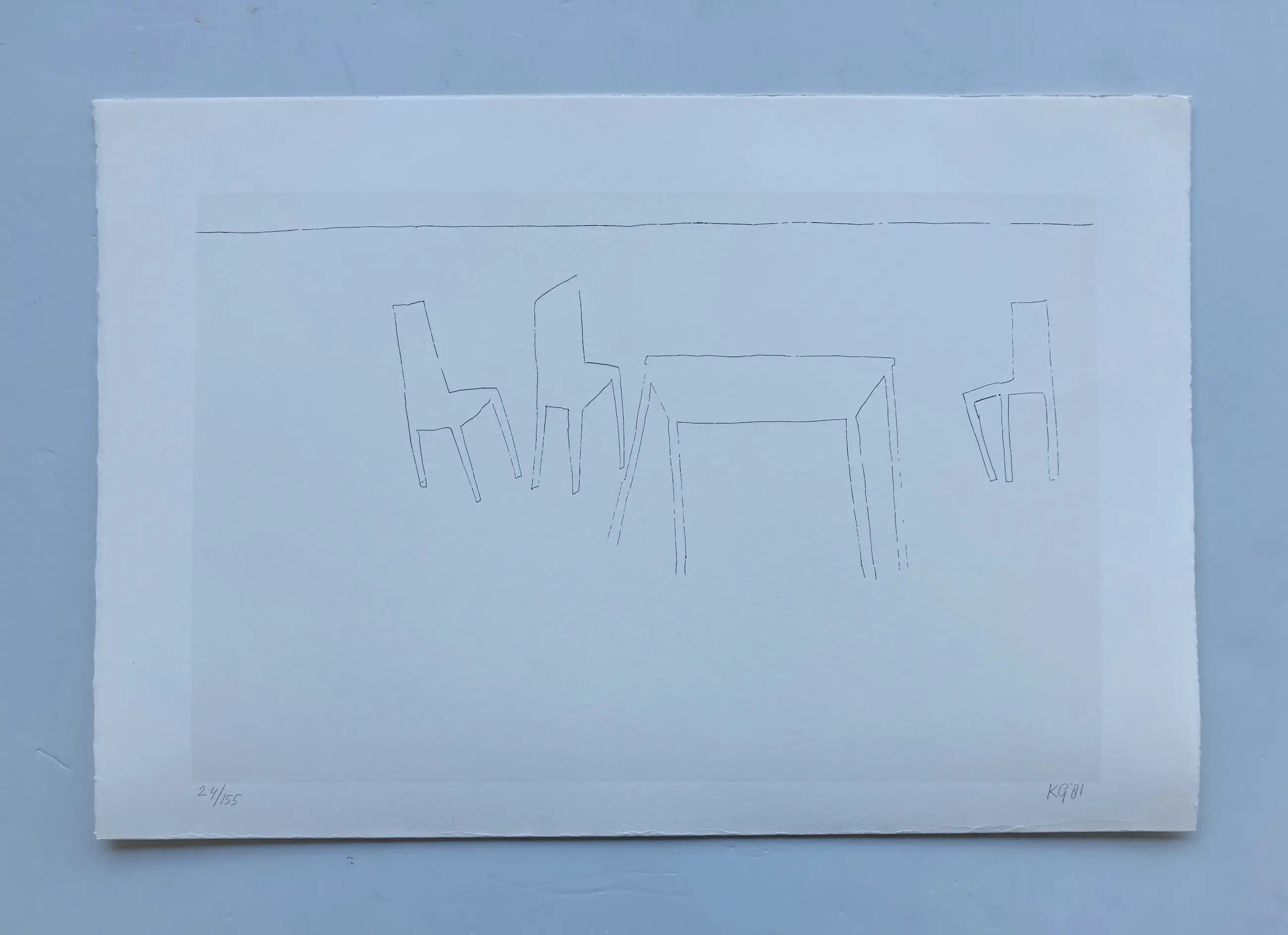 Fraaie zeefdruk van Klaas Gubbels die nog immer aan zijn oeuvre werkt. Gesigneerd in potlood.
