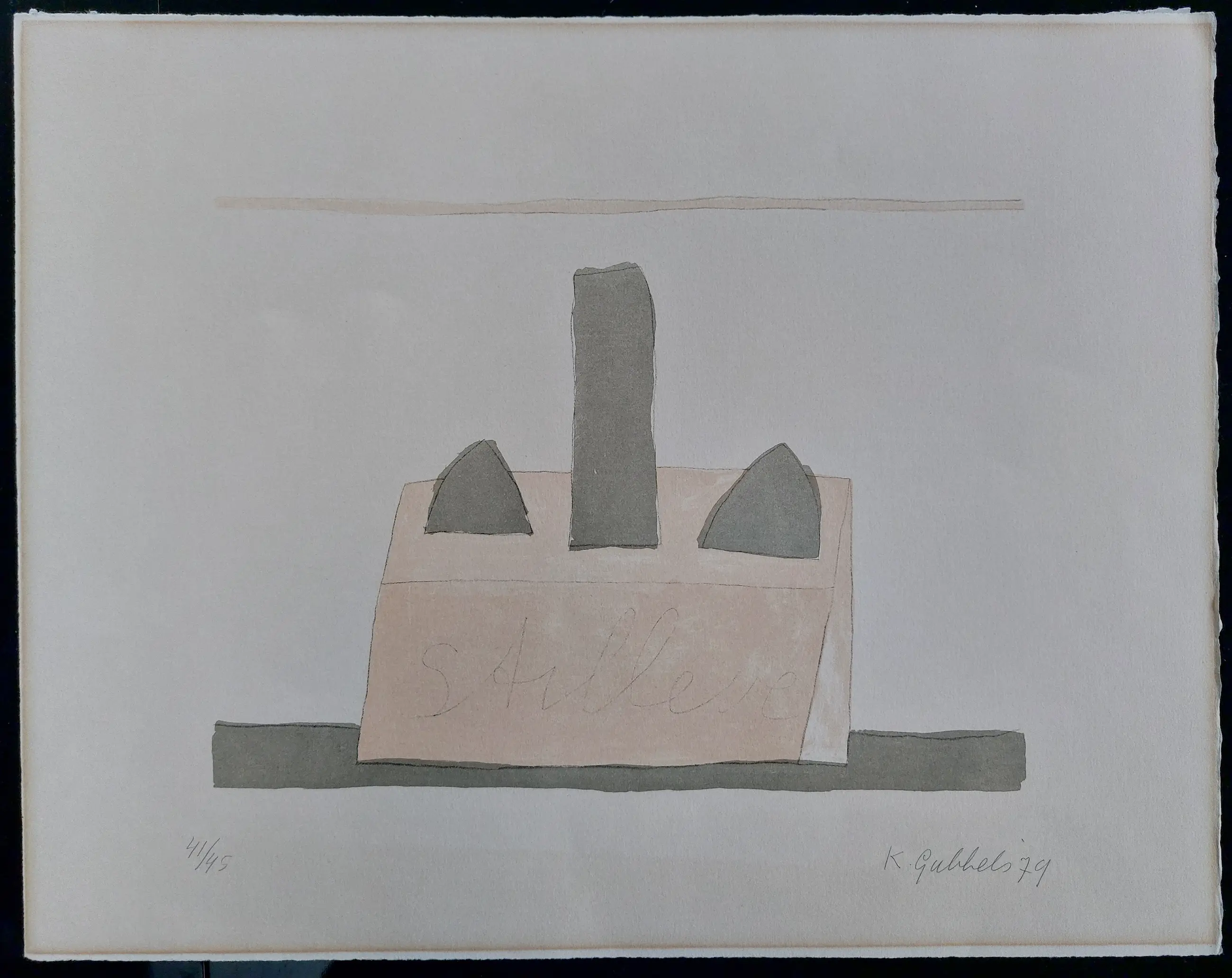 Fraaie zeefdruk van Klaas Gubbels in kleine oplage. Betreft nummer 41 van 45 stuks. Handgesigneerd en gedateerd in potlood rechtsonder.