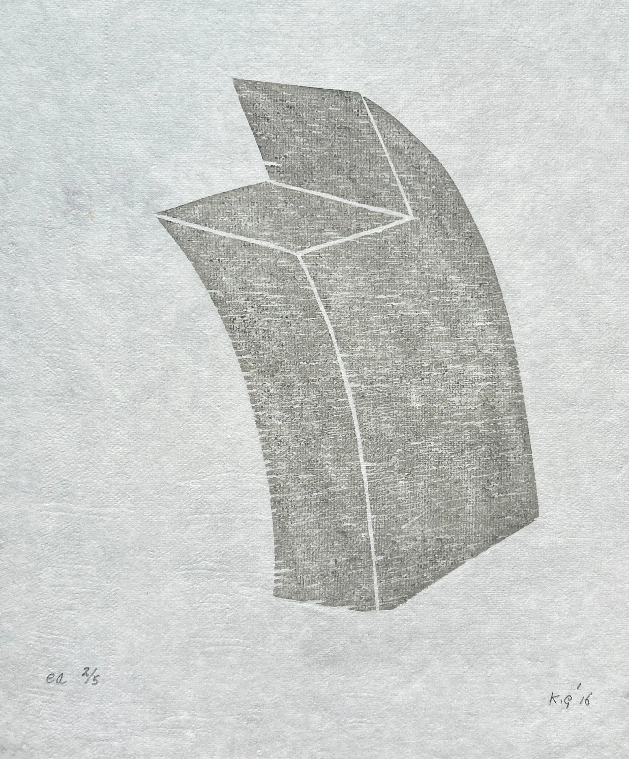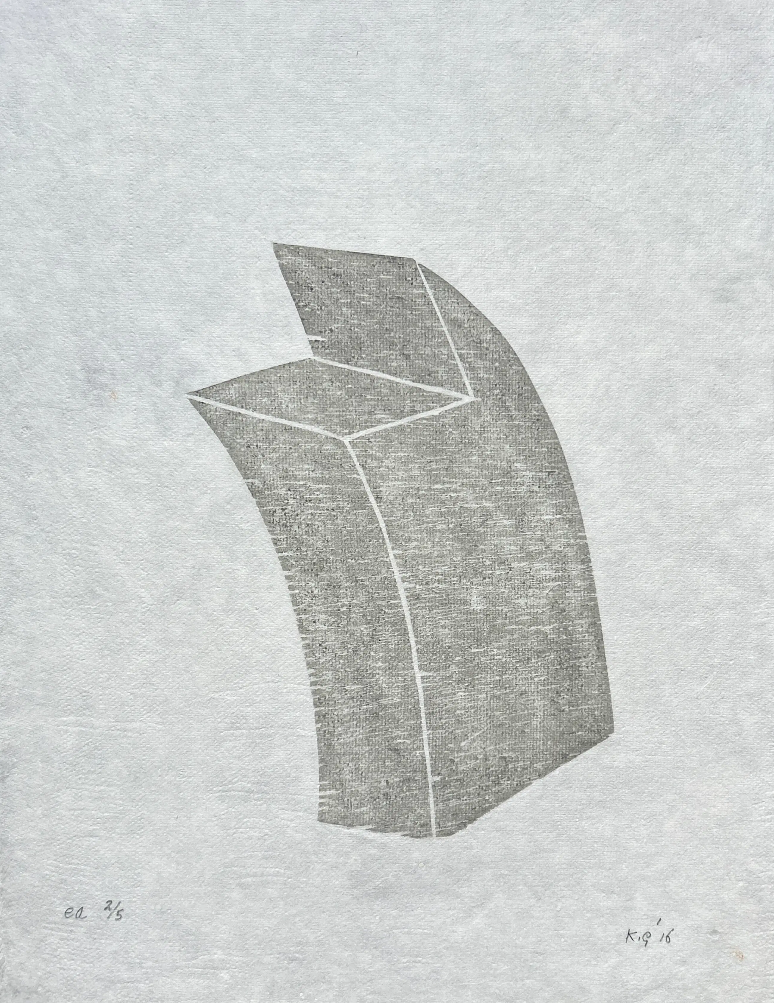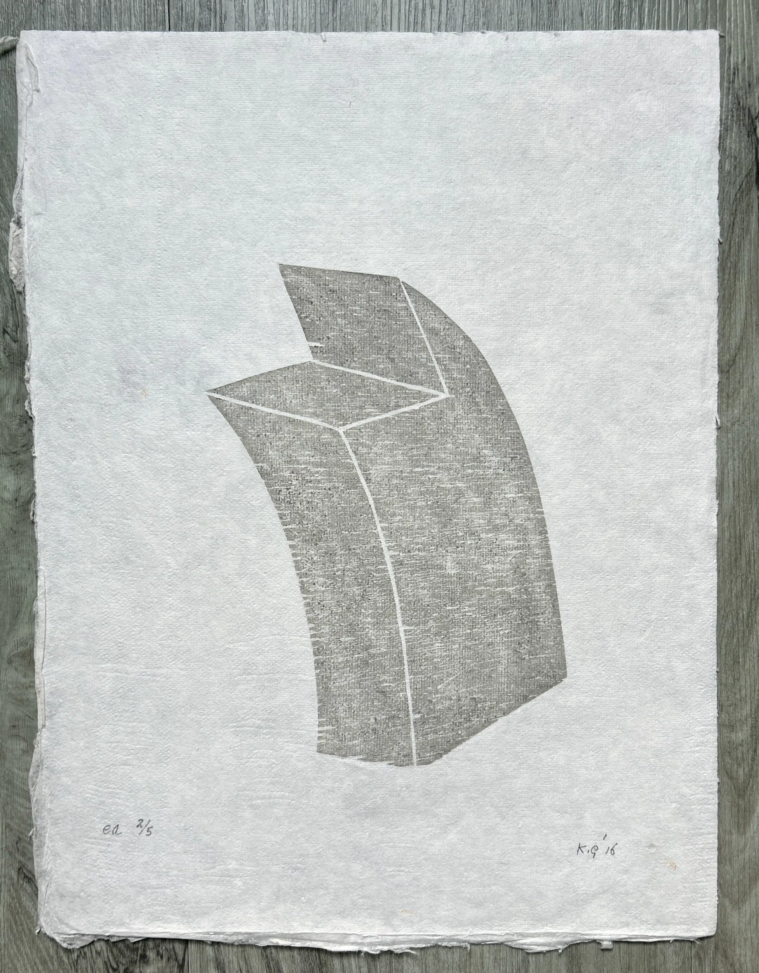 Conditie: zeer goed. Op de foto zijn lichte plekken dit zijn geen beschadiging (papier is daar dunner) , zie foto's achterkant vel. Oplage: E.A. 2/5. (T) uiteinde is geïnspireerd op de tuit van een koffiekan maar verwijst als diepere laag naar de vergankelijkheid van het leven. Wordt zorgvuldig verpakt en verzekerd verzonden.