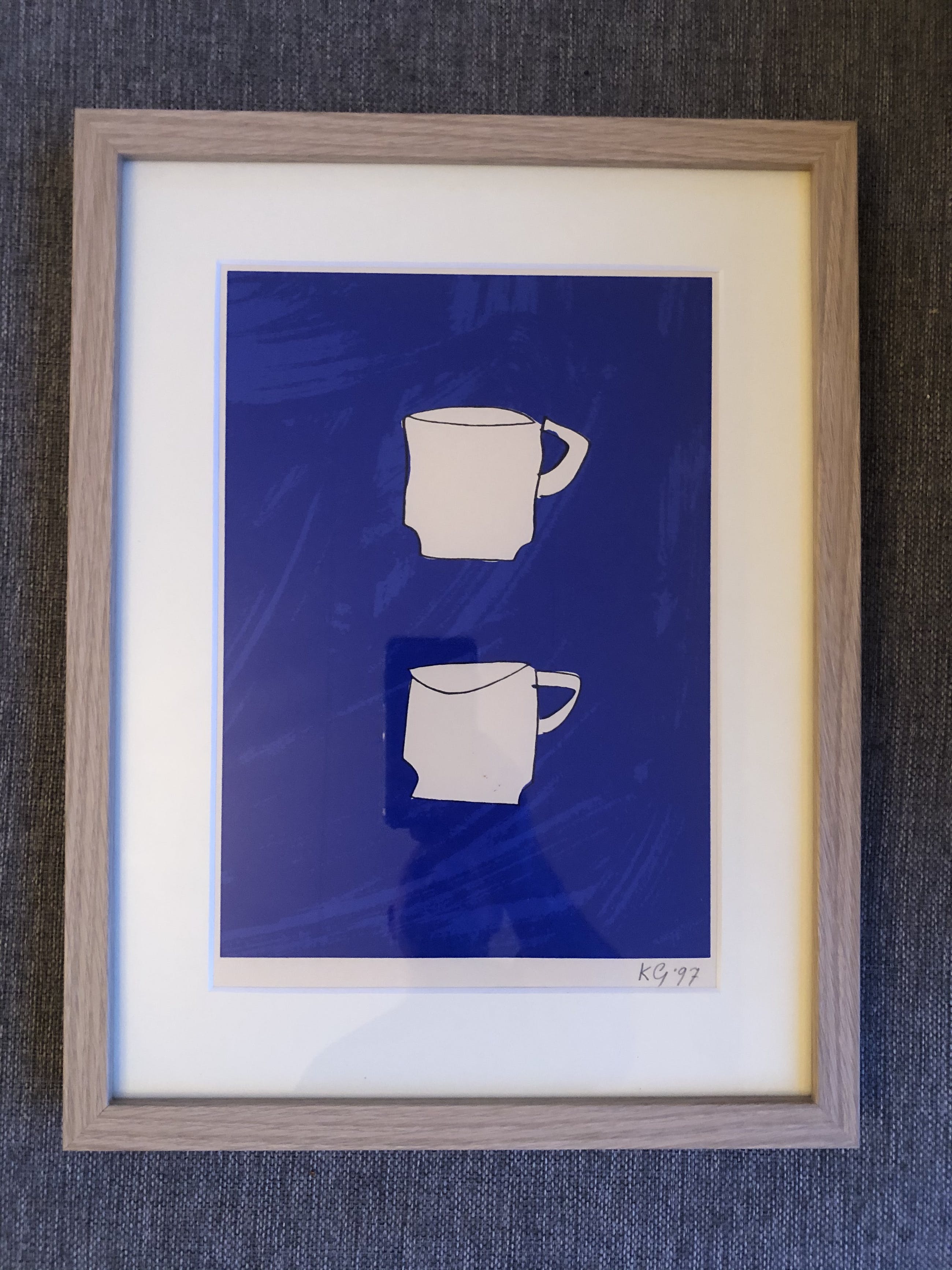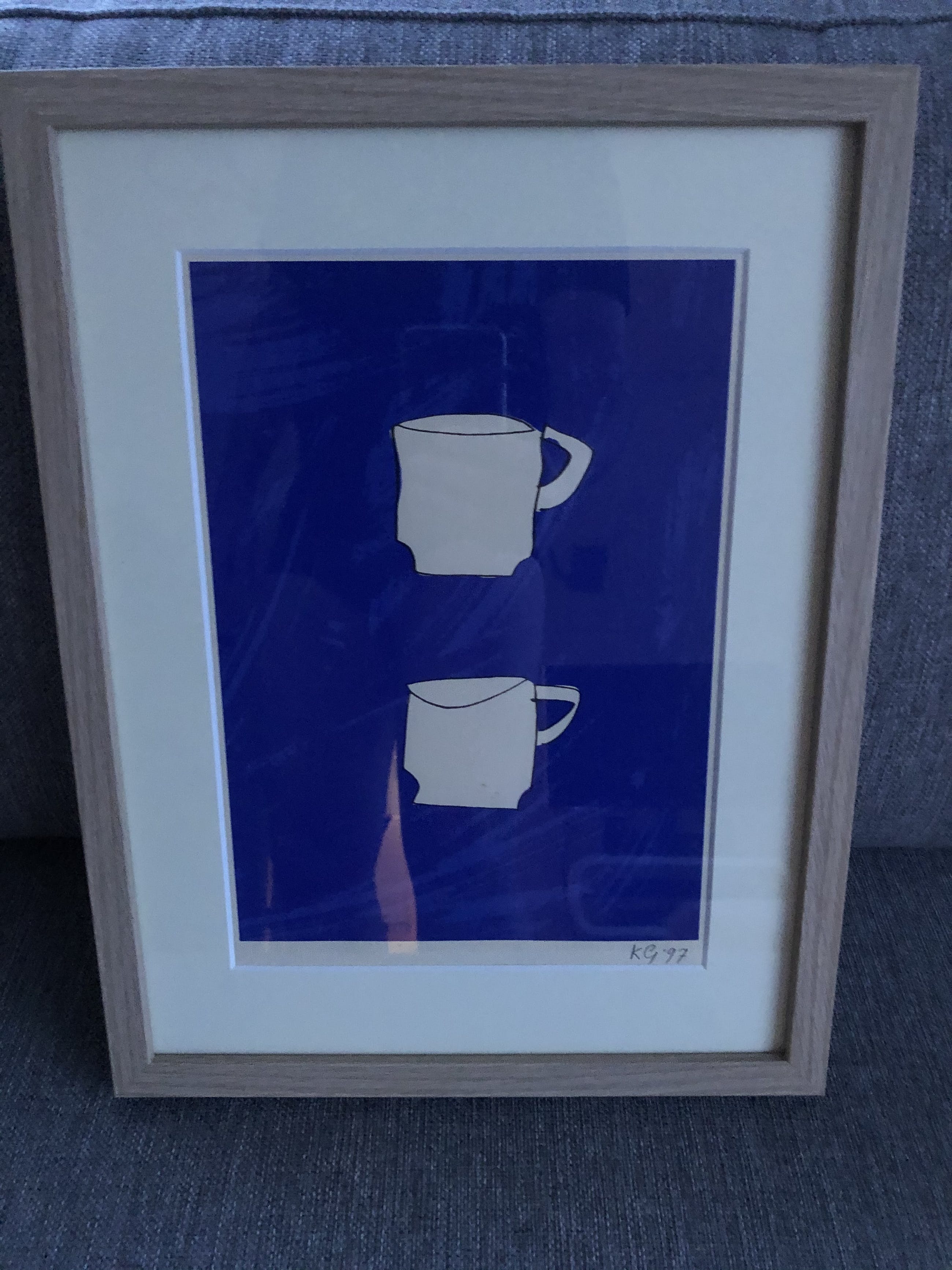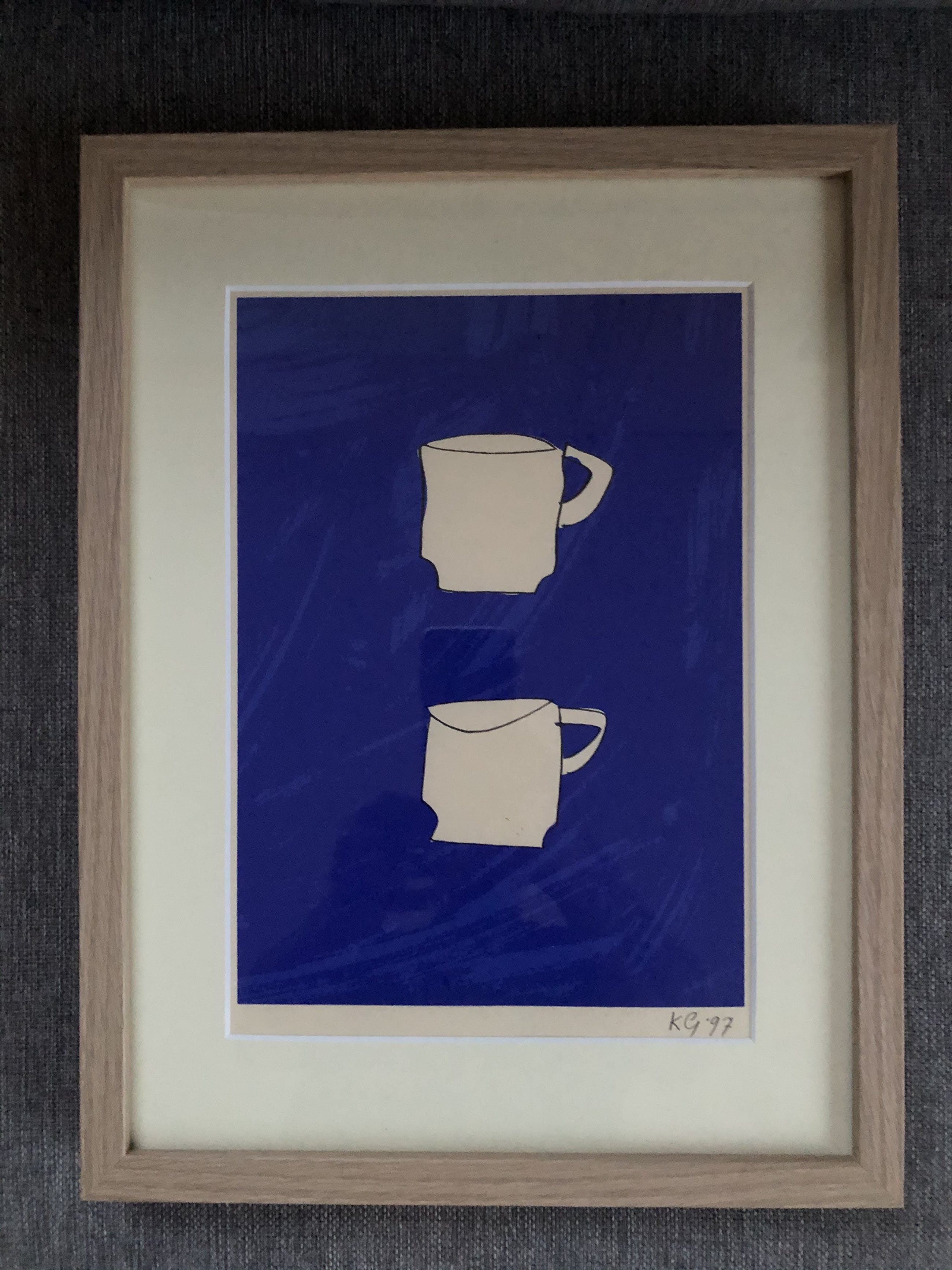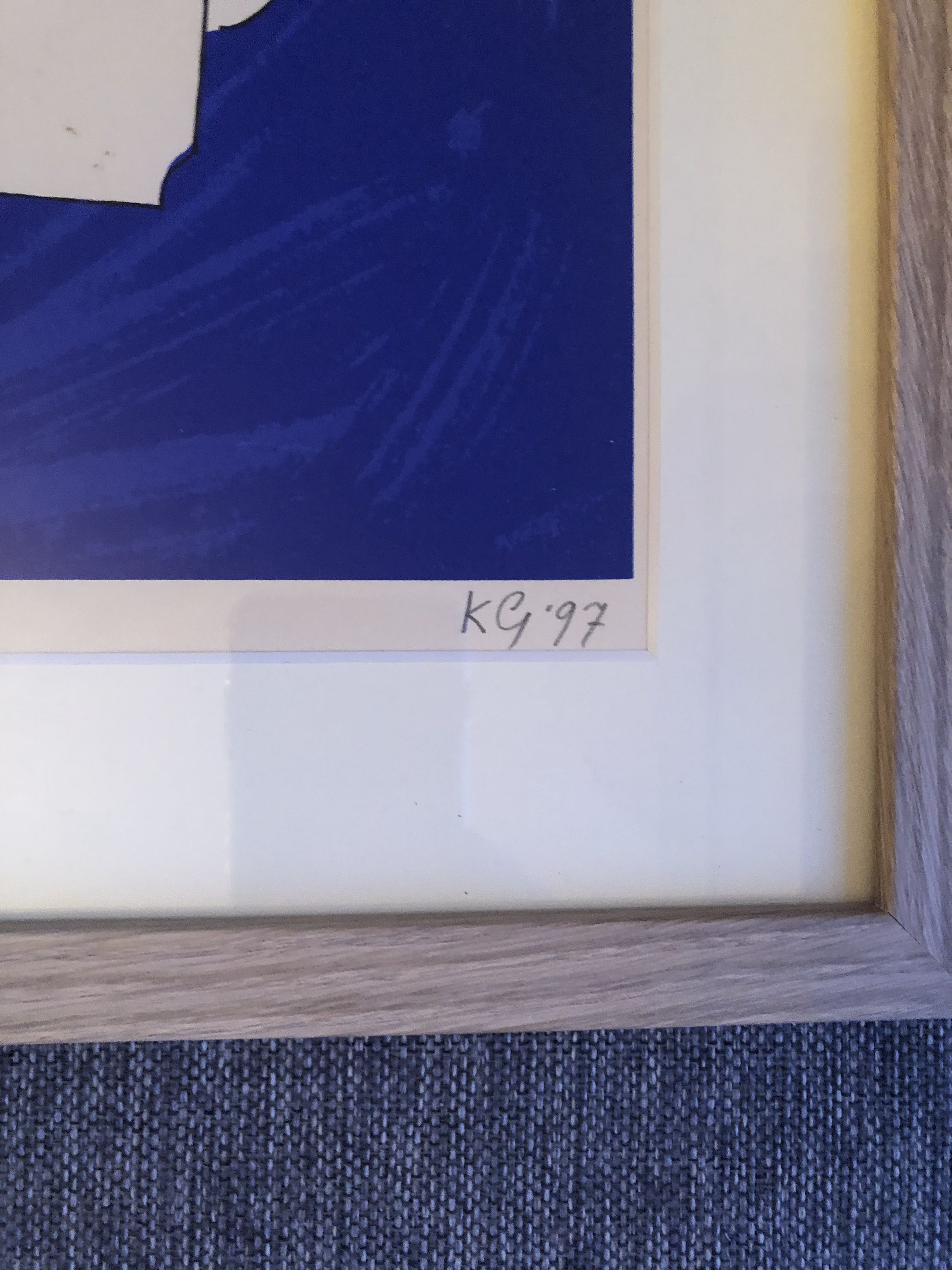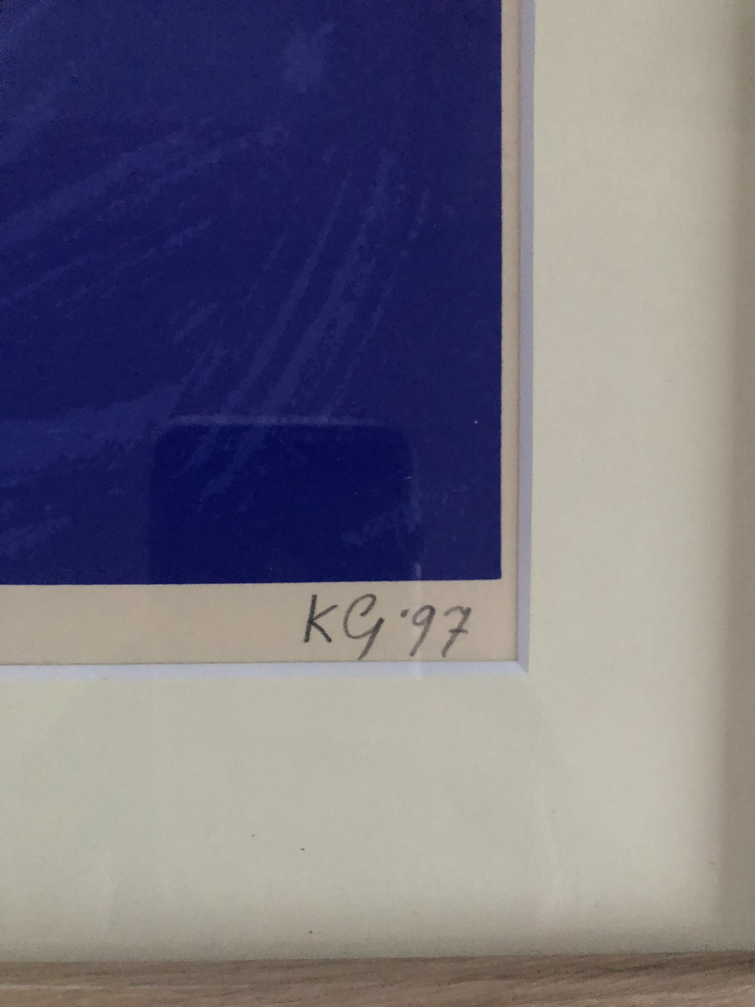 Ingelijst werkvan Klaas Gubbels gesigneerd door de kunstenaar KG 97. Mooie frisse zeefdruk