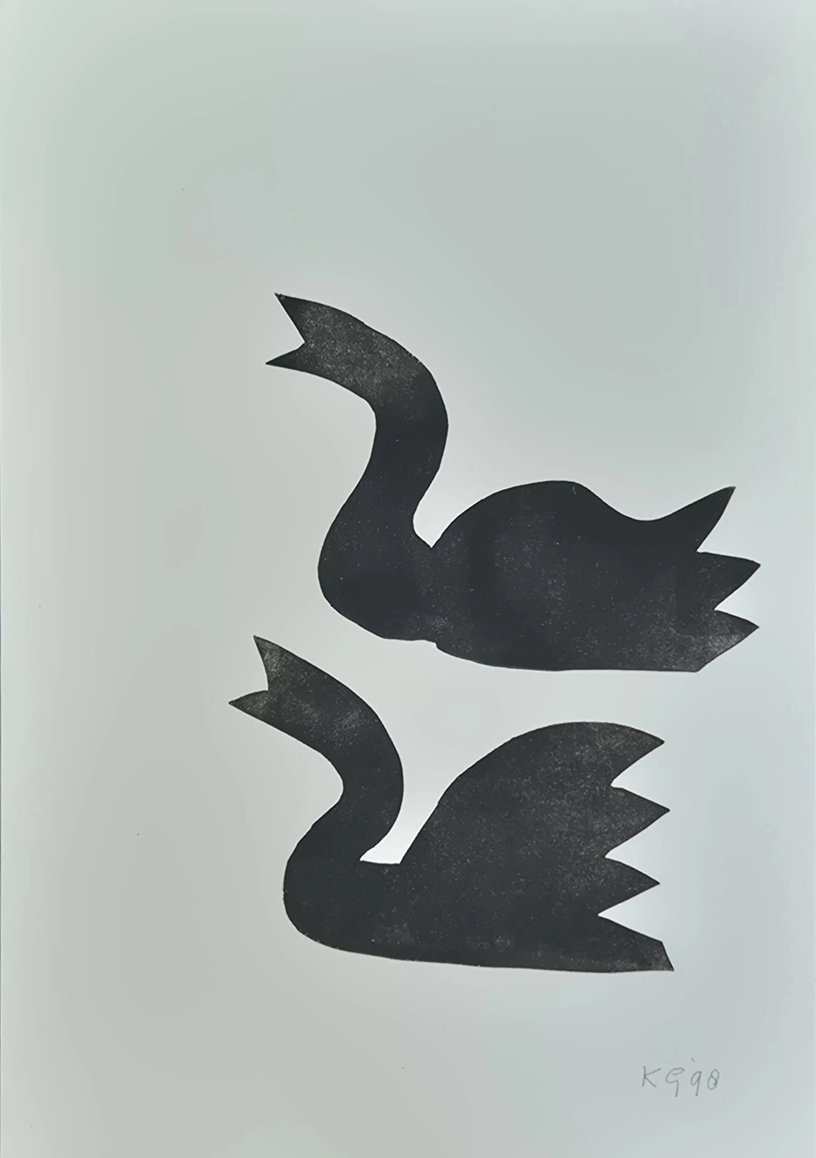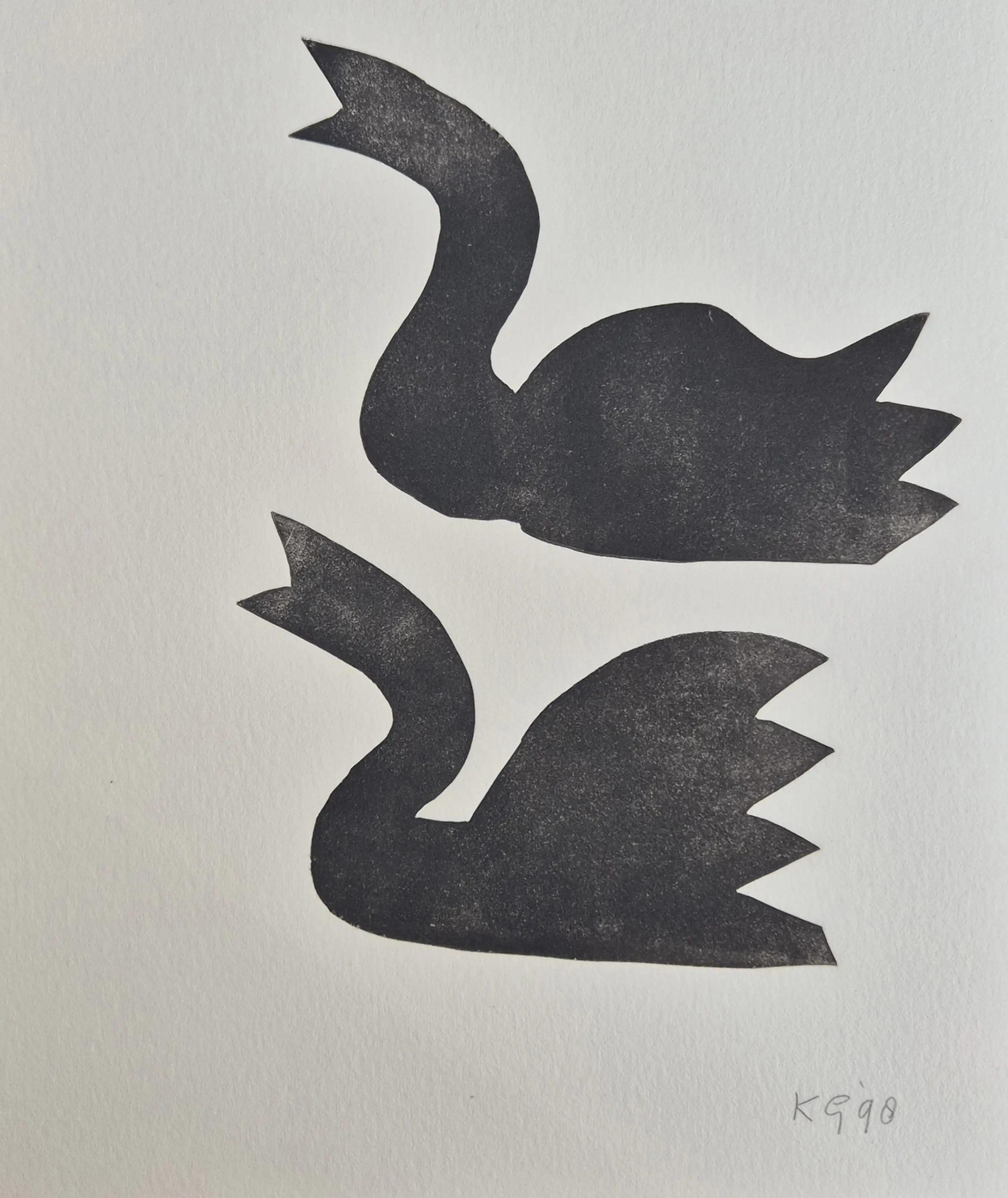 Klaas Gubbels - Twee zwanen - gemonogrammeerde linosnede