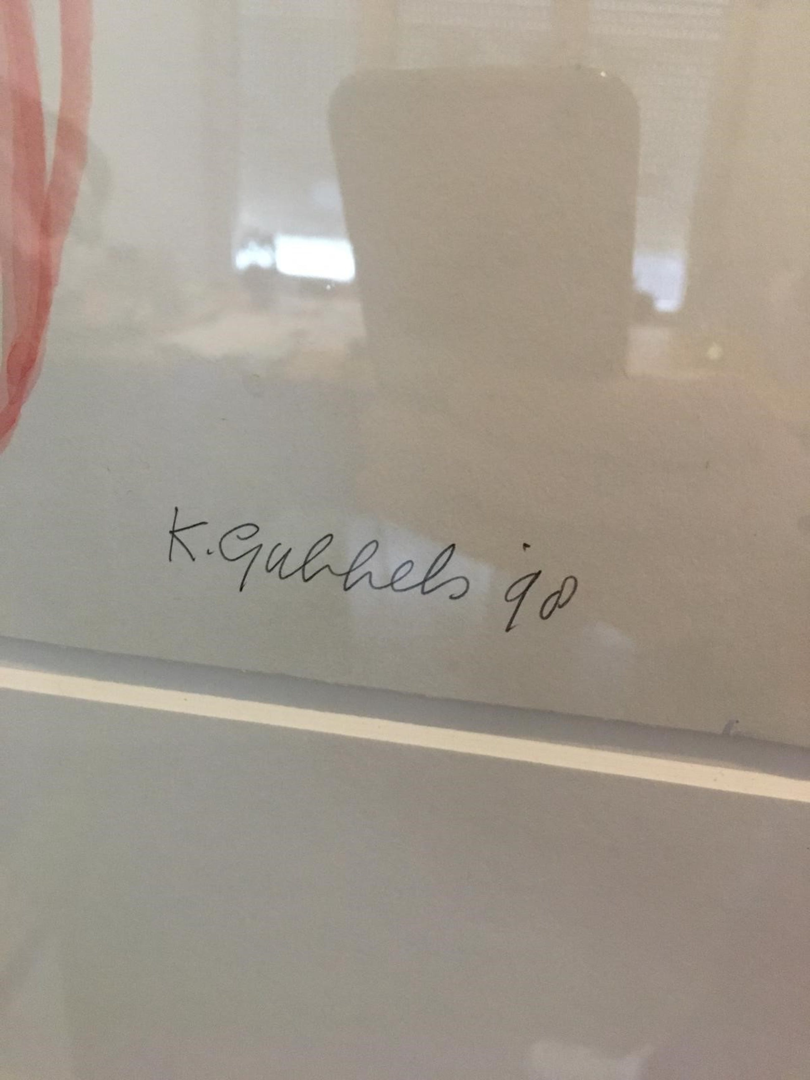 Te koop: Een uniek werk van Klaas Gubbels uit 1998.Een aquarel van een roze kan op tafel.Ingelijst in een fraaie essenhouten lijst.