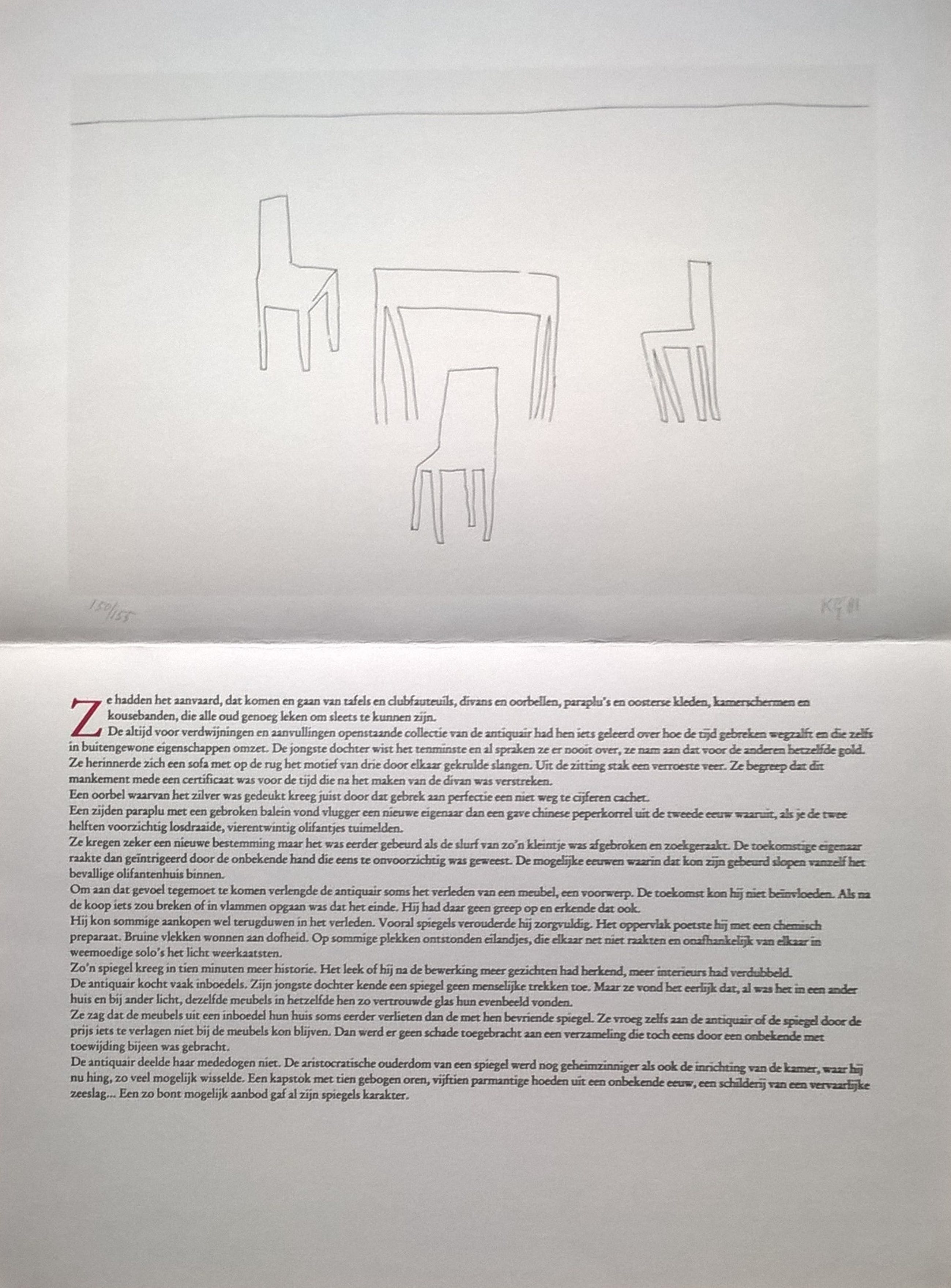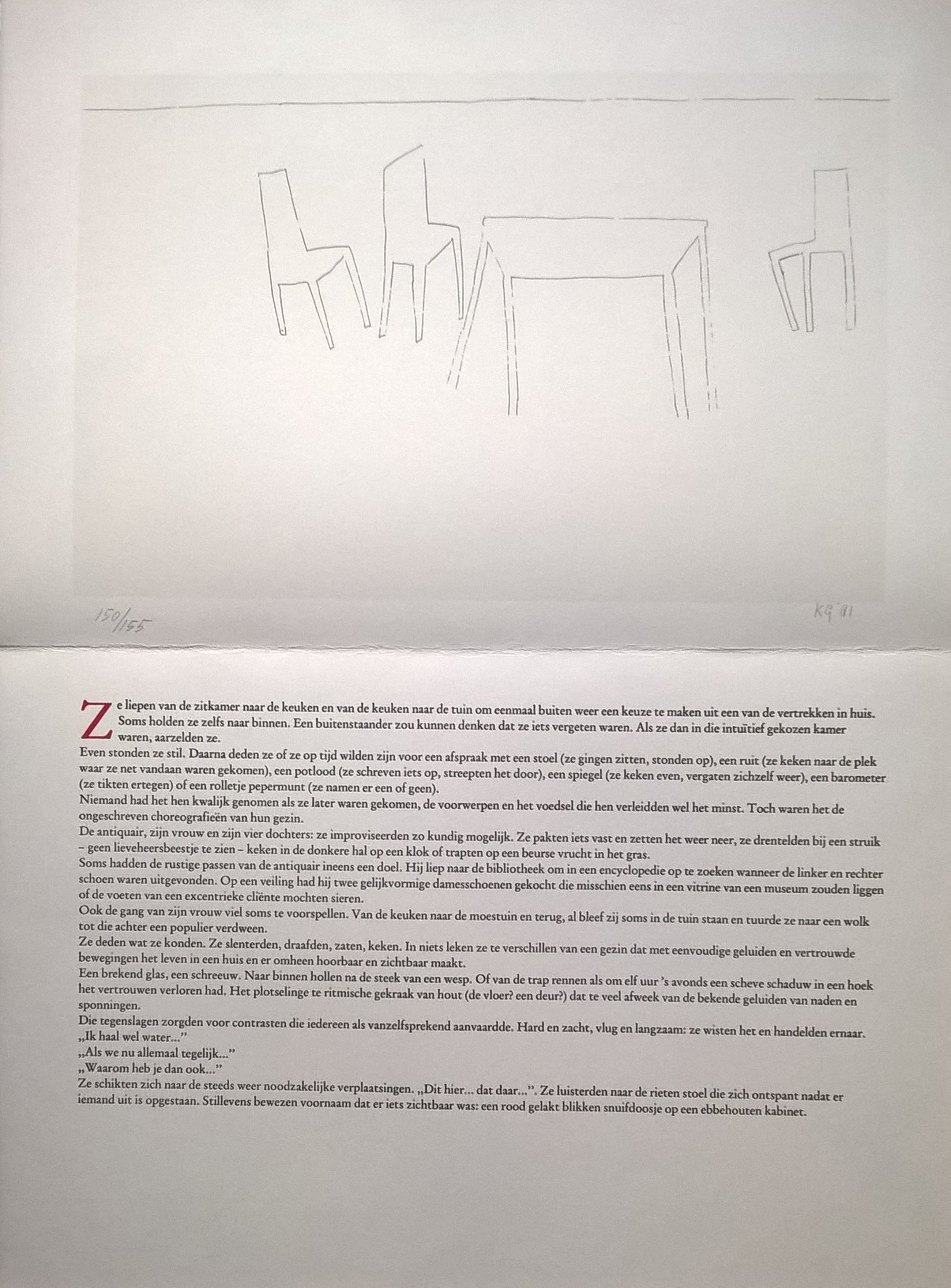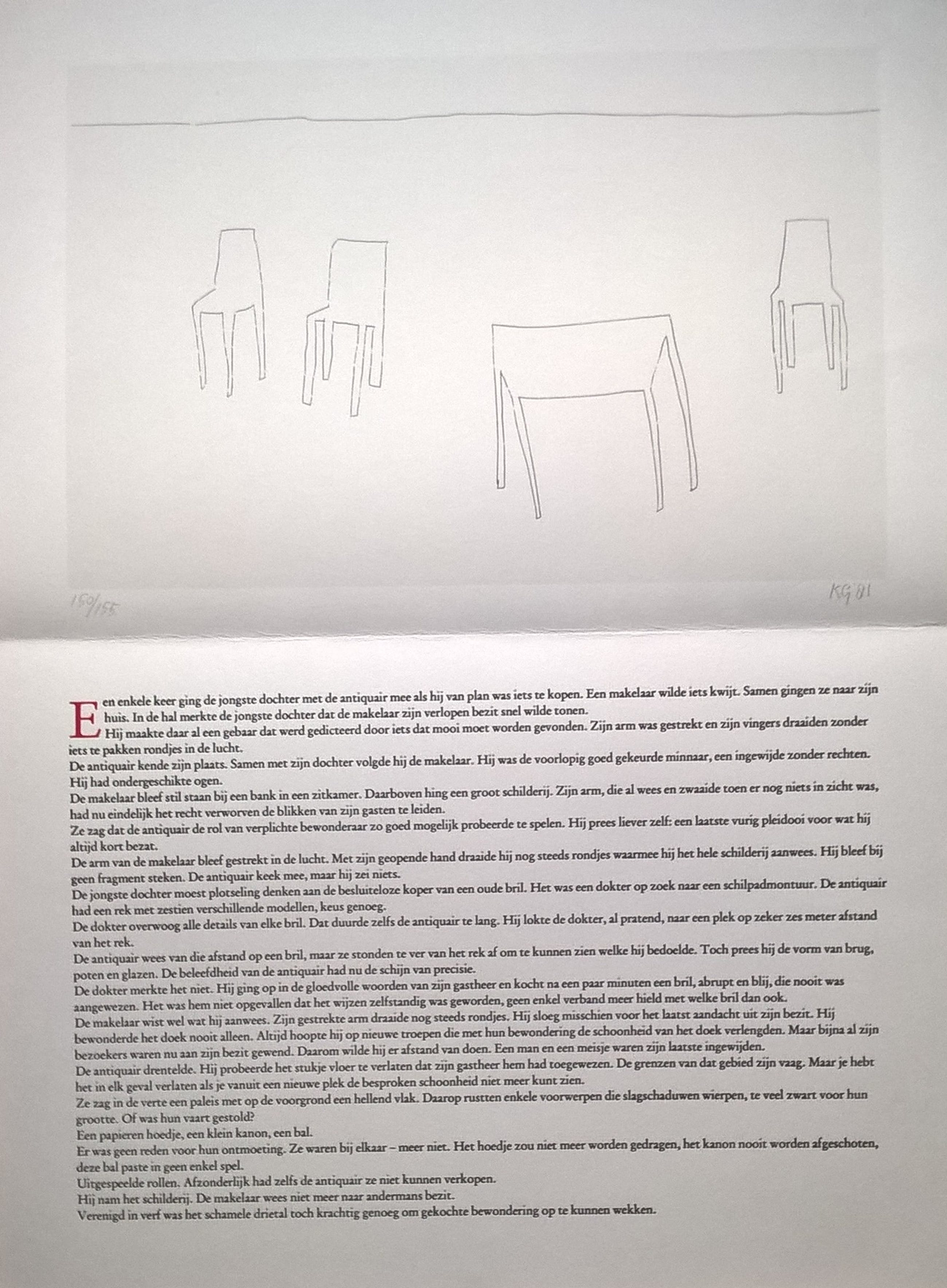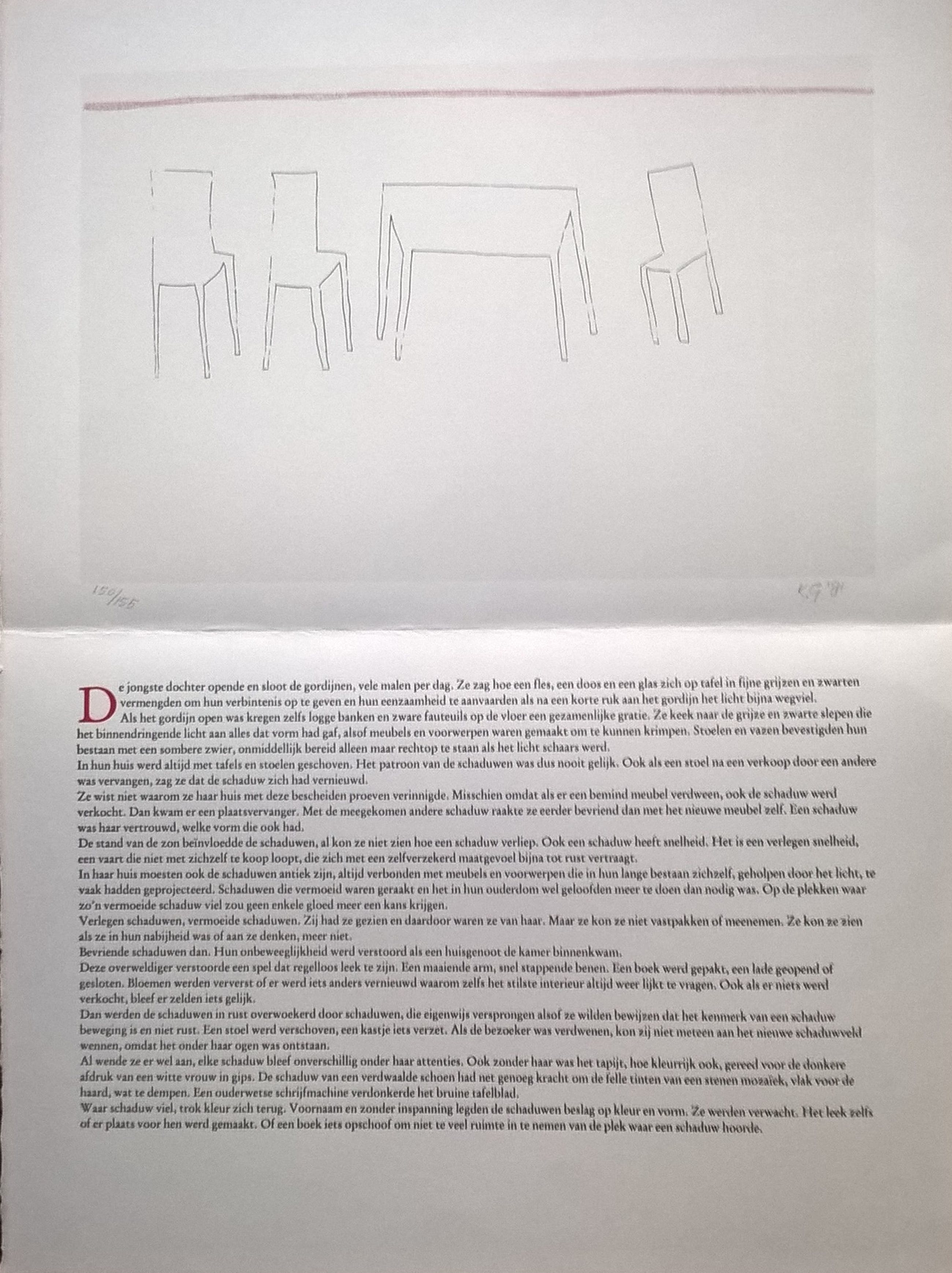 zeefdrukken zijn gesigneerd door Klaas Gubbels en genummerd150/155. Beeld