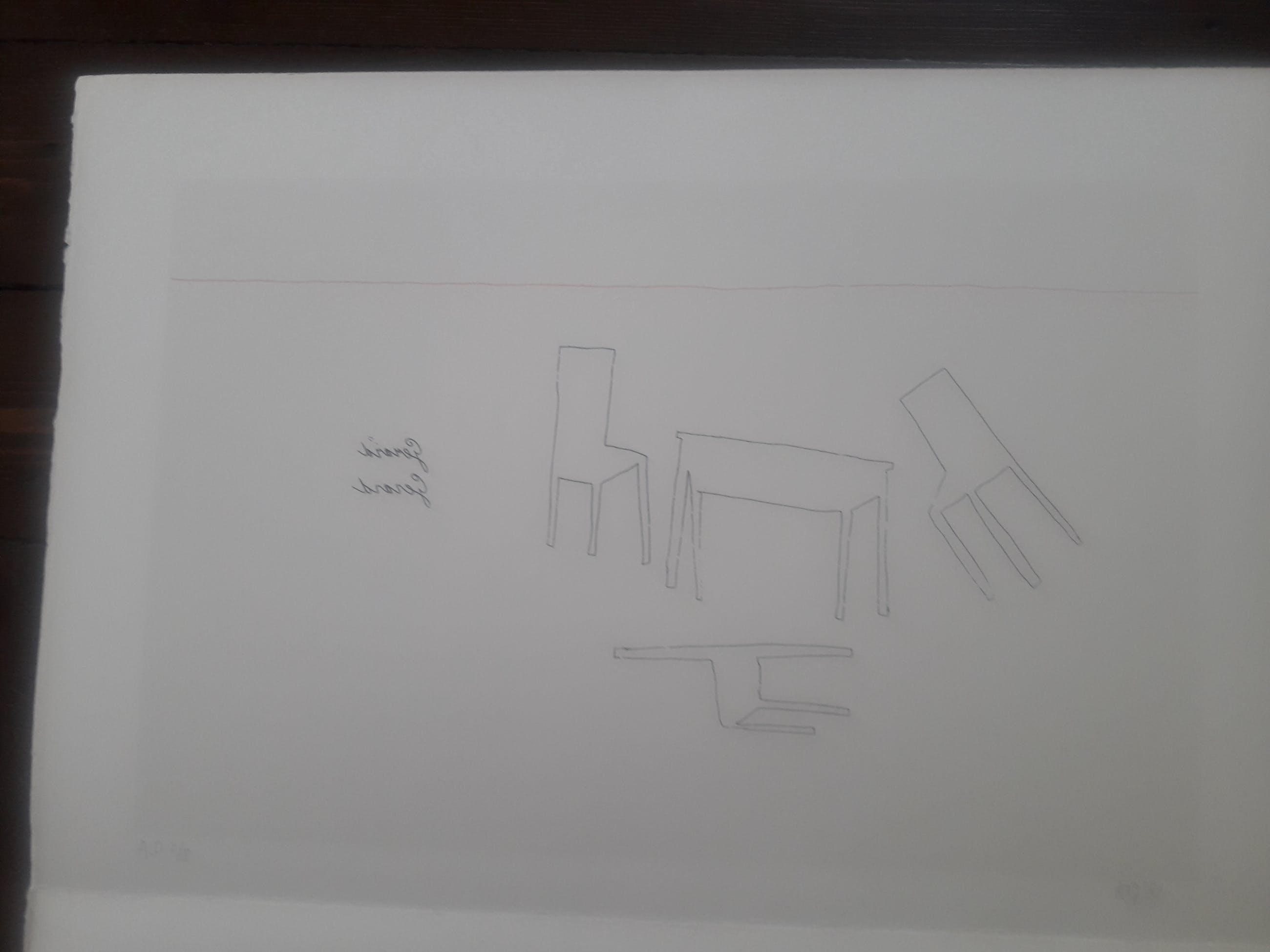 Klaas Gubbels zeefdruk gesigneerd en gedateerd met potlood. De aangegeven maten zijn de maten van de zeefdruk met een gedicht van K. Schippers