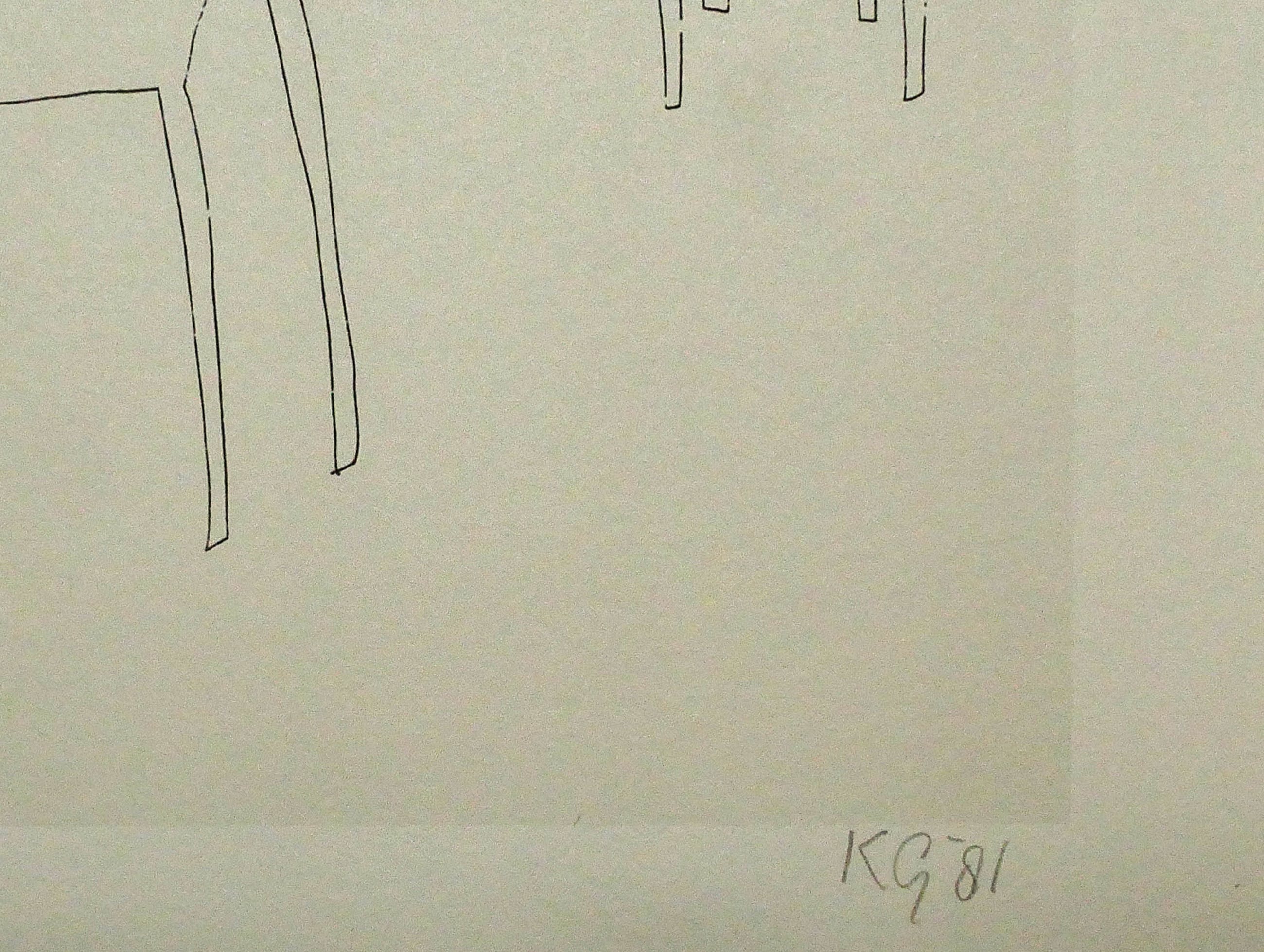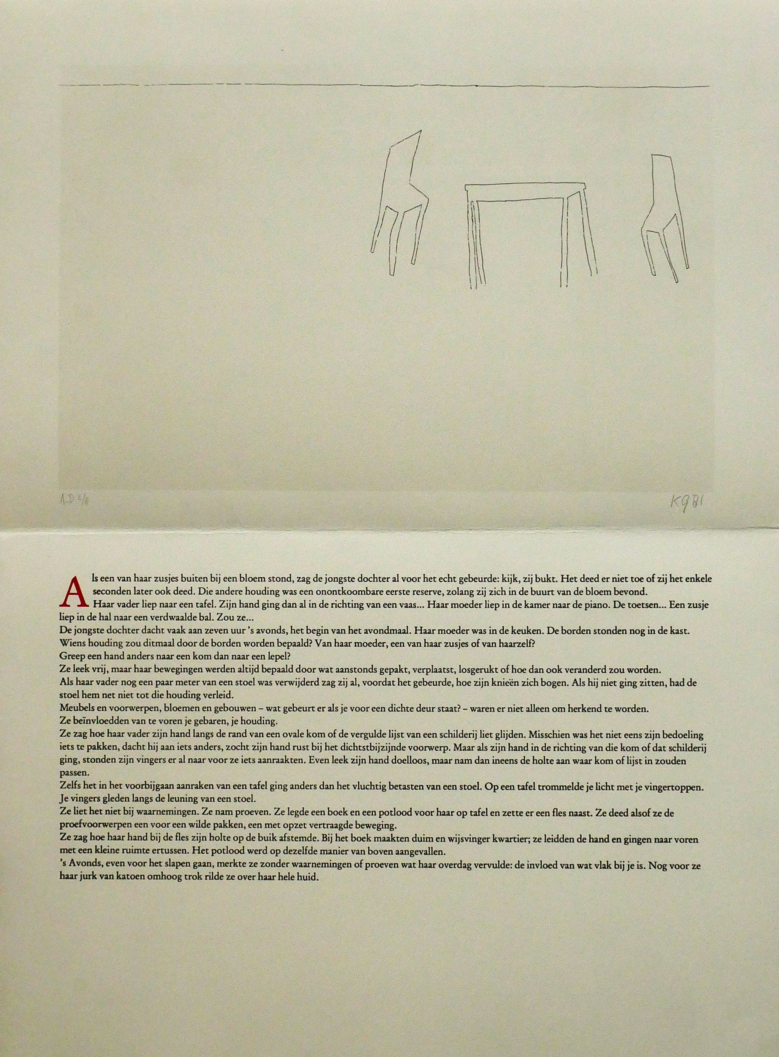 Klaas Gubbels Gesigneerd en gedateerd met potlood Dit is nummer A.P. 2/ 8 De opgegeven maten zijn de maten van de zeefdruk Met een gedicht van K. Schippers